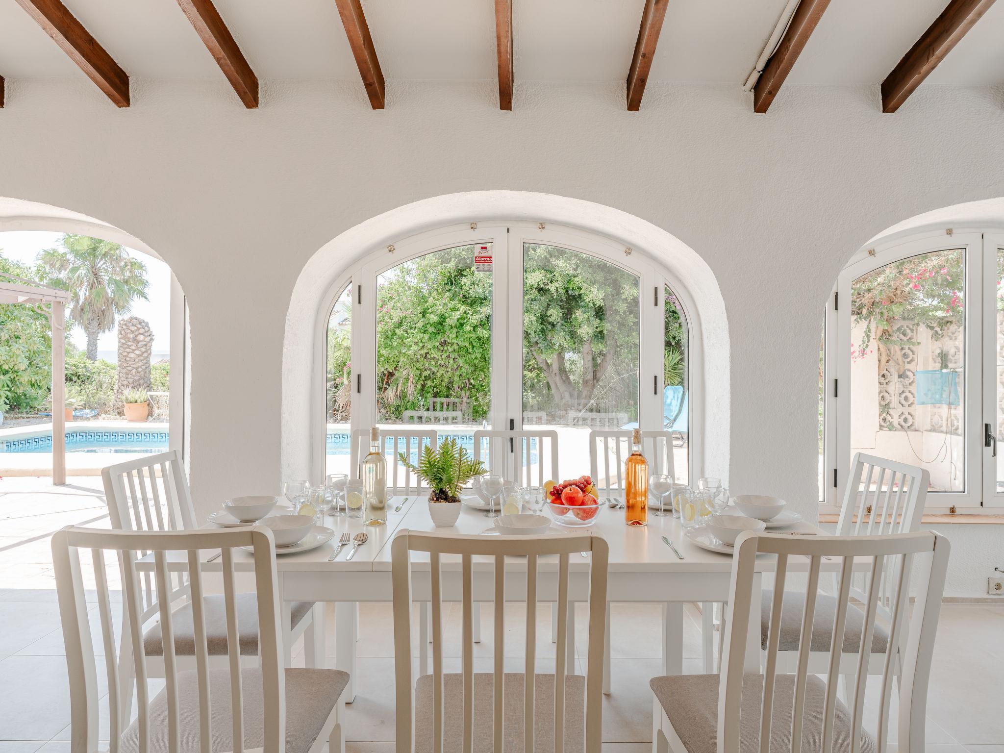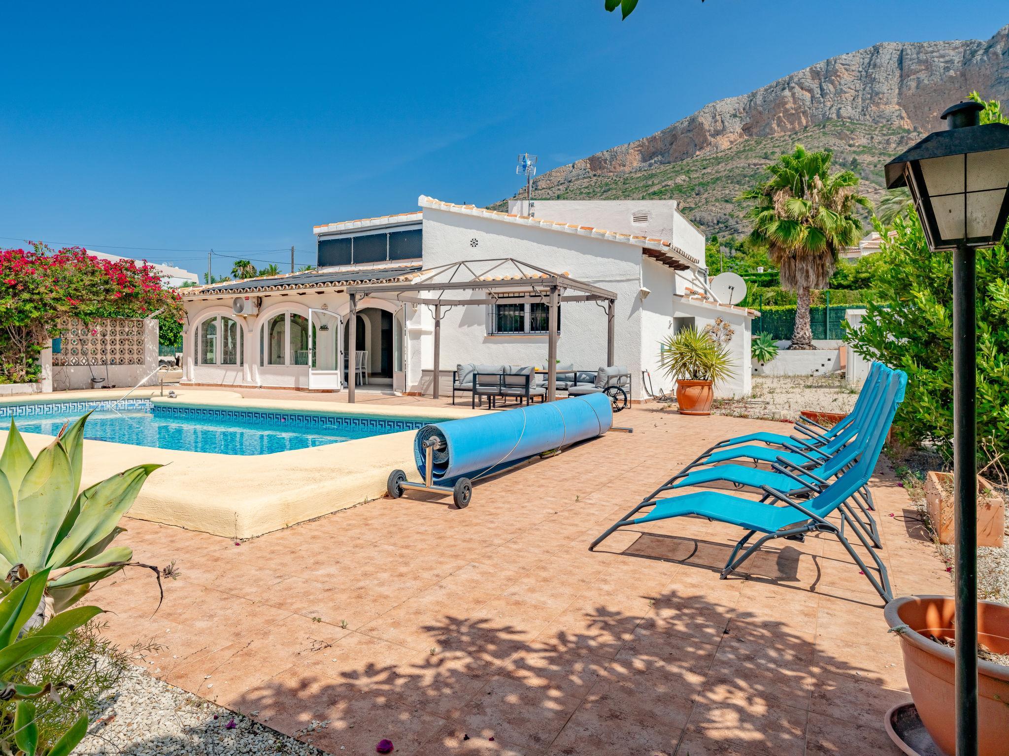 Cosy, simple, comfortable house "Acamar". In the district of Montgo Javea, in the resort 5 km from the centre of Javea, in a quiet, sunny position, 7 km from the sea, 7 km from the beach, in a cul-de-sac. Private: large, beautiful, well-kept garden, natural garden, swimming pool angular (8 x 4 m, depth 40 - 210 cm, seasonal availability: 01.Jan. - 31.Dec.) with internal staircase. WC in the pool area, outdoor shower, roofed, parking on the premises. Supermarket, restaurant 600 m, bus stop 2 km, sandy beach "El Arenal" 8 km, shingle beach "Playa de la Grava" 7 km. Surf school 7.5 km, sailing school 7.5 km. The owner does not accept any youth groups.