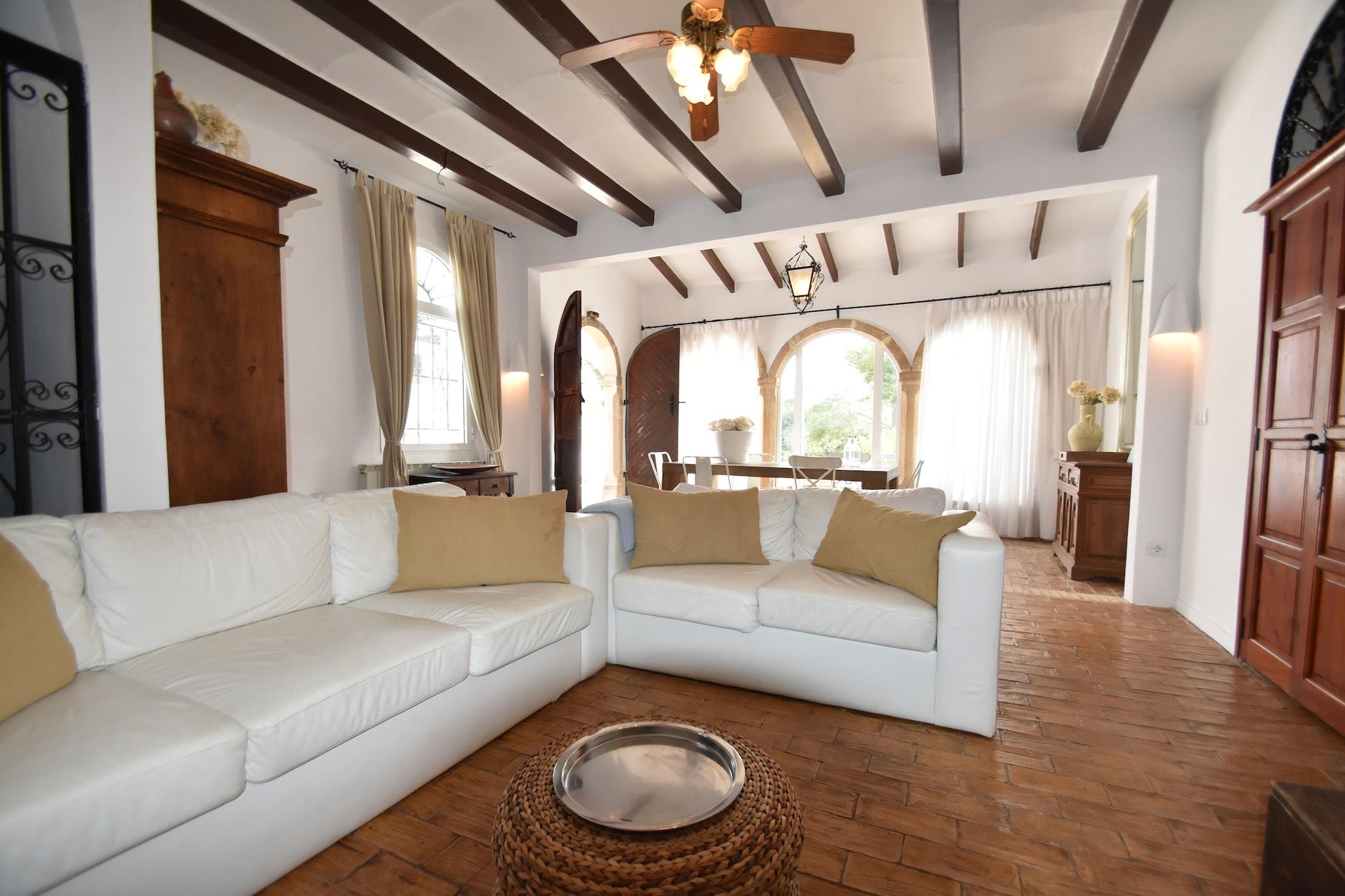 Denne typiske spanske villa på Costa Blanca har aircondition, en privat swimmingpool og en rummelig grund tæt ved havet. Der er 3 soveværelser, der kan rumme 6 personer. Dette er en passende mulighed for solferie med familien. Dette feriehus er udstyret med en kulgrill, som du kan bruge, og et bordtennisbord til tilgængelig underholdning. Den indhegnede have er oplyst og møbleret med havemøbler, og badeværelset har et badekar med bruser. Stranden, der ligger lidt over 1 km væk, er perfekt til en vidunderlig dag med græsning. Der er nattelivsmuligheder 1,5 km væk, og det nærmeste supermarked ligger 1000 m væk. Du har mulighed for at foretage dejlige bådture 1,2 km fra boligen. Jávea ligger på Costa Blanca, der med rette bærer navnet "hvid kyst". Det er en kosmopolitisk, turistet kystby med dejlige butikker og gode restauranter. I havnen finder du en malerisk promenade med mange terrasser, butikker og restauranter. Jávea har også et nyt boligområde (El Arenal) med en omfattende sandstrand og en promenade med butikker, caféer og restauranter. På den store strand kan du gøre alt: der er en legeplads for børnene, og du kan udøve mange vandsport.
