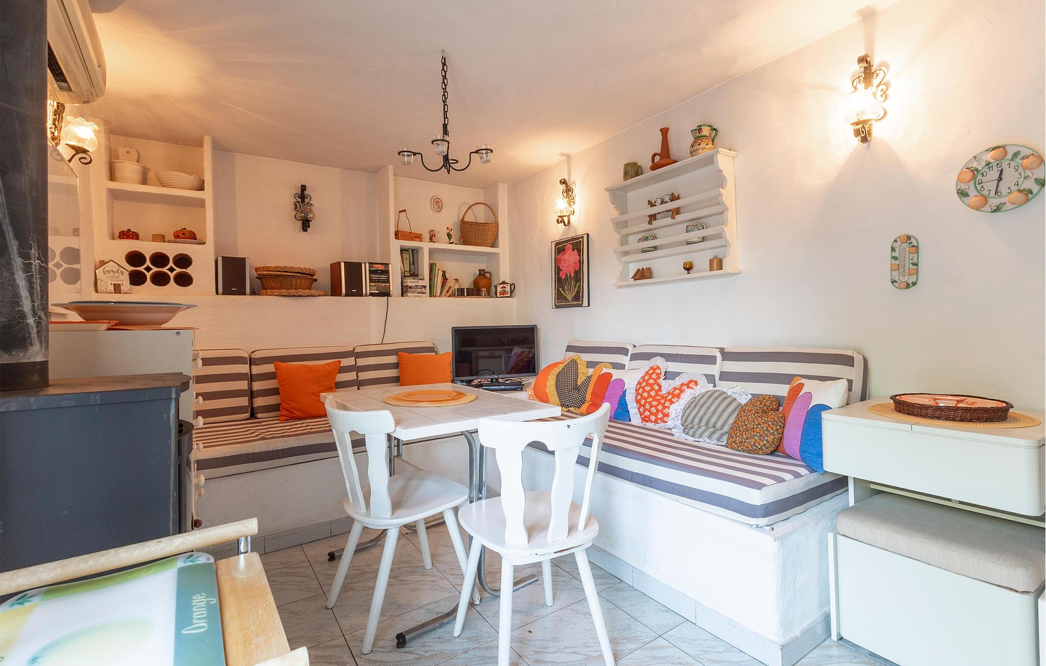 Fra terrassen kan I lade blikket glide hen over oliventræerne, pinjerne og blomsterne helt hen til bjergene. Hvis man ønsker absolut ro og samhørighed med naturen med økologiske afgrøder, kan man tilbringe en optimal, afslappende ferie her. Huset er opdelt i to etager og indeholder i underetagen en separat tilbygget lejlighed med egen indgang.