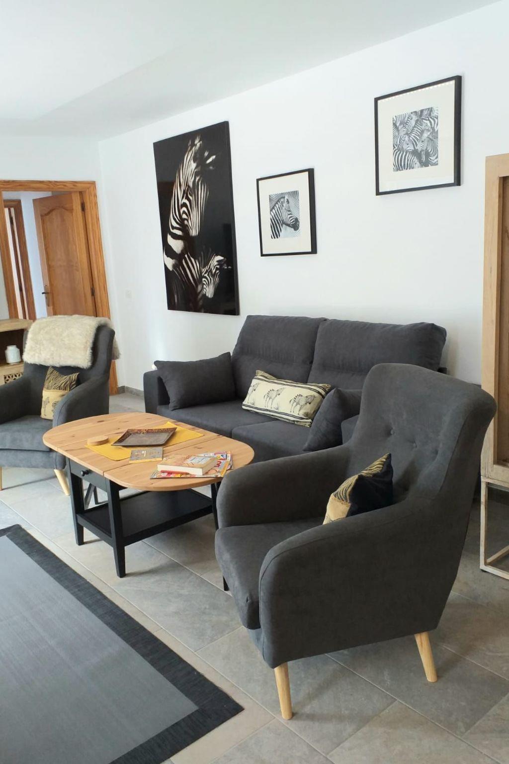 This great corner flat consists of a living room with integrated kitchen (cooker, oven, fridge-freezer, coffee maker, microwave, toaster, etc.) In the living room itself is a sofa bed for 2 more guests and this is 140cm wide. 55 cm inch TV with integrated Netflix etc. for a fee, but there are also various programmes in German, English, French, even a Japanese channel.Adjacent to the living room is a closed, glazed balcony with a dream view over the Atlantic.a cosy rattan seating area invites you to linger with a good book and a glass of wine or a cup of coffee.furthermore there is of course a bathroom with shower, toilet, toilet, sink, mirror and a washing machine.the bedroom is our absolute highlight. The large, open balcony of 14 square metres has a magnificent view over the sea and is only separated from the rest of the room by sliding doors. Imagine waking up in the morning and seeing the sea, the sea, the sea.really fantastic!!!!In the bedroom you will find the double bed, the wardrobe and the air conditioning.the flat has 2 balconies. This 2nd balcony is equipped with a small dining table for max. 4 people and a sun lounger. Smoking is allowed on this balconyThe flat has just been newly renovated and furnished, and since it is located in a former hotel, we suspect that it may have been a suite in the past due to its size of 89 square metres (the other flats usually have a maximum of 60 square metres), 2 balconies and the fantastic location by the sea and the magnificent view.