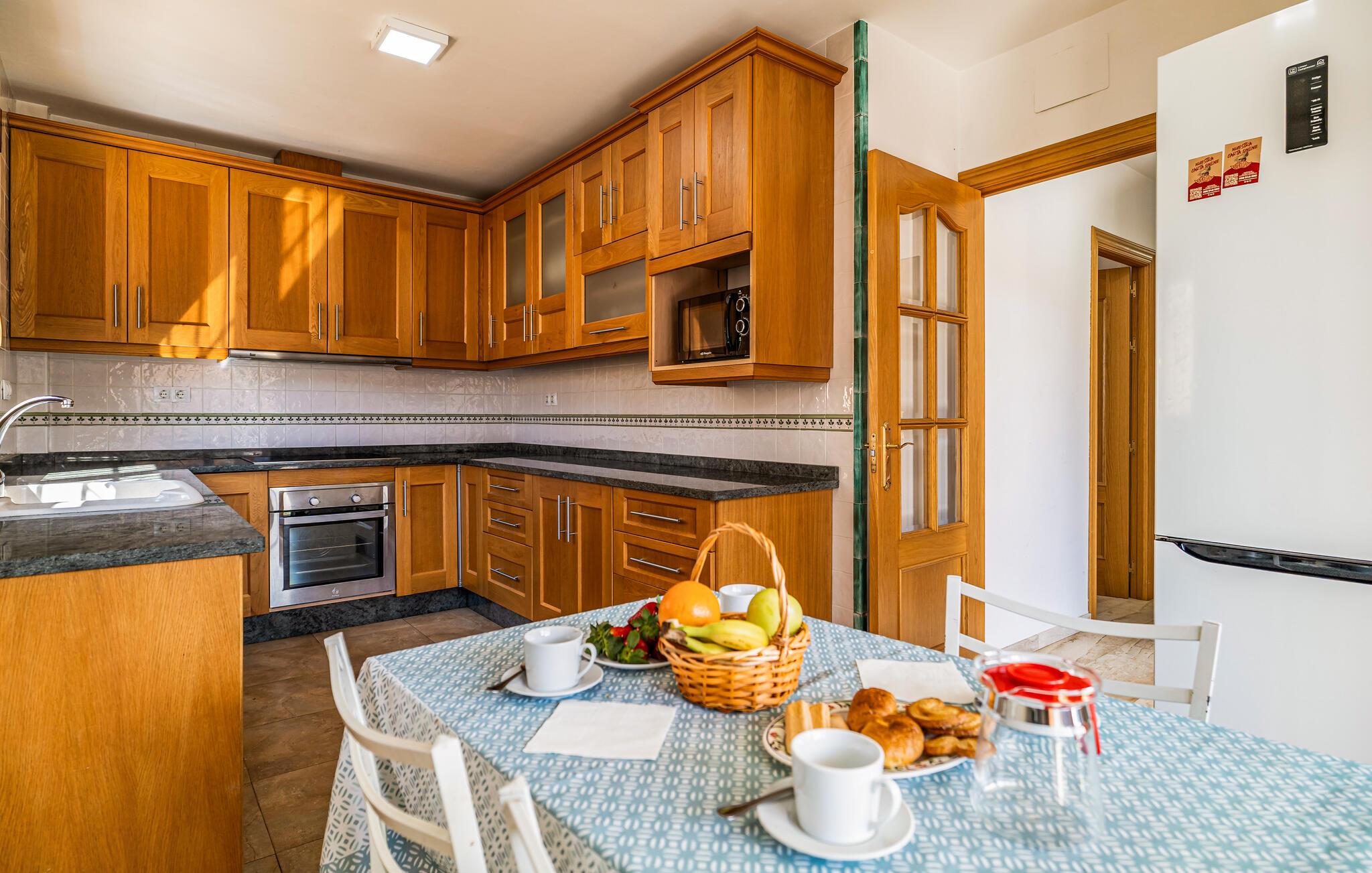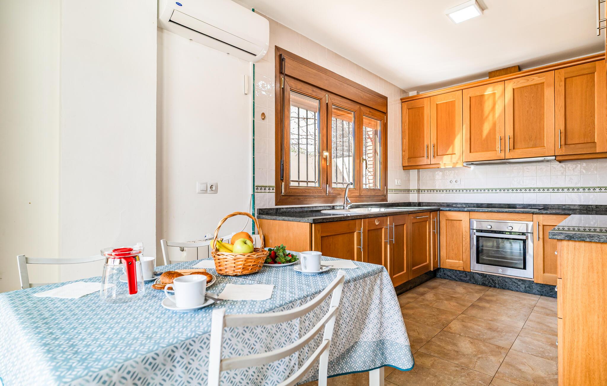 Føl jer hjemme i dette rummelige feriehus og glæd jer til en harmonisk pause nær spændende udflugtsmål. Lav lækre tapas sammen i det indbydende køkken, planlæg jeres aktiviteter over et glas vin eller slap af i den behagelige sofa med en god film.