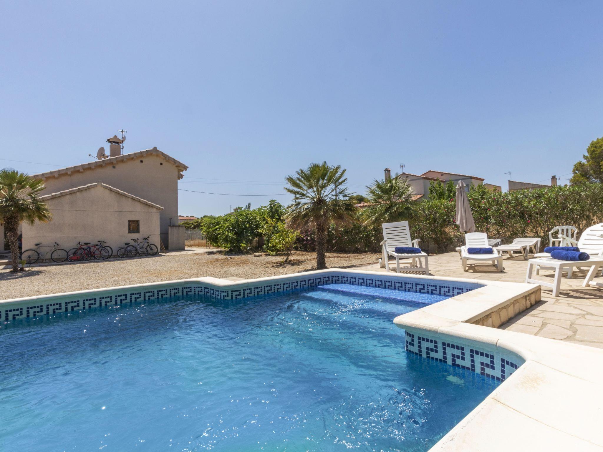 Urb. Tres Cales 4 km from L'Ametlla de Mar: Cosy, comfortable villa "Palmera I", 2 storeys. Outside the resort, 4.8 km from the centre of L'Ametlla de Mar, in a quiet, sunny position, 1.1 km from the sea, 1.1 km from the beach. Private: natural state property (fenced), swimming pool angular (8 x 4 m, depth 80 - 190 cm, seasonal availability: 01.Apr. - 31.Oct.). Garden furniture, pool maintenance by the owner/gardener. Grocery, supermarket, restaurant, bar 700 m, bus stop 600 m, railway station "Ametlla de Mar" 4.8 km, sandy beach 1.1 km. Nearby attractions: Parque Portaventura 48 km, parque Aquopolis 51 km, parque natura del Delta del Ebro 35 km, Tarragona 57 km, Reus 48 km, Barcelona 153 km. Please note: car recommended. Groups of teenagers on request only.