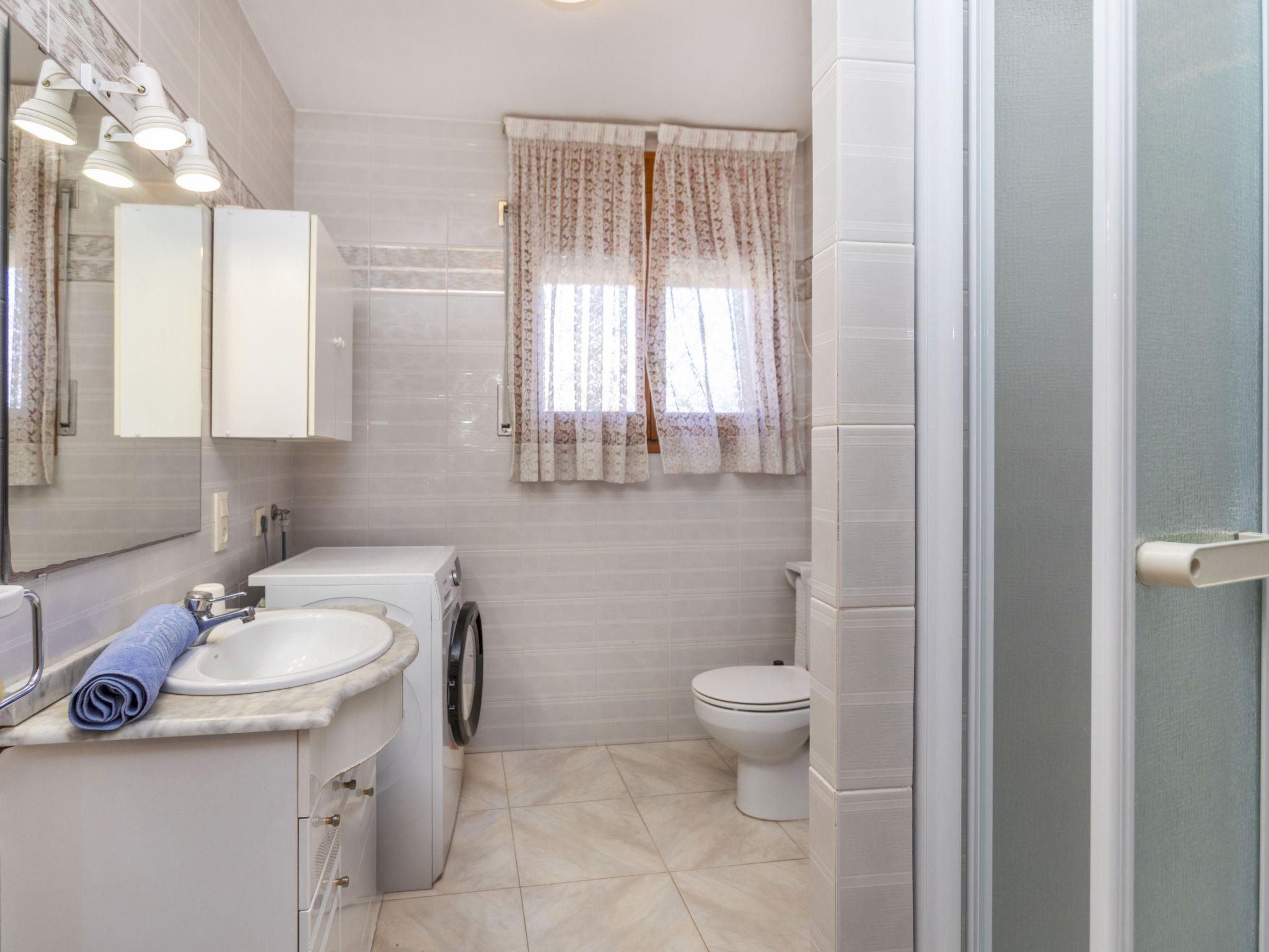 "Villa Palmera I", 5-room villa 170 m2 on 2 levels. Comfortable and cosy furnishings: living/dining room with dining table, satellite TV and digital TV. Exit to the terrace. 1 room with 1 french bed (150 cm, length 190 cm). 1 room with 2 beds (90 cm). Open kitchen (4 hot plates, oven, dishwasher, toaster, microwave, electric coffee machine, Capsules for coffee machine (Dolce Gusto) extra). Shower/bidet/WC. No heating option. Upper floor: 1 room with 1 french bed (160 cm, length 190 cm). 1 room with 2 beds (90 cm, length 190 cm). Exit to the terrace. Bath/bidet/WC. Large garden. Terrace furniture, deck chairs. Facilities: washing machine, iron, hair dryer. Internet (WiFi, free). HUTTE-000904