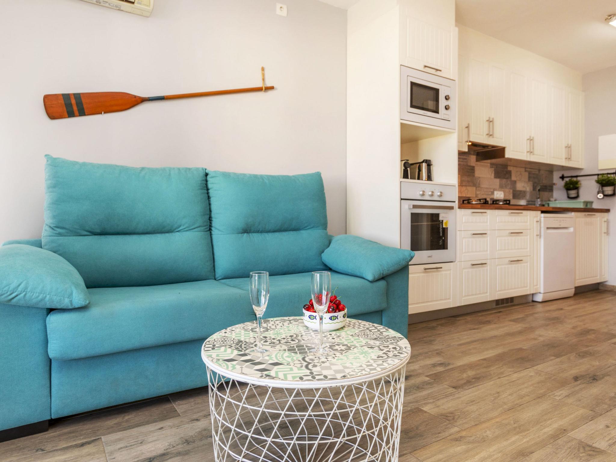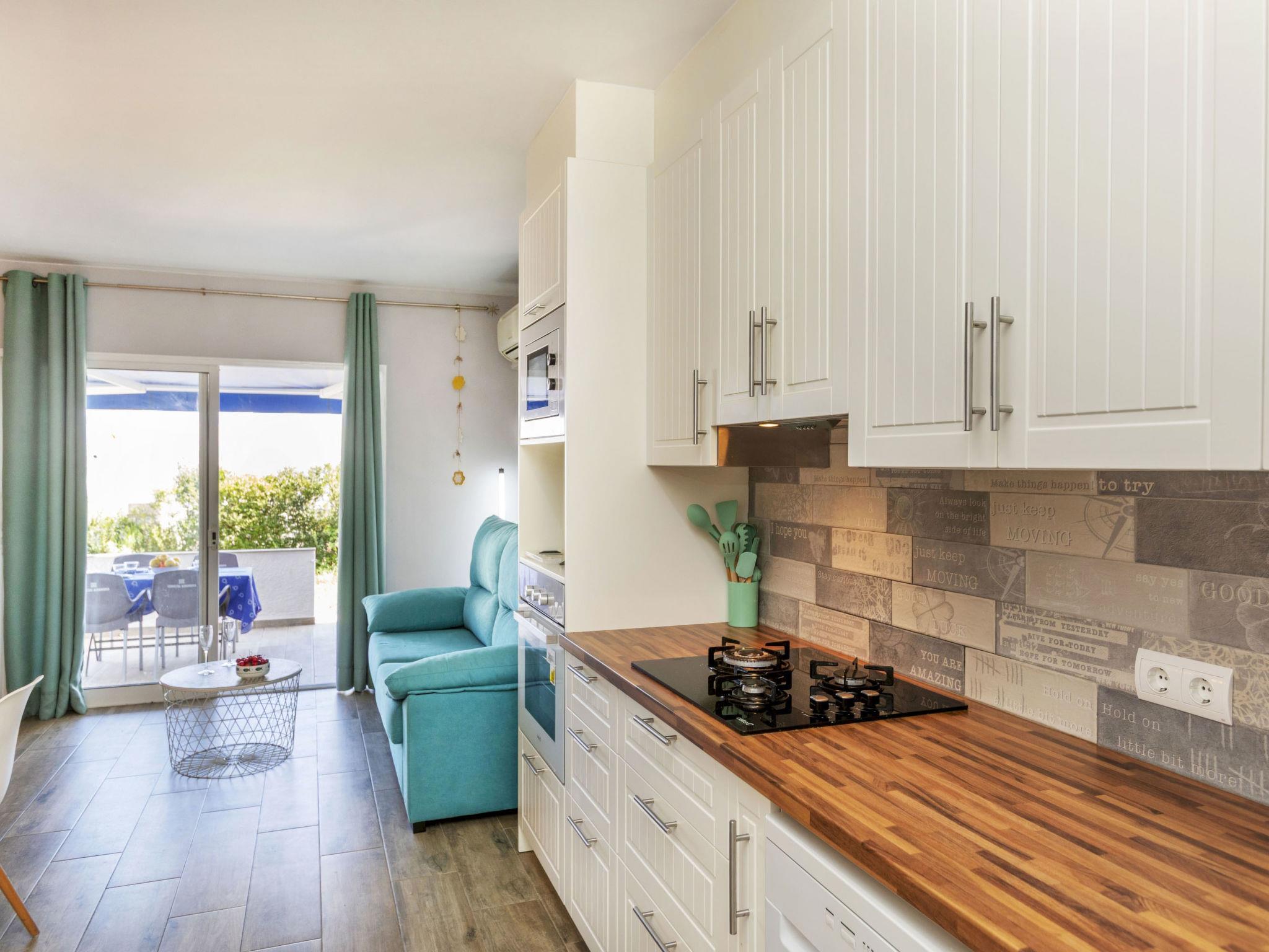 "Calafat", 2-room studio 23 m2. Simple and practical furnishings: living/sleeping room with 1 sofabed. 1 room with 1 french bed (135 cm, length 190 cm). Open kitchen (oven, dishwasher, 3 gas rings, toaster, kettle, electric coffee machine) with boiler (80 litres). Shower/WC. Air-conditioning, forced-air heating. Terrace furniture. View of the sea. Facilities: washing machine, iron, hair dryer. Internet (WiFi, free). Please note: non-smokers only. HUTTE-065046 // Reg. Nr.: ESFCTU0000430200000685770000000000000000HUTTE-0650460