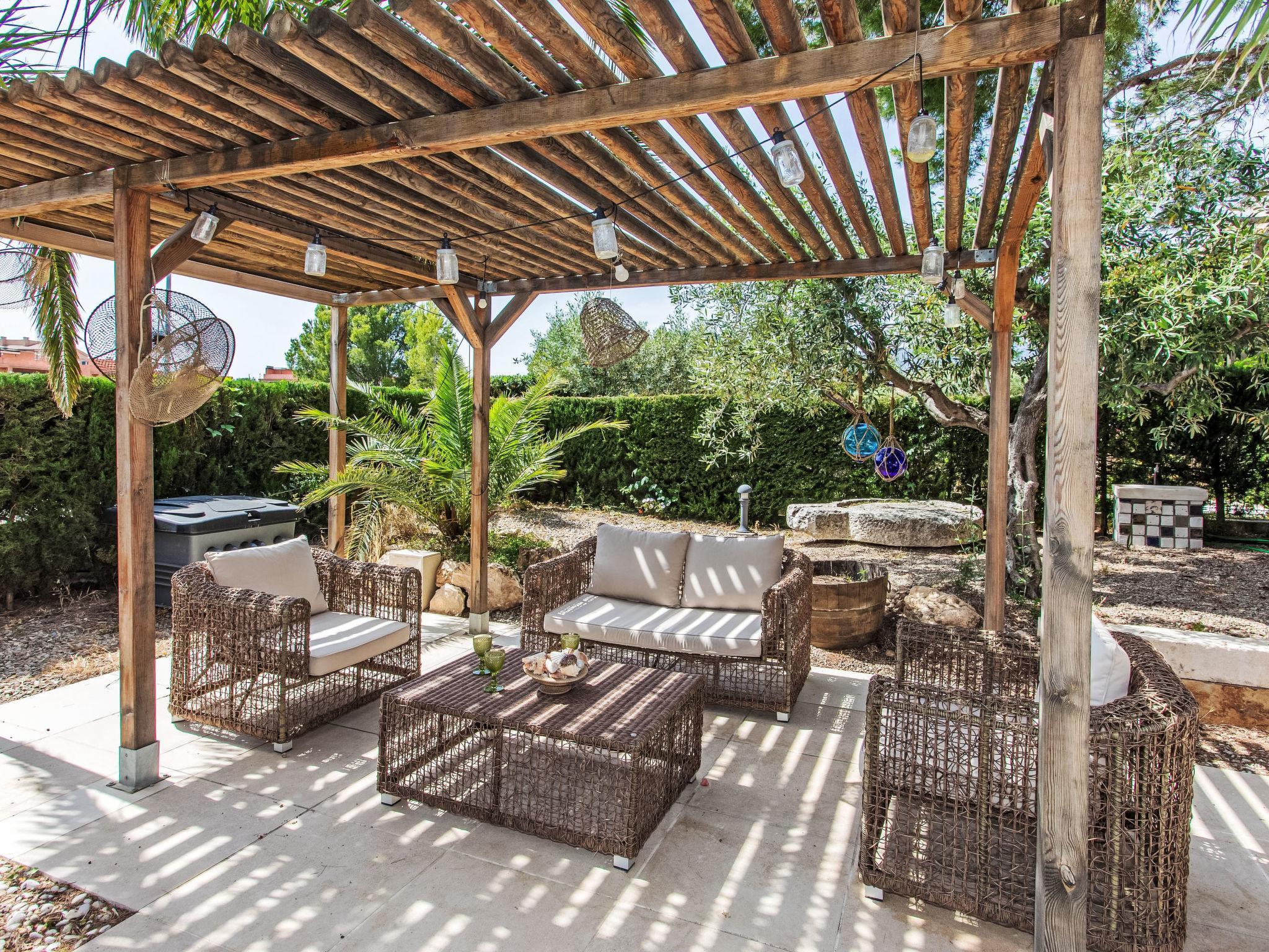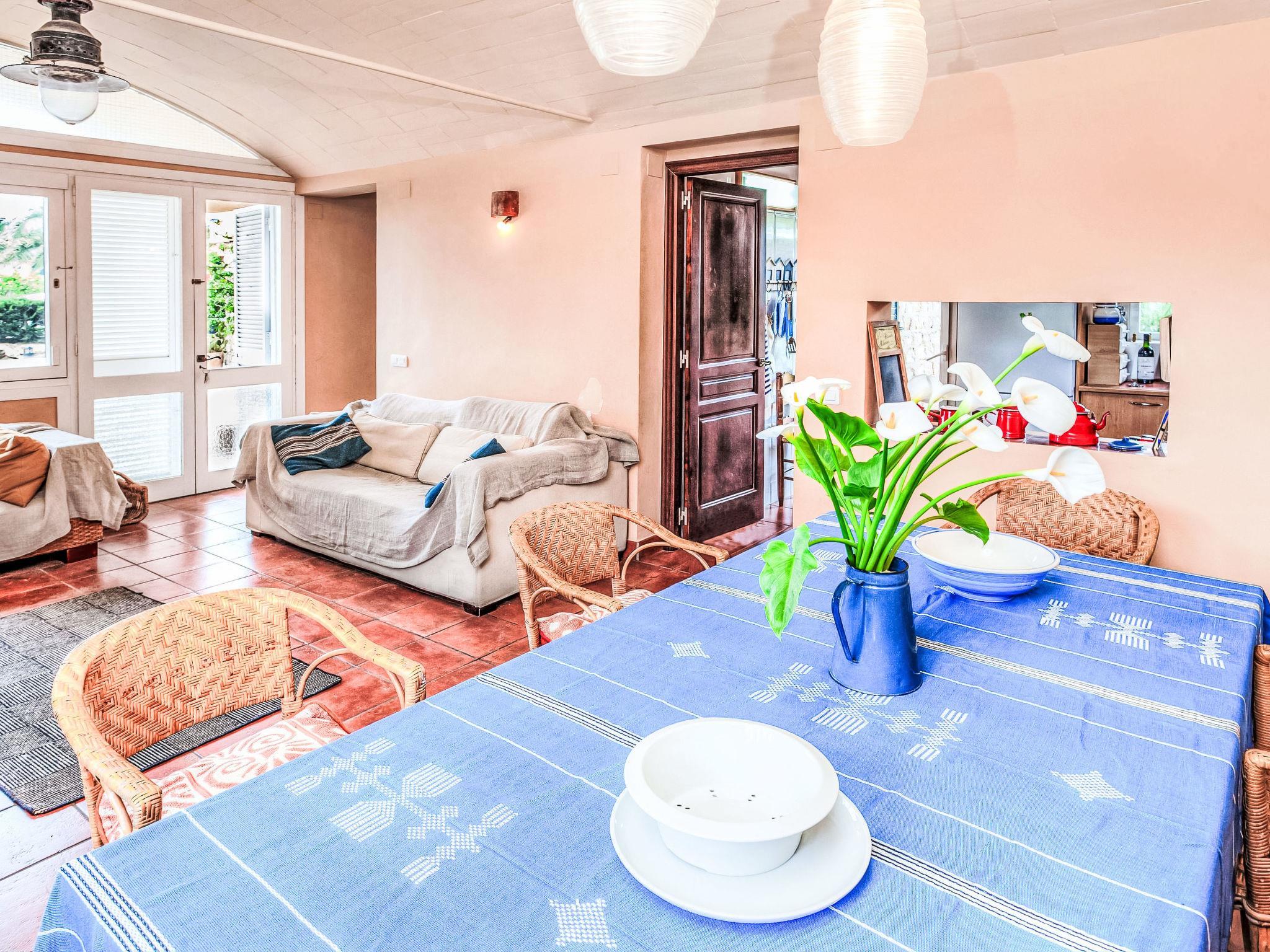 "Villa Platja Calafato", 4-room villa 180 m2. Very comfortable and tasteful furnishings: living/dining room with digital TV and air conditioning. Exit to the terrace. 1 room with 1 french bed (135 cm). 1 room with 1 x 2 bunk beds (90 cm). 1 room with 2 beds (90 cm). Entrance hall with air conditioning. Kitchen (2 hot plates, oven, dishwasher, 2 ceramic glass hob hotplates, toaster, kettle, microwave, electric coffee machine). 2 showers/WC. Boiler (100 litres). No heating option. Patio. Terrace furniture, barbecue, covered balcony, sitting area. Facilities: washing machine, iron, children's high chair, baby cot, hair dryer. Internet (WiFi, free). Parking at the house. Maximum 2 pets/ dogs allowed. HUTTE-001173 // Reg. Nr.: ESFCTU0000430200003983220000000000000000HUTTE-0011739