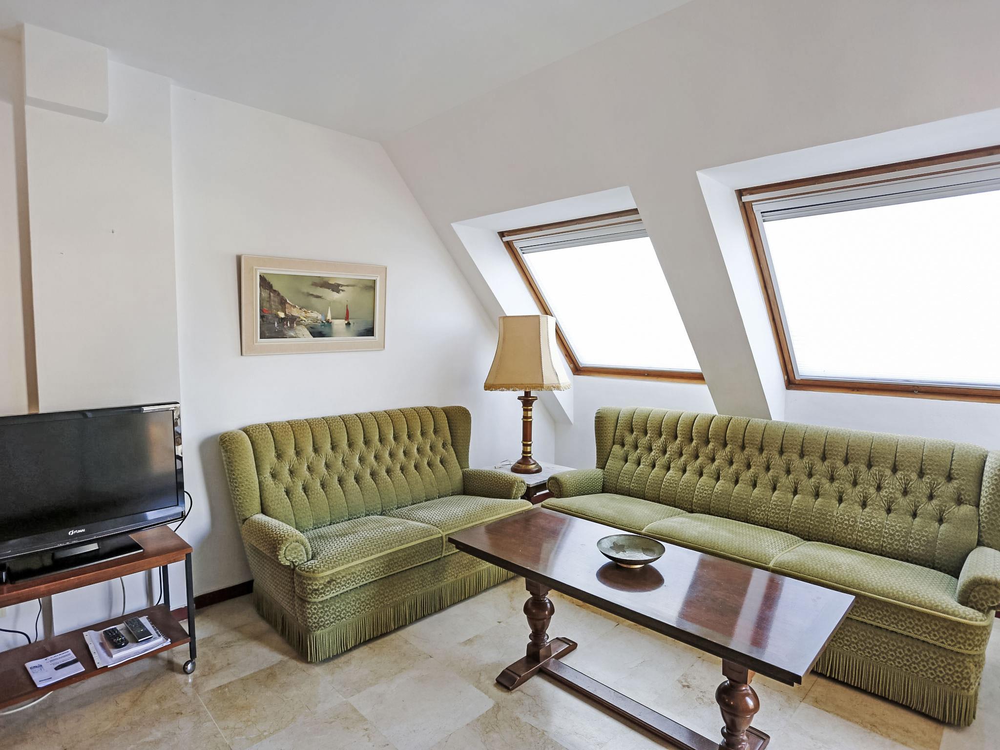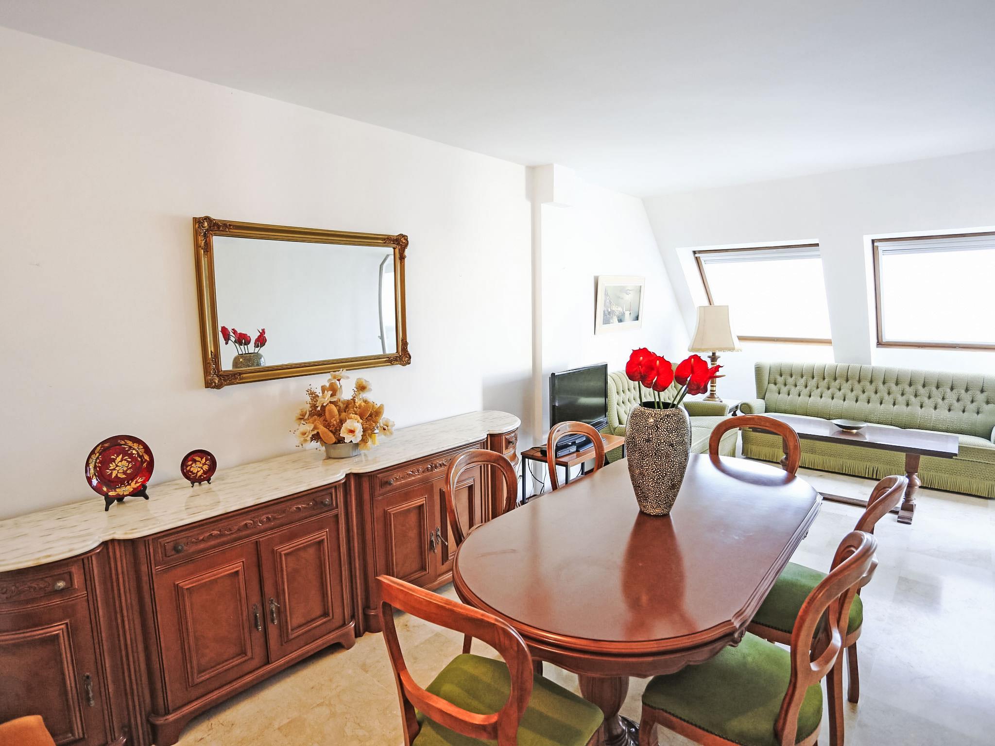 "Dorine", 5-room apartment 90 m2, on the top floor. Spacious and bright, with sloping ceilings, simple and practical furnishings: living/dining room with dining table, satellite TV, air conditioning and forced-air heating. Exit to the terrace. 1 room with 1 bed (90 cm, length 190 cm). 1 double bedroom with 2 beds (90 cm, length 190 cm). 1 room with 1 bed (90 cm, length 190 cm). Exit to the terrace. 1 double bedroom with 1 bed (150 cm, length 190 cm). Exit to the terrace. Kitchen (3 hot plates, oven, dishwasher, microwave). Exit to the veranda. Shower/WC, bath or shower/WC. Terrace furniture. Facilities: washing machine. Parking (roofed). Maximum 1 pet/ dog allowed. HUTTE-0026993 // Reg. Nr.: ESPCTU0000430200001695950000000000000000HUTTE0026993