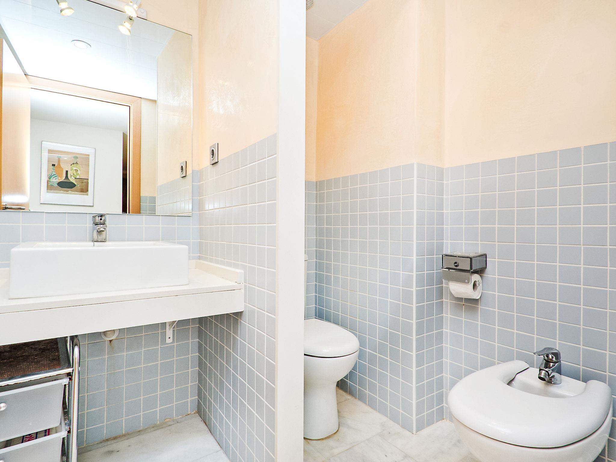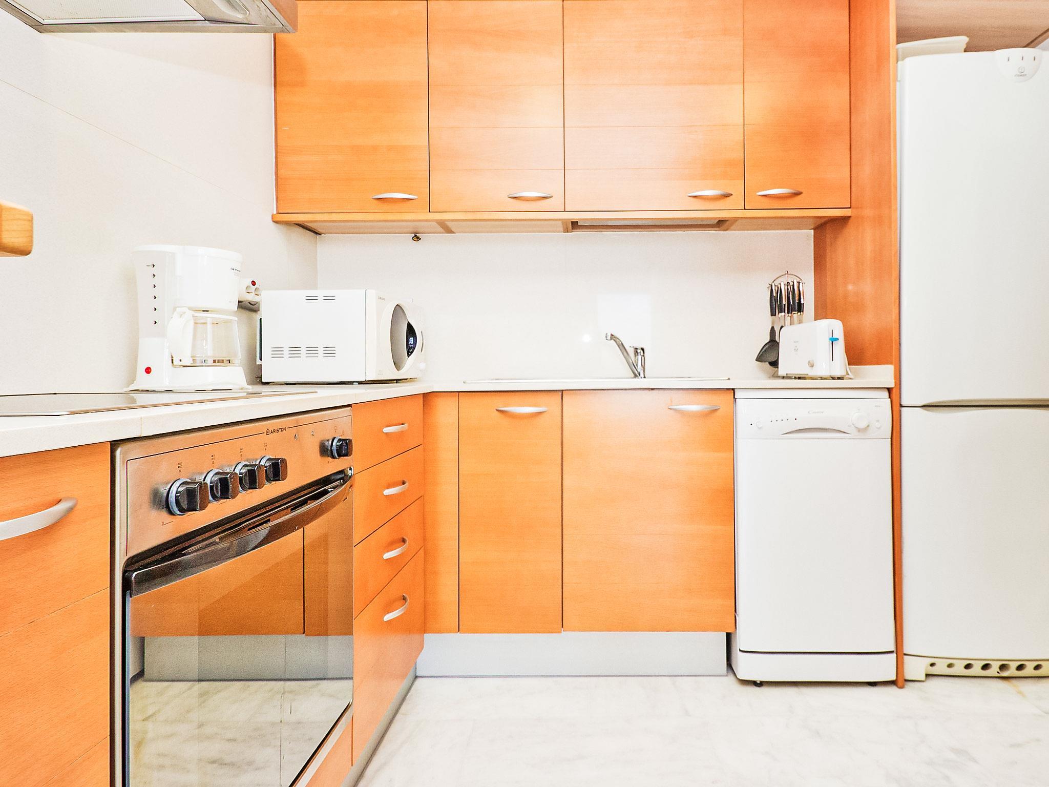 3-room apartment 55 m2 on 2nd floor. Modern and tasteful furnishings: living/dining room with 1 sofabed, dining table and TV (flat screen), air conditioning and forced-air heating. Exit to the balcony. 1 room with 1 french bed (1 x 150 cm), air conditioning and forced-air heating. 1 room with 1 pull-out bed (2 pers. 2 x 90 cm), air conditioning and forced-air heating. Open kitchen (oven, dishwasher, 4 ceramic glass hob hotplates, microwave, freezer, electric coffee machine). Shower/bidet/WC. Air-conditioning. Terrace 5 m2. Balcony furniture. Marvellous view of the sea and the port. Facilities: washing machine, children's high chair, baby cot. Internet (WiFi). Parking space n 24. Please note: suitable for families. Parking space for small car only. TV only ES. HUTTE000086 // Reg. Nr.: ESFCTU0000430200008630280000000000000HUTTE-000086-411