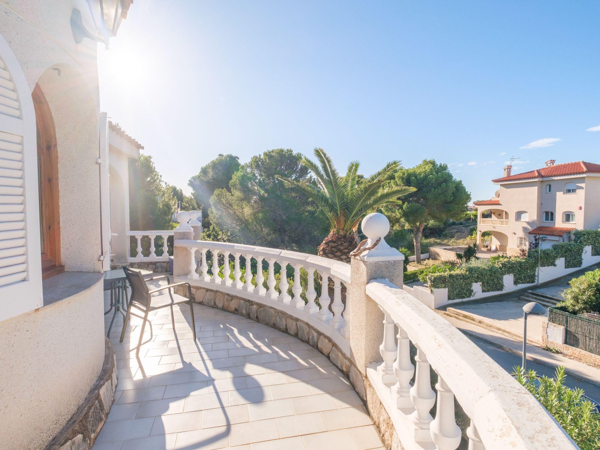 This stunning, detached villa with a large house and pool is located in a popular neighbourhood in a swimming cove away from the centre of town.