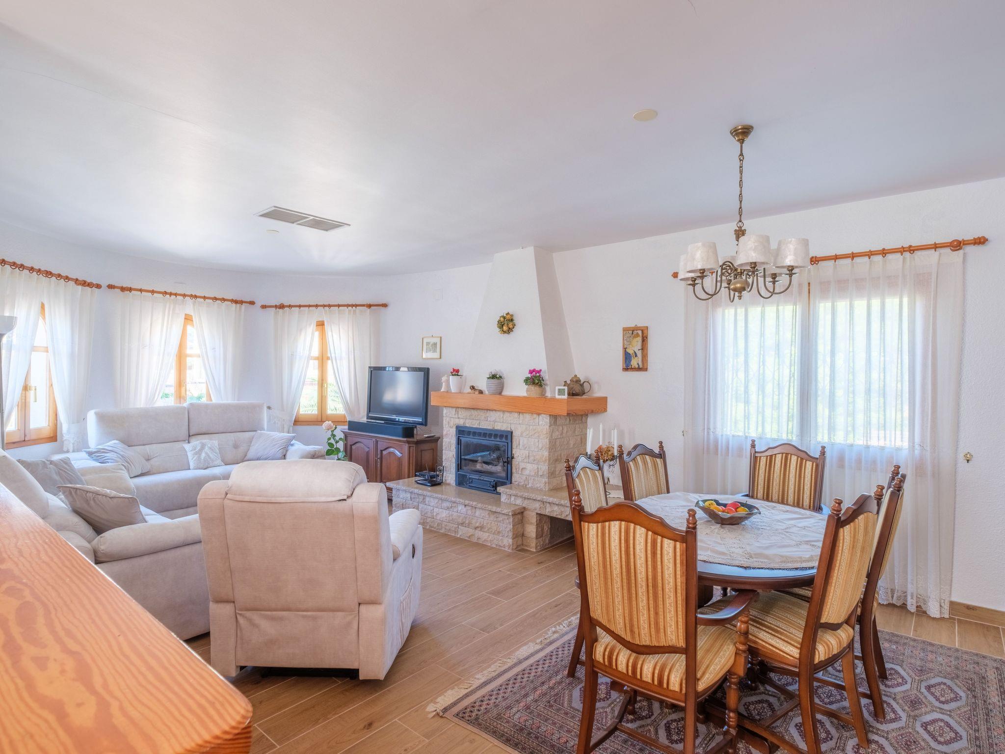 This property is impressive! It sits elevated above a garage and is surrounded by natural stone walls. The tall plan trees lead the way to the staircase, which leads to the entrance, the conservatory and the pool. The luxurious 152 m², two storey holiday home boasts three comfortable double bedrooms, two bathrooms, a spacious living/dining room, a large, separate kitchen and a cosy conservatory. The first bedroom is furnished with a 180 cm x 200 cm canopy bed. The second bedroom is furnished with a comfortable 200 cm x 200 cm double bed. The third bedroom is furnished with two single beds (90 cm x 200 cm each). All beds boast quality sheets. At the heart of the house is the classic living room with comfortable sofas and an armchair, where you can relax in the evening. For your evening entertainment, there are a flat screen satellite TV and a DVD player. The dining table can accommodate all guests for a communal meal. The large kitchen is furnished with all necessary appliances and plenty of counter space, so you can cook comfortably. It is equipped with a four burner glass ceramic stove, an oven, a microwave, a refrigerator with a freezer compartment, a dishwasher and small appliances, such as a toaster, a kettle and a Nespresso capsule coffee machine. The conservatory offers another dining table and chairs in front of the fireplace. The spacious bathroom boasts a window, a bathtub, a double sink with under sink storage and a toilet. The second bathroom boasts a shower tub, a sink, a toilet and a washing machine. There is also a window with a mosquito net. The house is air conditioned (heating/cooling). The house also has wireless internet access.