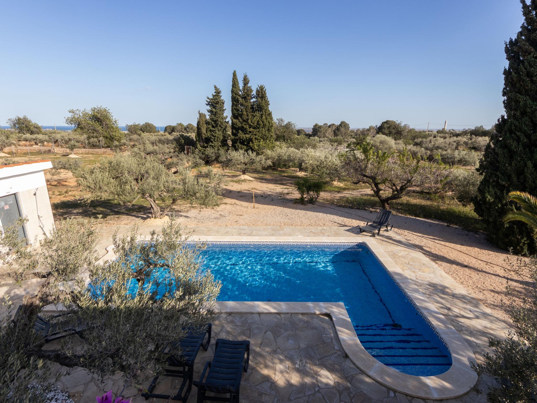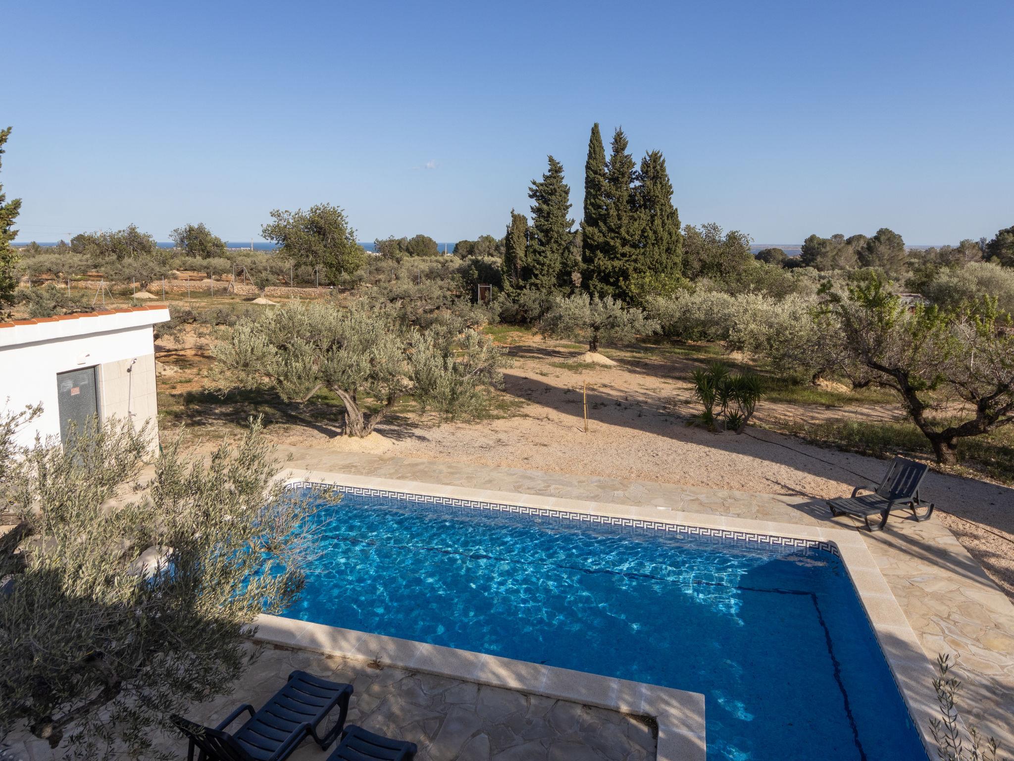 L'Ampolla 5 km from L'Ampolla Playa: Rustic, comfortable 2-family house "Filou", surrounded by trees and fields. Property composed of main house and outbuilding, on the outskirts, 5 km from the centre of L'Ampolla, in a secluded, quiet, sunny position, 5 km from the sea, 5 km from the beach, located by a road. Private: property (fenced), natural garden, swimming pool angular (4 x 8 m, depth 160 cm, seasonal availability: 01.Apr. - 31.Oct.) with internal staircase. WC in the pool area, outdoor shower, patio, garden furniture, barbecue. In the house: WiFi, air conditioning, washing machine. Parking on the premises. Shopping centre 5 km, restaurant 5 km, bus stop "L'Ampolla" 11 km, railway station "L'Ampolla" 10 km. Nearby attractions: Parque Natural del Ebro 5 km, parque Portaventura 65 km, Pitch & Putt 2 km, Barcelona 170 km. Hiking paths: Parque natural Puerto Tortosa Beseit 52 km. Please note: car recommended. Suitable for families. Groups of teenagers on request only.