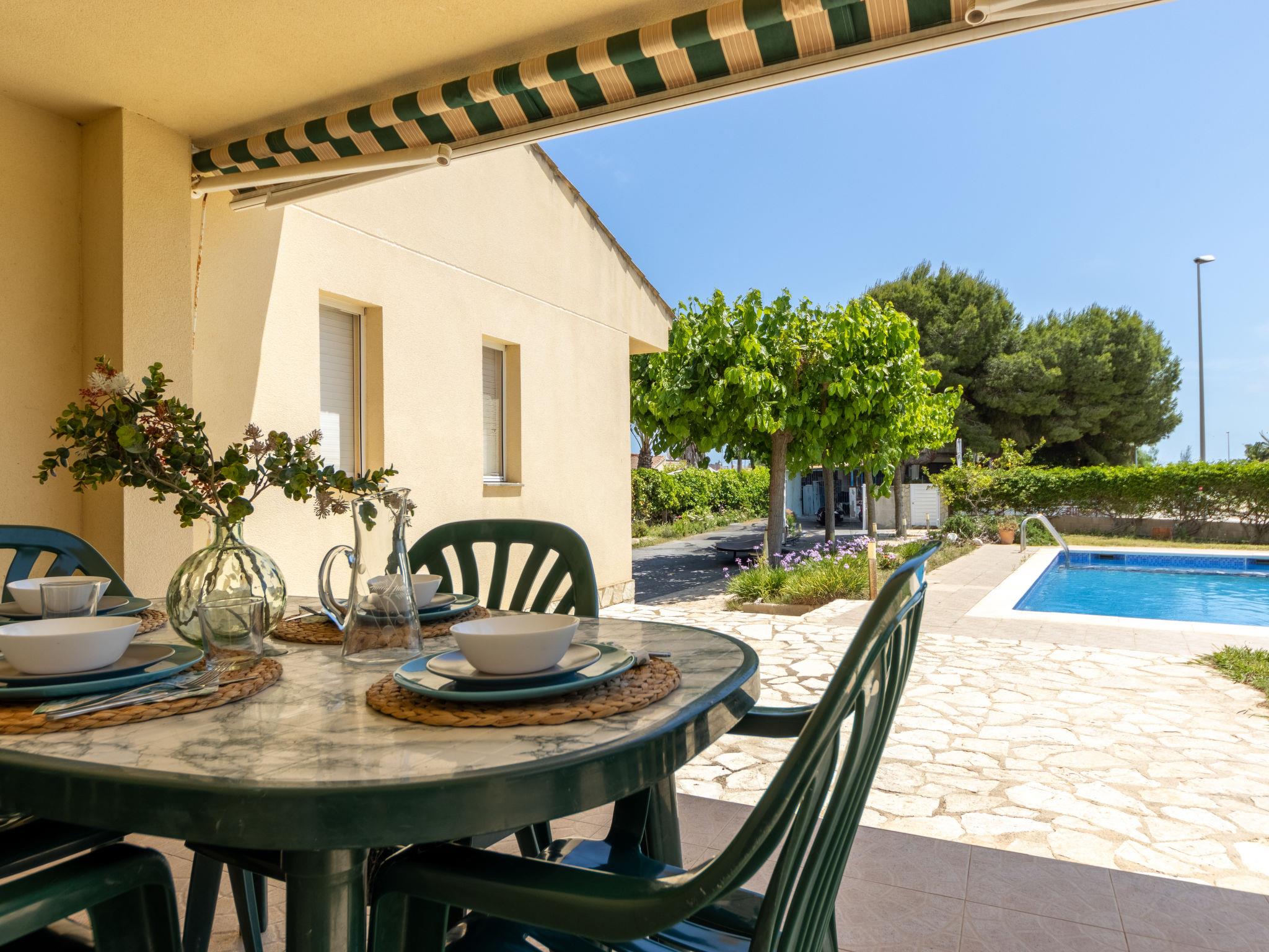 Urb Eucaliptus 25 km from L'Ampolla: Large, cosy, comfortable villa "Imma". In a quiet, sunny position, 100 m from the sea, 100 m from the beach. Private: property 700 m2, natural garden (fenced), swimming pool (8 x 4 m, depth 1 - depth 80 cm, seasonal availability: 01.Mar. - 30.Oct.). Outdoor shower, patio, garden furniture, barbecue. In the house: WiFi, air conditioning, washing machine. Parking on the premises. Shop 3 km, grocery 3 km, supermarket 3 km, restaurant 3 km, bus stop 5 km, railway station 25 km, sandy beach "Eucaliptus" 100 m. Sports harbour 20 km, marina 20 km, surf school 20 km, cycle lane 1 km. Nearby attractions: Port Aventura 65 km, Parque natural delta del Ebro 20 km, GR 92 30 km, Barcelona 190 km, Parque aquatico 70 km. Please note: car recommended. Suitable for families.
