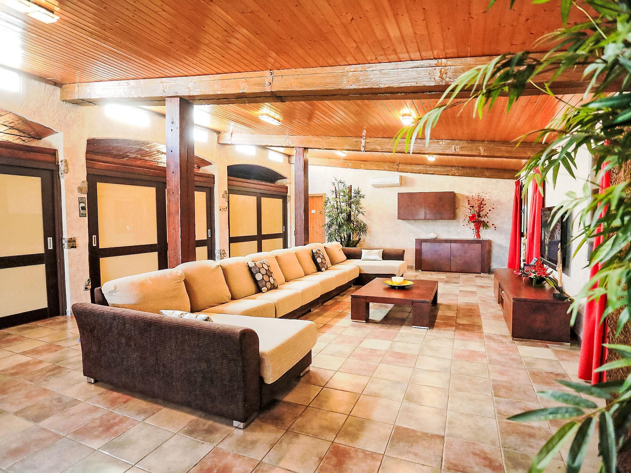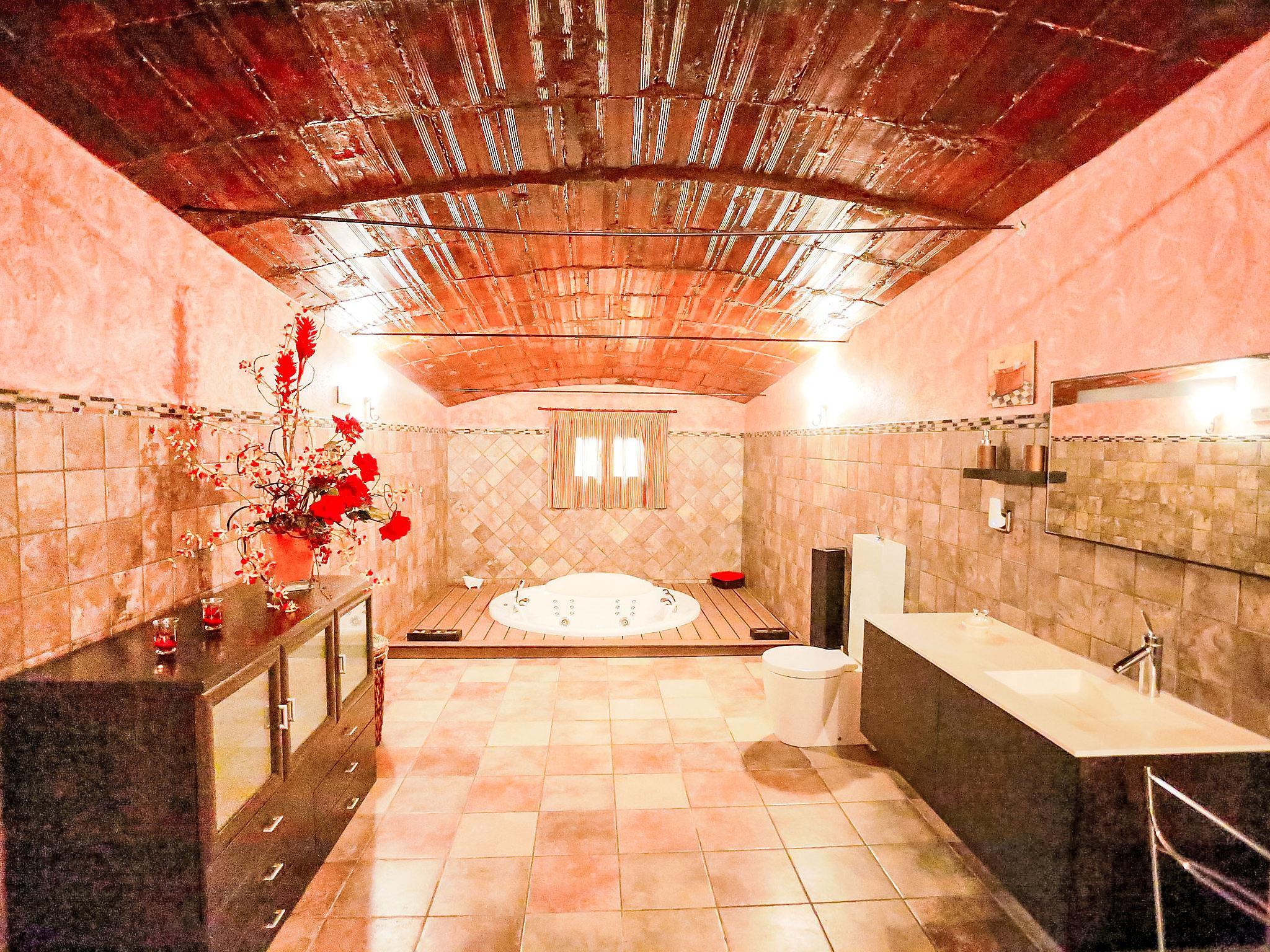 5-room house 320 m2, lower ground floor. Spacious, fully, luxurious and tasteful furnishings: open large living/dining room with dining table and satellite TV (flat screen), air conditioning and forced-air heating. Exit to the patio. 3 large rooms, each room with 1 french bed, TV, DVD and forced-air heating. With Dressing room. Open kitchen (4 hot plates, oven, dishwasher, microwave) with bar. Bath/shower/WC, double hand-basin, hydro massage bath, Sauna. Large patio. Terrace furniture, barbecue, covered balcony, sitting area. Facilities: washing machine, dryer. Internet (WiFi, free). Please note: maximum 1 pet/ dog allowed. TV only ES, DE, FR. Price of internet: 25€ per week. HUTTE000854 // Reg. Nr.: ESFCTU0000430190005533050000000000000000HUTTE-0008540