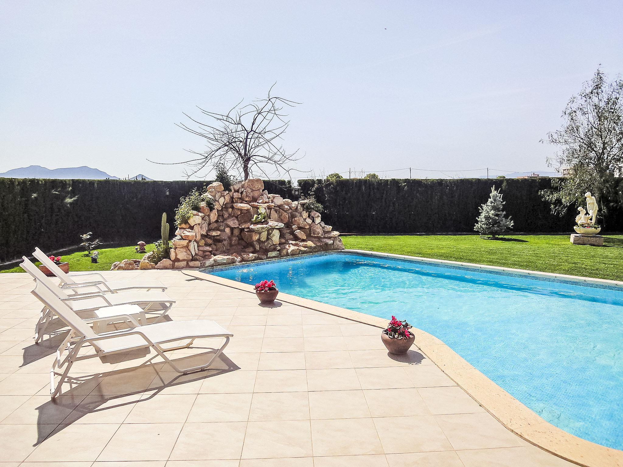 L'Aldea 8 km from L'Ampolla: Rental bikes: 20€ per week. Large, very beautiful house "L'Aldea", detached. 8 km from the sea, 8 km from the beach. Private: beautiful, well-kept garden 600 m2 (fenced) with lawn, swimming pool kidney shaped (10 x 4 m, depth 90 - 180 cm, seasonal availability: 01.Jan. - 31.Dec.) with internal staircase. Outdoor shower, arbour, pergola, garden furniture, barbecue. In the house: air conditioning, burglar alarm system, bicycles available (extra). Public parking on the road. Shop 300 m, supermarket 1 km, restaurant 300 m, bus stop 1 km, railway station 1 km.