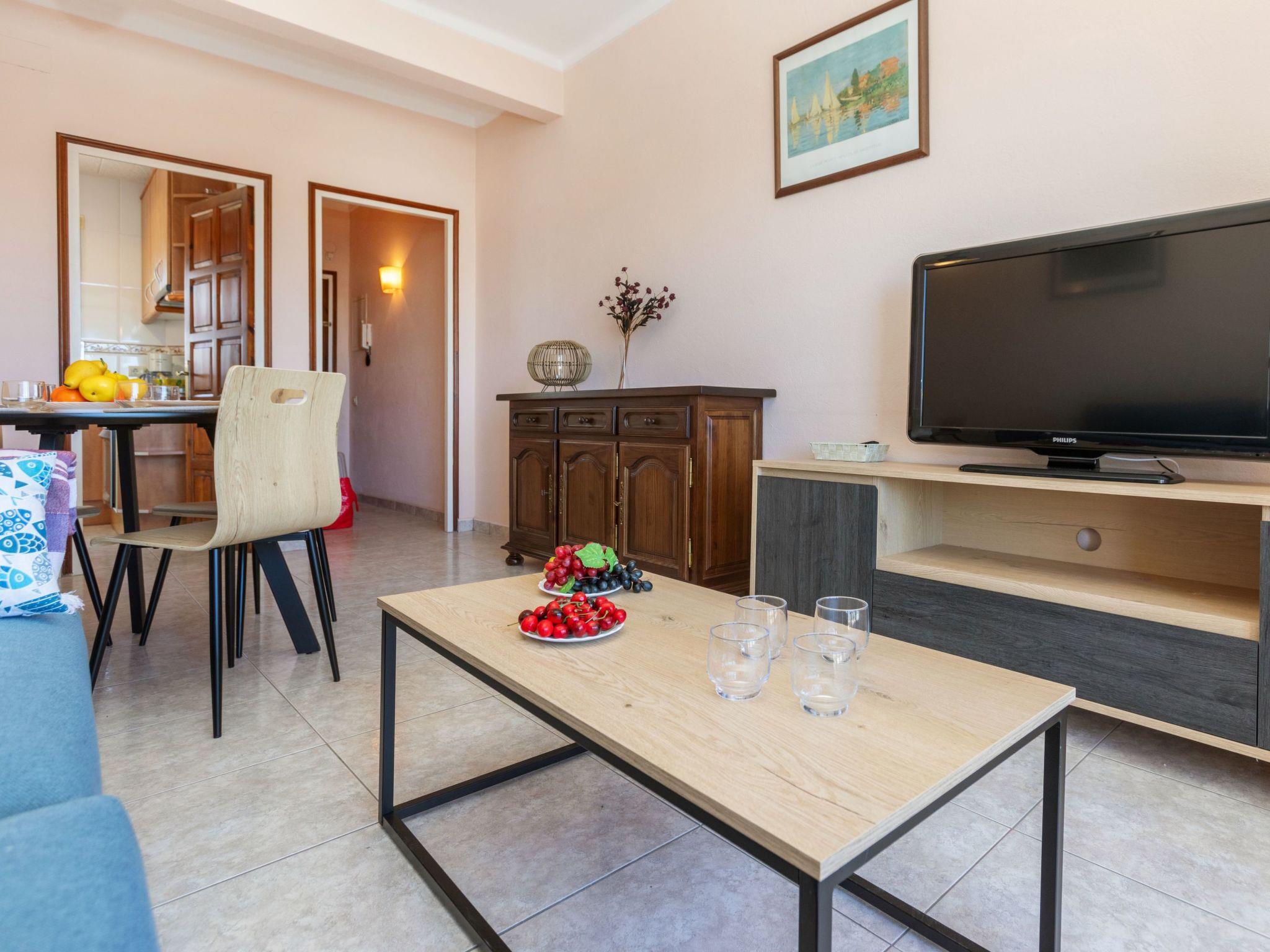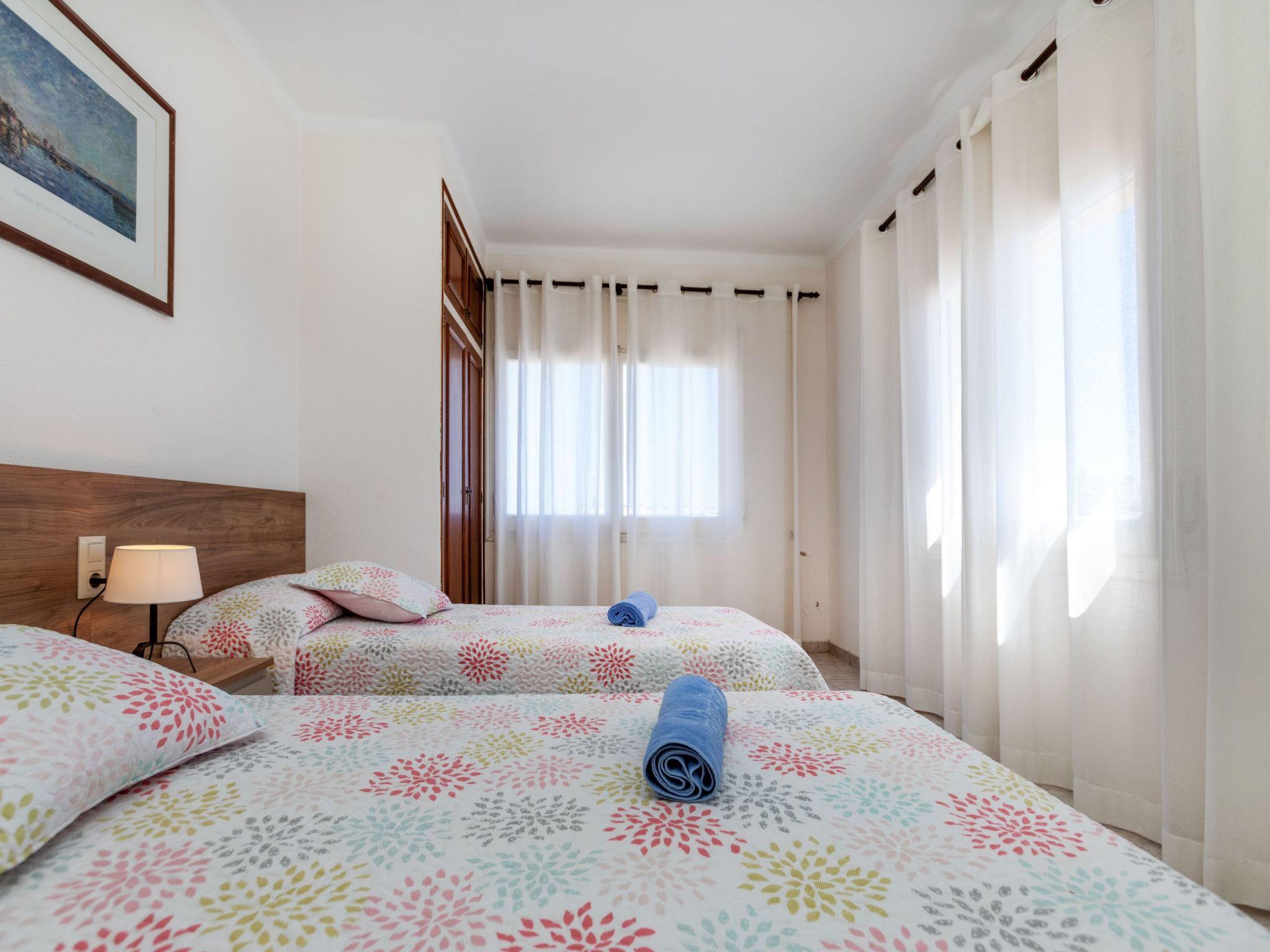 3-room apartment 67 m2 on 4th floor. Practical and cosy furnishings: entrance hall. Living/dining room with dining table, digital TV and air conditioning. Exit to the balcony. 2 rooms, each room with 2 beds (90 cm, length 190 cm). Kitchen (oven, dishwasher, 4 ceramic glass hob hotplates, microwave, electric coffee machine). Exit to the balcony. Shower/bidet/WC. Boiler (50 litres). No heating option. Small balcony balcony. Balcony furniture. Beautiful view of the sea. Facilities: washing machine. Internet (WiFi, free). Please note: non-smokers only. TV only ES. HUTG035952 // Reg. Nr.: ESFCTU00001701000021782700000000000000HUTG-035952-514