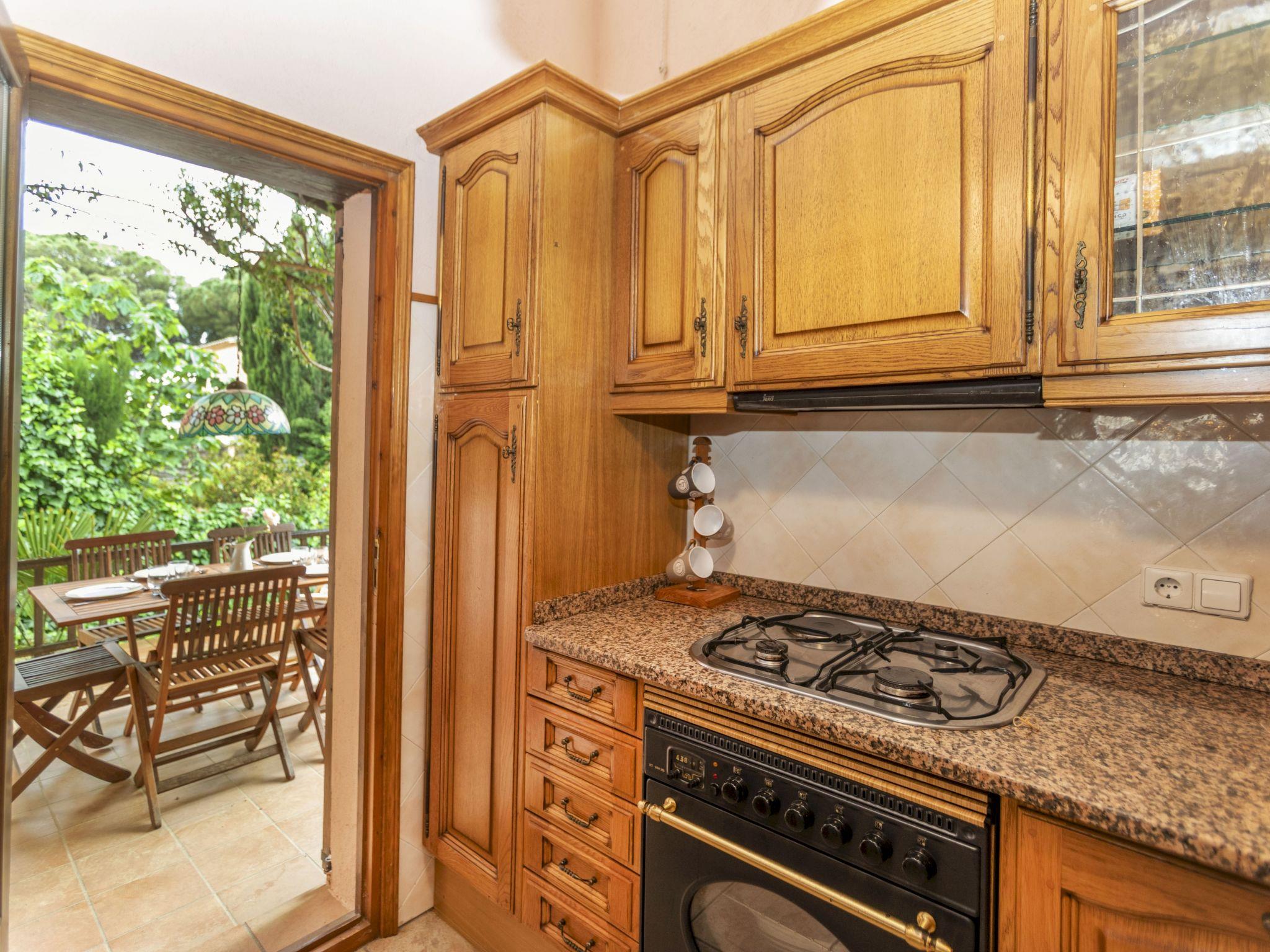 "La Falguera", 4-room house 110 m2. Comfortable and cosy furnishings: living/dining room with satellite TV and air conditioning. Exit to the patio. 2 rooms, each room with 1 french bed (140 cm, length 200 cm). 1 room with 2 beds (90 cm, length 200 cm). Kitchen (4 hot plates, oven, dishwasher, toaster, kettle, microwave, electric coffee machine). Exit to the patio. Bath/bidet/WC, shower/WC. Heating, air-conditioning. Large patio, porch. Terrace furniture. View of the garden. Facilities: washing machine, iron, children's high chair, baby cot for up to 2 year olds, hair dryer. Internet (WiFi, free). Please note: non-smoking house. HUTG-033595 // Reg. Nr.: ESFCTU00001701000030171700000000000000HUTG-033595-566