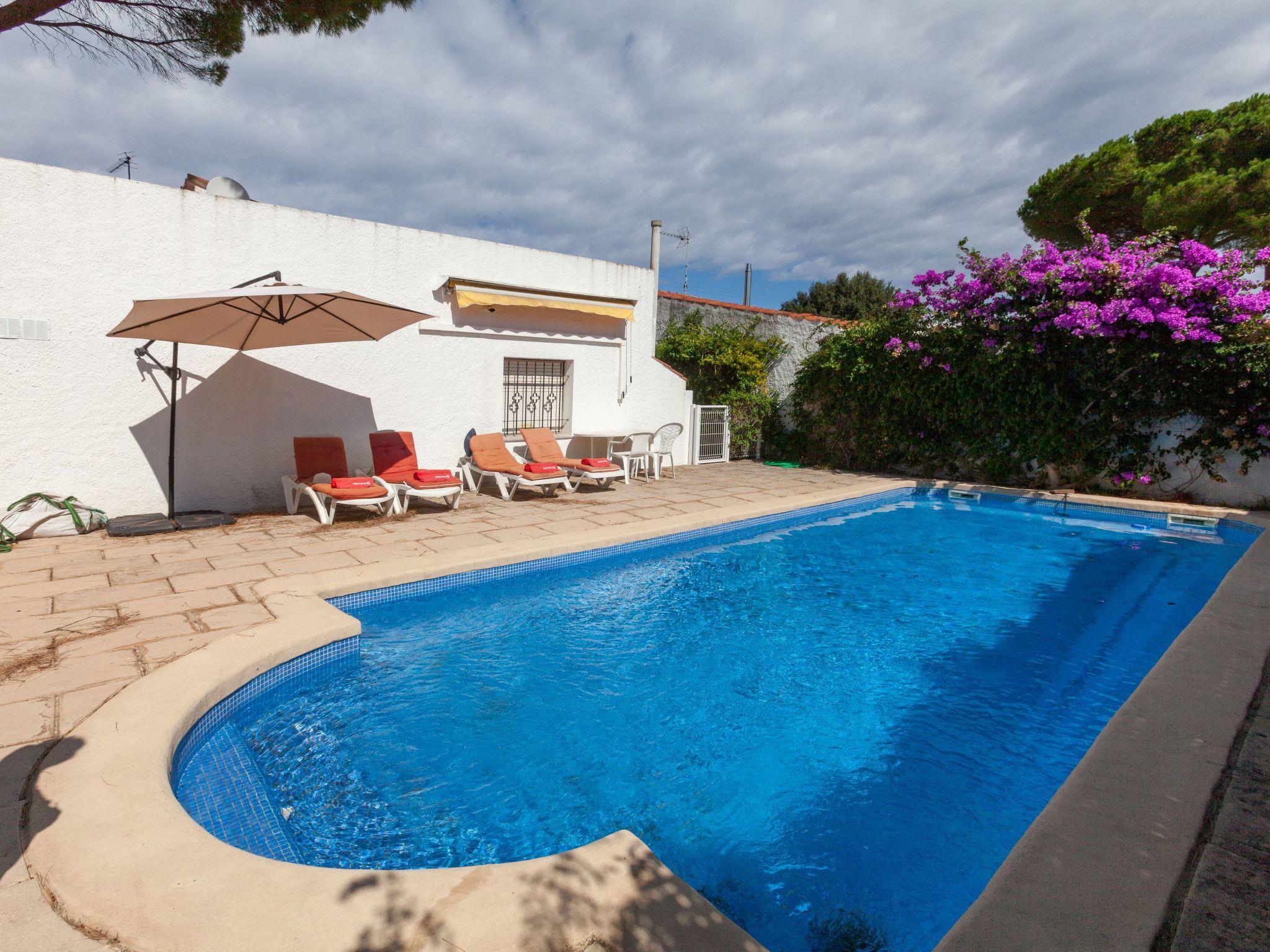 Riells de Dalt: Large, rustic house "Les 4 Saisons". On the outskirts, 2.6 km from the centre of L'Escala, in a quiet, sunny position, 1.6 km from the sea, 1.6 km from the beach. Private: well-kept garden 360 m2 (fenced) with wildlife garden and trees, swimming pool fenced (10 x 4 m, seasonal availability: 06.Jun. - 30.Sep.). Patio, garden furniture. In the house: WiFi. (4 steps). Single garage at the house. Shopping centre 1.6 km, restaurant 900 m, pedestrian zone 1.6 km, bicycle rental 450 m, bus stop 4.6 km, sandy beach "Riells de Riells" 1.6 km, diving center 2.5 km. Sports harbour 2.5 km, surf school 1.9 km, sailing school 1.9 km, riding stable 4.7 km. Nearby attractions: Ruinas greco-romanas d'Empùries 4.2 km, Museo Dalí Figueres 26 km, Parque acuatico AquaBrava Roses 27 km, Skydive Empuriabrava 23 km, Casino-Festival de Perelada 30 km, Pich and Putt Gualta 15 km.