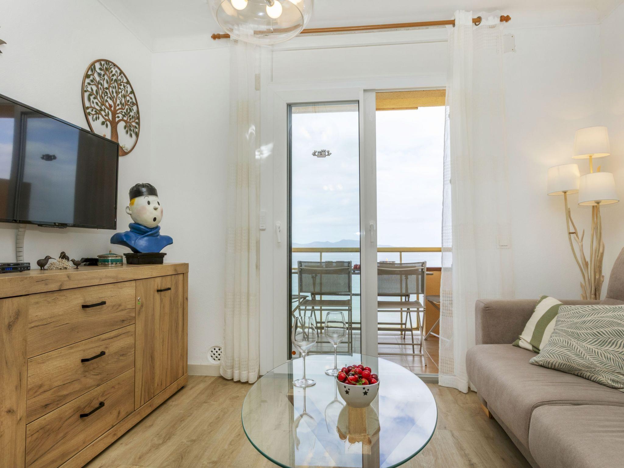 2-room apartment 45 m2 on 4th floor. Modern and cosy furnishings: living/dining room with satellite TV and air conditioning. Exit to the balcony. 1 room with 1 french bed (135 cm, length 190 cm), digital TV. Kitchenette (3 ceramic glass hob hotplates, toaster, kettle, microwave, freezer, electric coffee machine) with air conditioning. Bath/WC. Heating not available in all rooms. Balcony furniture. Marvellous view of the sea and the resort. Facilities: washing machine, iron, hair dryer. Internet (WiFi, free). Parking space n 32 (extra) at 30 m. Please note: TV only FR. HUTG-015311 // Reg. Nr.: ESFCTU00001701000010944300000000000000HUTG-015311-571