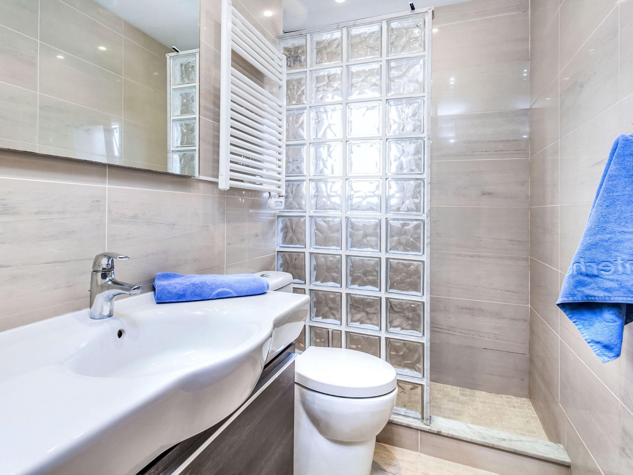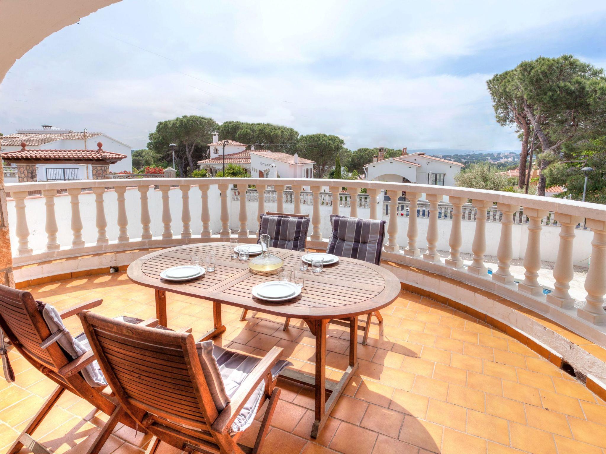 4-room house 74 m2, on the upper ground floor. Comfortable furnishings: living/dining room with open-hearth fireplace and satellite TV (flat screen). Exit to the patio, to the swimming pool. 1 room with 2 beds (90 cm, length 190 cm). Exit to the garden. 1 room with 1 double bed (2 x 90 cm, length 190 cm). 1 room with (2 x 90 cm, length 190 cm), 1 double bed. Kitchenette (oven, dishwasher, 1 ceramic glass hob hotplate, microwave, freezer). Exit to the terrace. 2 showers/WC. Large terrace roofed. Terrace furniture, barbecue. Facilities: washing machine. Internet (WiFi, free). HUTG013258 // Reg. Nr.: ESFCTU00001701000005942700000000000000HUTG-013258-407