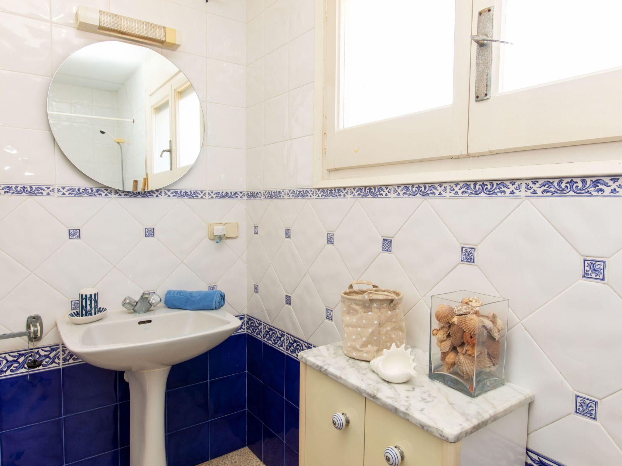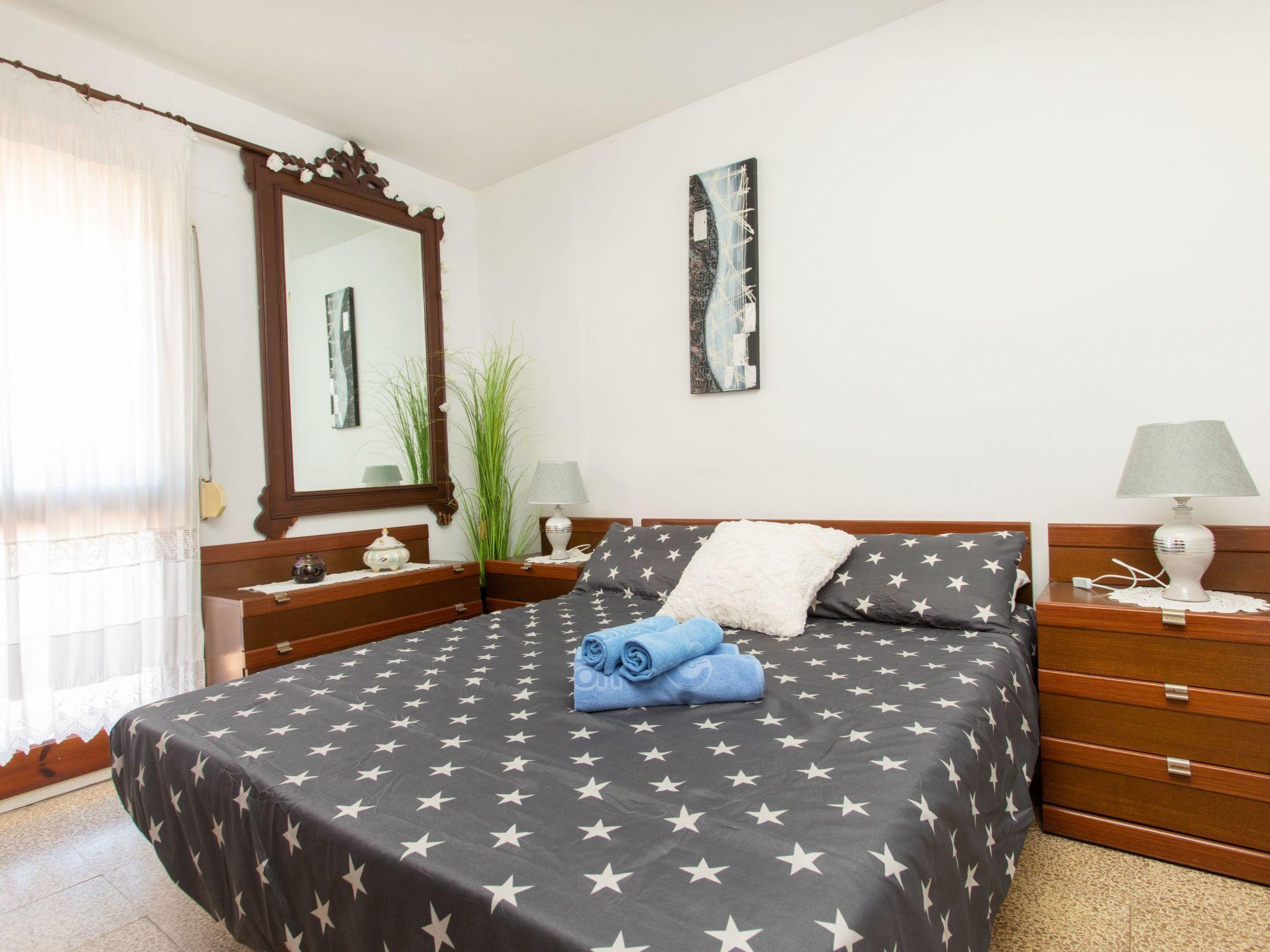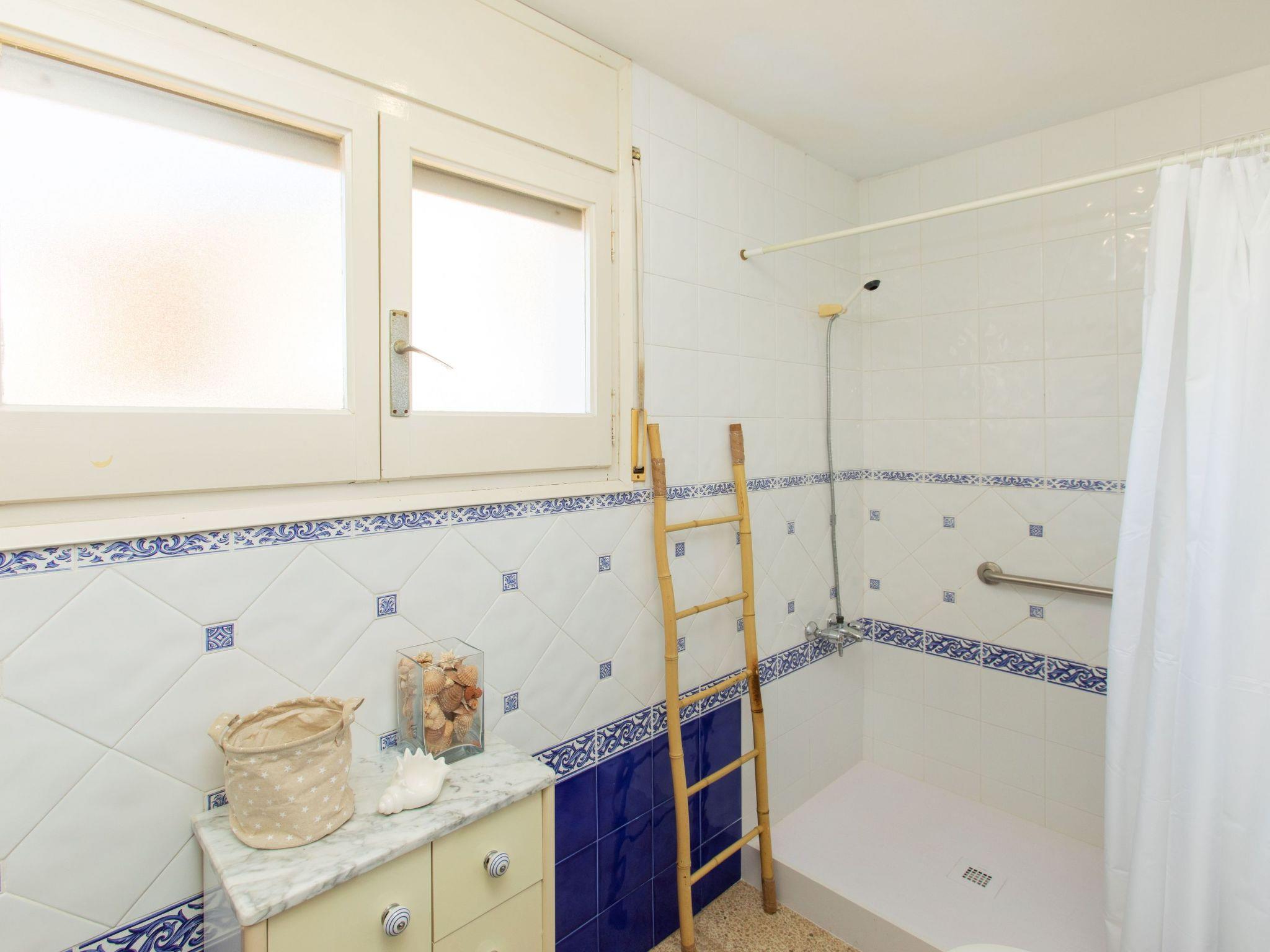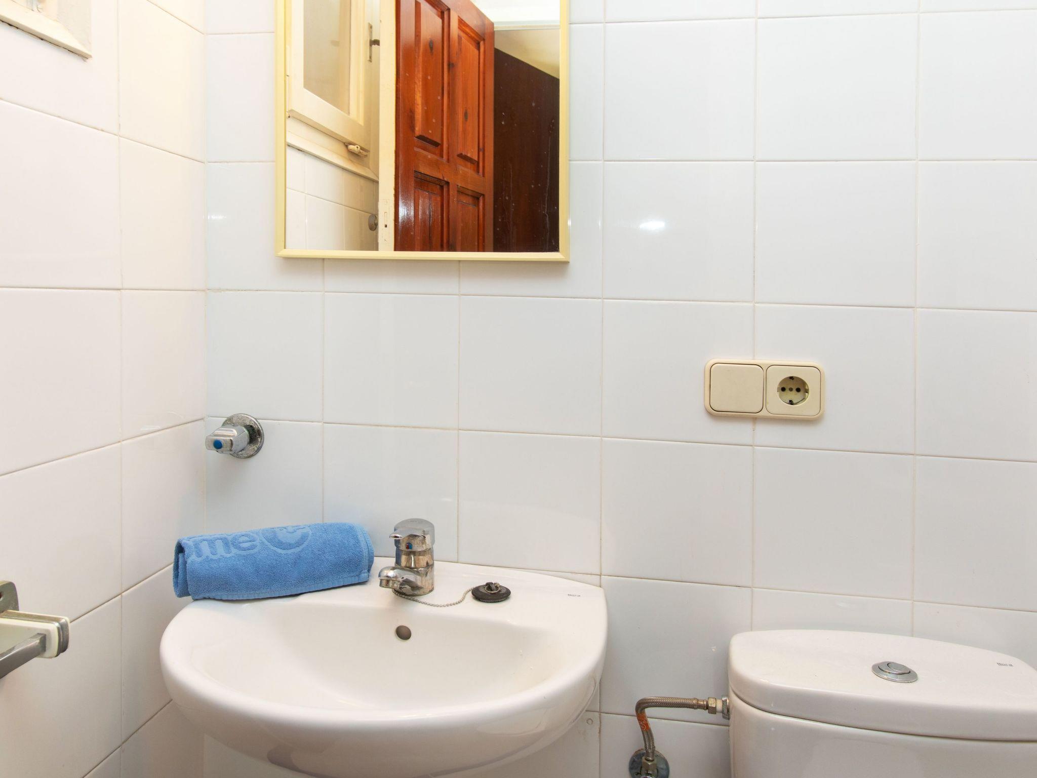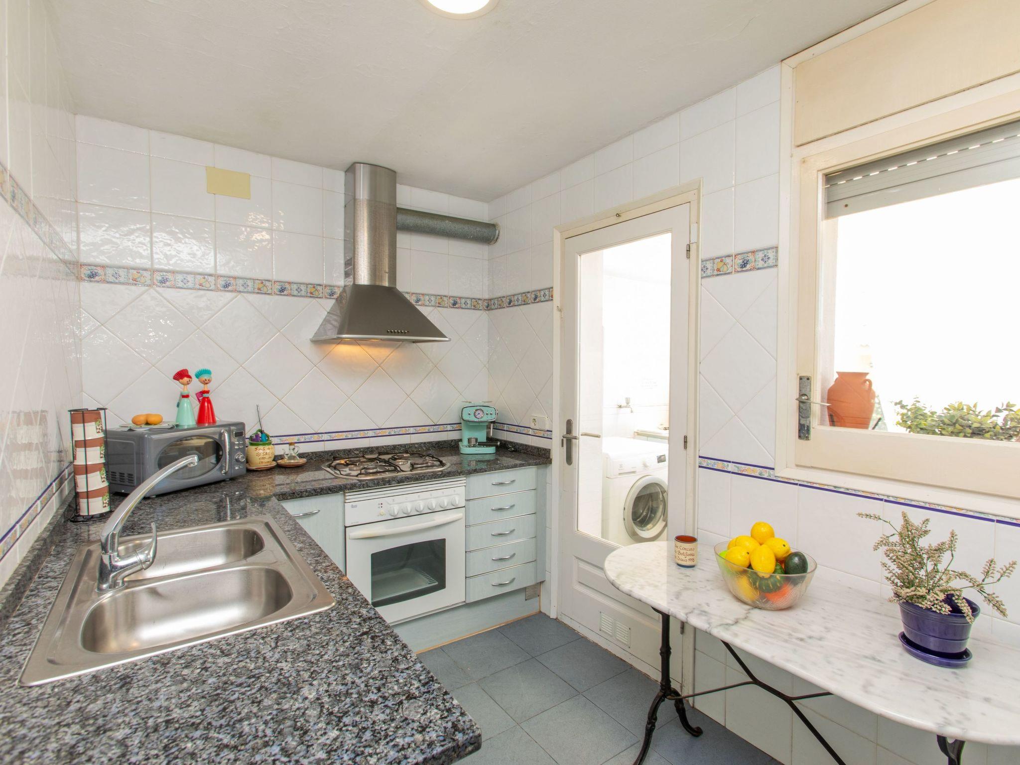 4-room terraced house 80 m2 on 2 levels. Practical furnishings: living/dining room with open-hearth fireplace (only for decoration), dining table, digital TV and flat screen. Exit to the patio. Kitchen (4 hot plates, oven, toaster, kettle, microwave, freezer, electric coffee machine). Exit to the veranda. Sep. WC. No heating option. Upper floor: 1 room with 1 french bed (150 cm, length 200 cm). Exit to the balcony. 1 room with 2 beds (90 cm, length 190 cm). Exit to the balcony. 1 room with 1 bed (90 cm, length 190 cm). Shower/bidet/WC. Boiler (50 litres). Patio. Terrace furniture. Facilities: washing machine, iron, hair dryer. Internet (WiFi, free). Please note: non-smoking house. TV only ES. HUTG-059184 // Reg. Nr.: ESFCTU00001701000022166400000000000000HUTG-059184-672