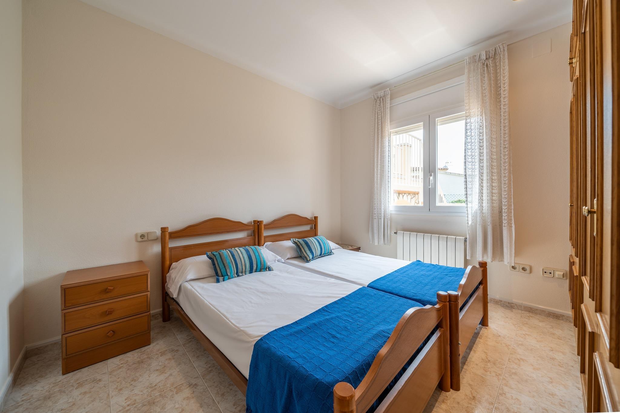 Dette fritliggende feriehus i L’Escala er en rummelig og familievenlig villa med plads til op til otte gæster fordelt på fem soveværelser. Det omfatter et soveværelse med dobbeltseng, to soveværelser med to enkeltsenge og to enkeltværelser, hvilket gør det ideelt til både store familier og vennegrupper. Villaen tilbyder tre badeværelser - et med bruser og to med badekar. Alle gæster er forsynet med sengelinned og håndklæder. Selvom ejendommen ikke tillader kæledyr, har den rigelig udendørs plads, en privat garage til to biler og rekreative faciliteter såsom et bordtennisbord, fodboldbane, volleyballnet og en bærbar grill. Denne charmerende villa ligger kun fem minutters gang fra sandstranden ved Riells-stranden, med en bred vifte af nærliggende attraktioner, herunder barer, restauranter, souvenirbutikker og et supermarked. Gæsterne kan også nå det historiske centrum af L’Escala til fods på cirka 30 minutter. For naturelskere ligger naturparken Montgrí inden for gåafstand og tilbyder rolige skovstier og naturskønne udsigter. Beliggenheden skaber en perfekt balance mellem strandliv, bekvemmelighed og udendørs eventyr. Yderligere faciliteter inkluderer et fuldt udstyret køkken med de vigtigste apparater og køkkenredskaber, rummelige indendørs opholdsområder og store terrasser, der er ideelle til udendørs spisning. Villaen har også aircondition og tilbyder gratis Wi-Fi. Slutrengøring er obligatorisk, og der opkræves en turistskat. Ekstraudstyr såsom poolhåndklæder, en barneseng eller en højstol kan arrangeres mod et ekstra gebyr. (Bemærk: Den fælles swimmingpool er udelukkende tilgængelig i juli og august.)
