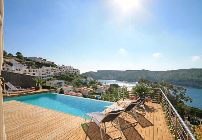 Luxury villa in L`Escala with amazing sea views, private pool and garden. This unique villa with the best finishes is situated in Cala Montgo, a privileged place in the Costa Brava, surrounded by ancient cultures and landscapes of great beauty. The area offers a great opportunity to spend your vacation surrounded by nature and unforgettable views. The beach of Cala Montgo is sandy and very shallow, it is ideal for kids! Hiking, biking, water sports and fishing - the area has everything, you choose!