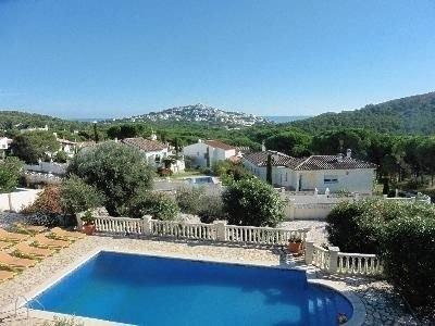 Haus GIRASOLLizenznummer: HUTG - 023 395 Das exclusive Ferienhaus liegt in dem ruhigen Wohngebiet "Puig Sec". Parkplätze für 2 Fahrzeuge befinden sich direkt auf dem Grundstück. Die wunderschönen Strände in Riells und Montgó sind rund 600 m vom Haus entfernt. Das Haus mit 195 qm Wohnfläche ist in zwei Ebenen aufgeteilt. Das Haus wurde 2003 neu gebaut. Im Erdgeschoss befinden sich ein Lesezimmer, ein 50qm Wohn- und Esszimmer mit Kamin sowie eine vollausgestattete offene Einbau Küche ( Ceranfeld, Abzugshaube, Umluft-Ofen, Mikrowelle, Geschirrspüler und Kühlschrank). Desweiteren sind hier 1 Doppelschlafzimmer mit Balkon und eigenem Bad mit Badewanne, ein weiteres Doppelschlafzimmer, ein Badezimmer sowie ein Hauswirtschaftsraum mit Waschmaschine und Trockner. Im Untergeschoss befinden sich 3 Doppelschlafzimmer, zwei Badezimmer und eine Bar mit direktem Zugang in den Garten und zum Pool. Das Haus ist im Erdgeschoss mit Klimaanlagen ausgestattet Das Haus hat eine neue Zentral-Heizung und kann somit auch ganzjährig gemietet werden.