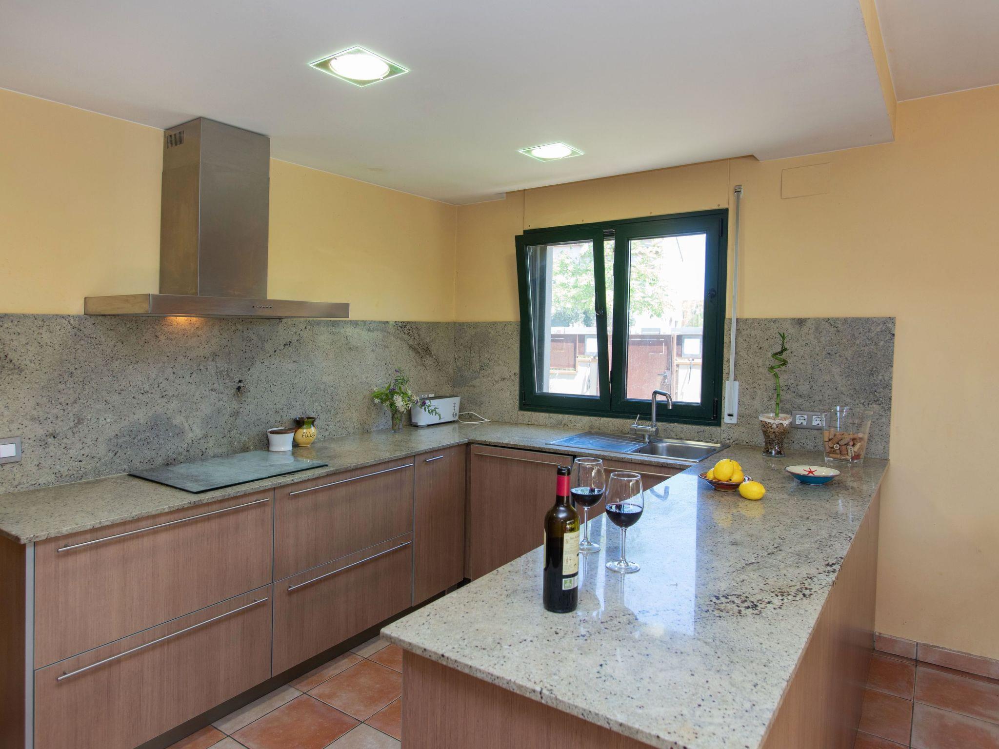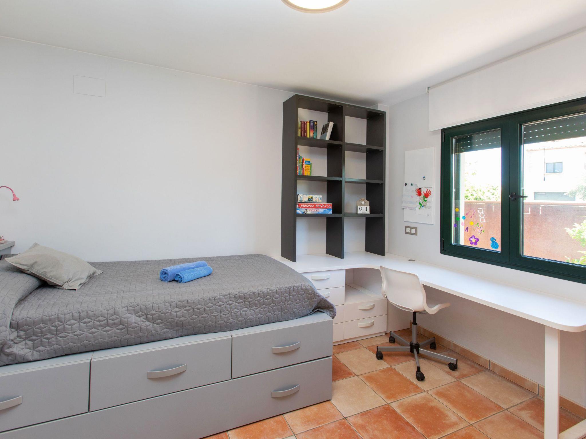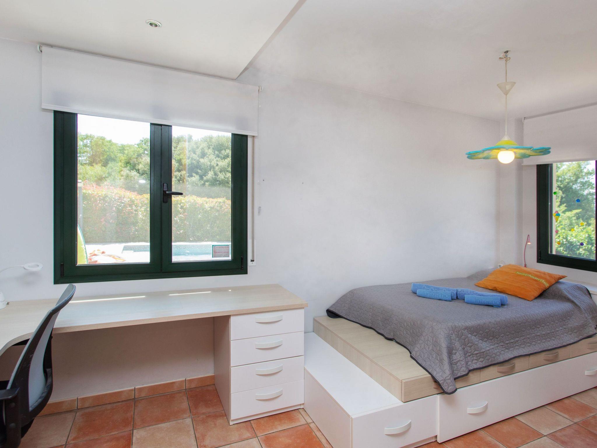 "Ullastreta", 5-room house 140 m2, lower ground floor. Living/dining room with digital TV and air conditioning. Exit to the patio, to the swimming pool. 2 rooms, each room with 2 beds (90 cm, length 190 cm), fan. 1 room with 1 french bed (150 cm, length 200 cm), fan. 1 room with 1 french bed (150 cm, length 200 cm), bath/WC and fan. Kitchen (oven, dishwasher, 3 induction hot plates, toaster, kettle, microwave, freezer, grill, electric coffee machine). Shower/WC. No heating option. Porch. Terrace furniture, deck chairs. Distant view of the mountains and the countryside. Facilities: washing machine, iron, children's high chair, baby cot for up to 2 year olds, hair dryer. Internet (WiFi, free). Please note: maximum 1 pet/ dog allowed. TV only ES. In the two bedrooms with 2 single beds, the upper bed is 105x190 and the lower trundle bed is 90x190. HUTG-063189 // Reg. Nr.: ESFCTU00001700700054794800000000000000000HUTG-0631890