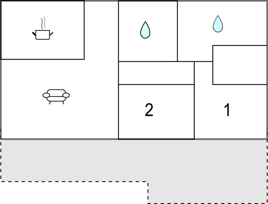 Badeværelse 6m2 (nr. 1) - WC. Varmt og koldt vand. Bruser