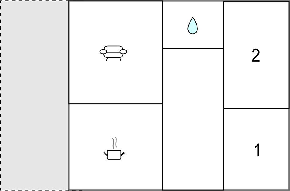 Opholdsstue - 2 Sovepladser. (Sofa, madras eller lignende).