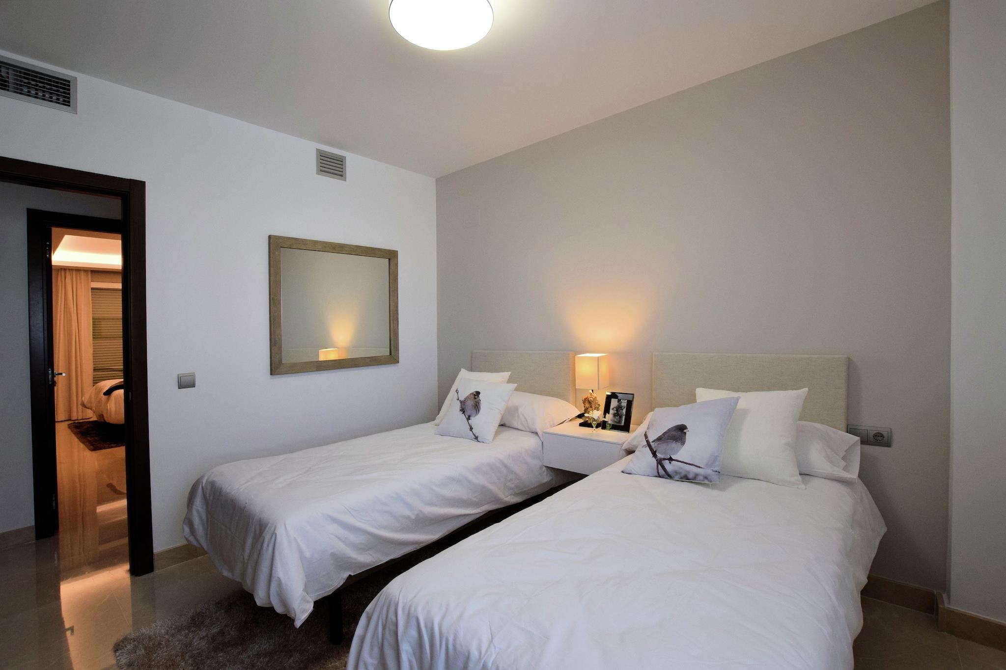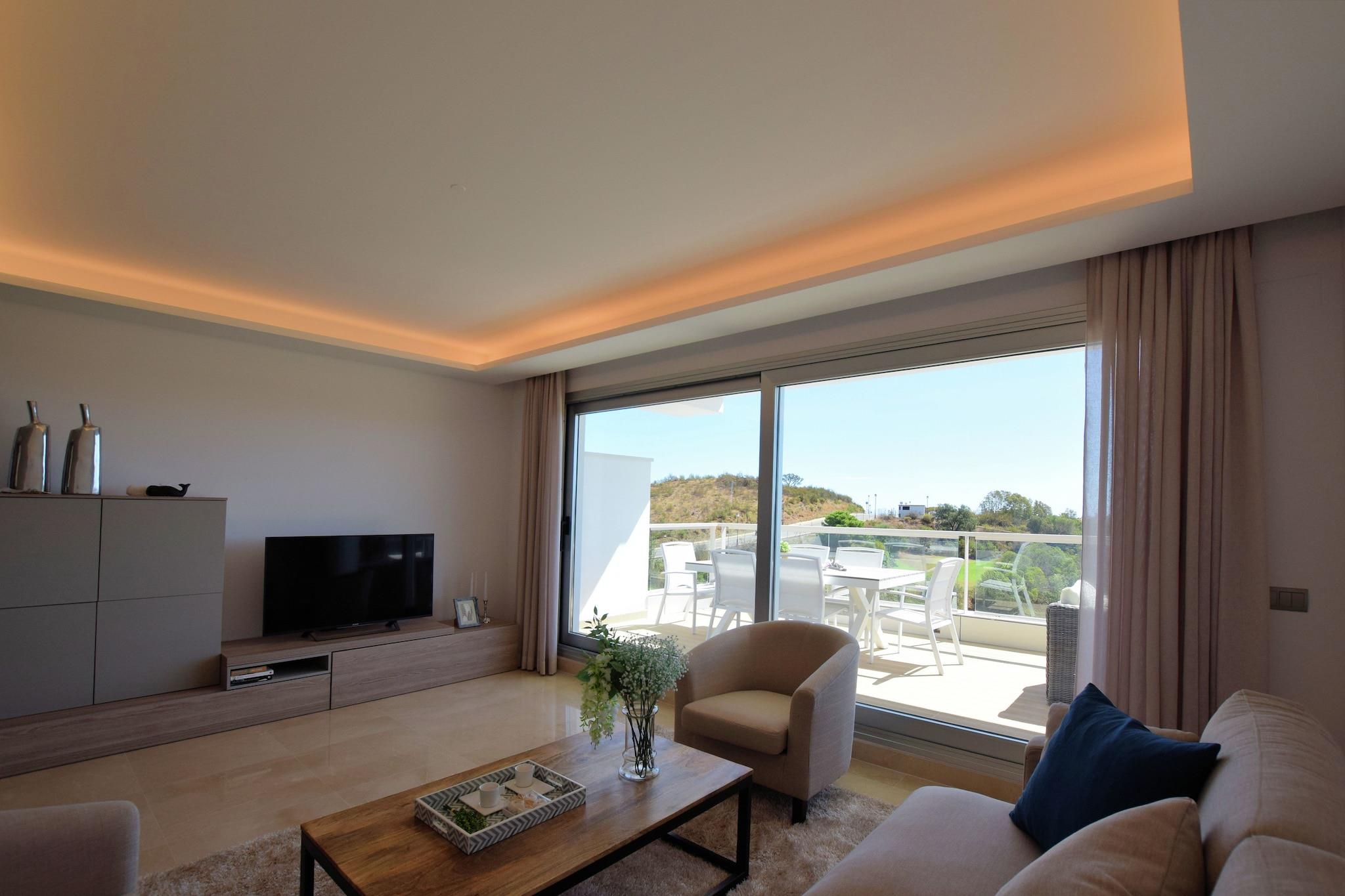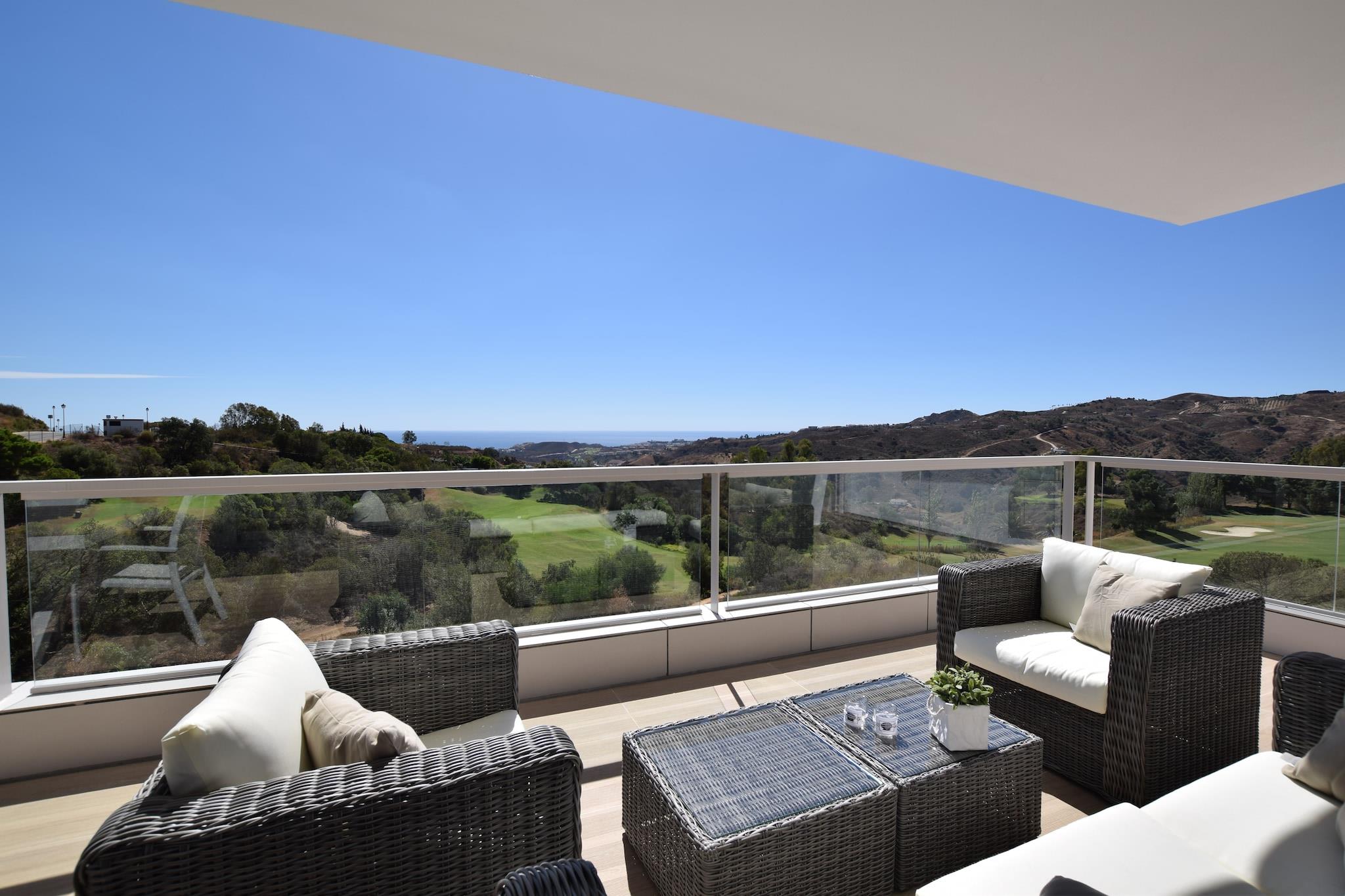 Klar til en luksusferie i en fredelig oase på Costa del Sol? Dette moderne feriehus, beliggende i et sikkert kompleks, tilbyder adgang til en fælles pool, sauna og fitnesscenter - perfekt til afslapning og foryngelse. Fra den rummelige terrasse kan du nyde en fantastisk udsigt over golfbanen og det glitrende hav, start hver dag med stil. Ideel til familier, par eller grupper af venner, dette golfspillerparadis tilbyder komfortabel og stilfuld indkvartering. Beliggende mellem den naturlige skønhed i Sierra de Mijas og Middelhavet, er ejendommen omgivet af tre prestigefyldte golfbaner i La Cala de Mijas. Beliggende mellem Málaga og Marbella, er det kun en bekvem 25-minutters kørsel fra lufthavnen. Den åbne planløsning har et elegant, fuldt udstyret køkken, der har udsigt over den lyse stue gennem glasskydedøre, der problemfrit forbinder til den sydvendte terrasse. Hvert soveværelse har sit eget badeværelse med rummelige walk-in brusere for ekstra komfort. Efter en dag på de smukke golfbaner eller udforskning af regionen kan du slappe af i wellness-området eller tage en dukkert i poolen. For nemheds skyld er sikker parkering tilgængelig under bygningen, hvilket gør dette hjem til en ideel base for en uforglemmelig ferie på Costa del Sol.