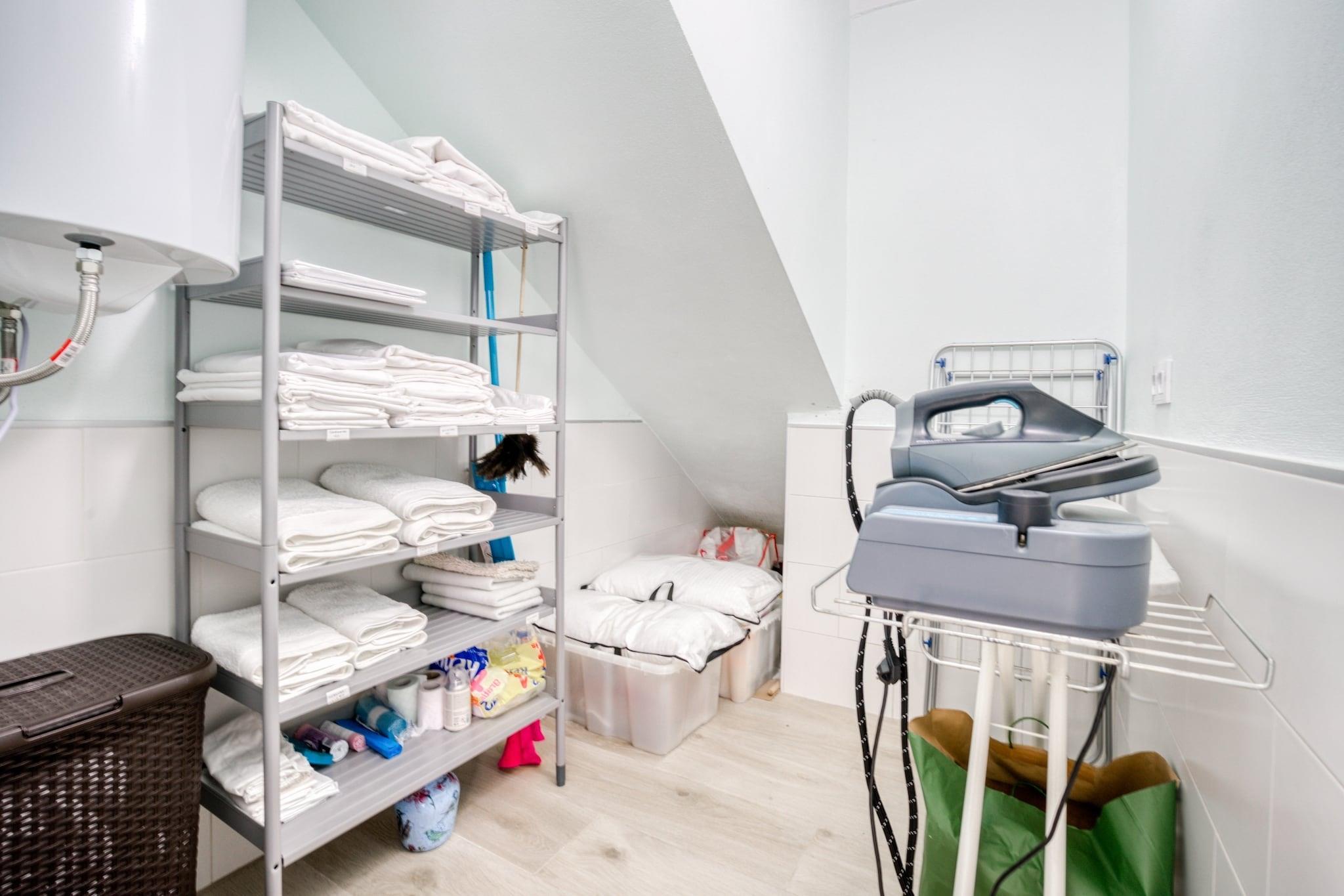 Stueetage: (Indgang , Køkken(spisebord, komfur, kaffemaskine, combi-mikroovn, vaskemaskine), stue / spisestue(spisebord), Soveværelse med badeværelse(dobbeltseng, Fjernsyn, badekar eller bruser, toilet), Soveværelse med badeværelse(dobbeltseng, Fjernsyn, badekar eller bruser, toilet), Soveværelse med badeværelse(enkeltseng, enkeltseng, Fjernsyn, badekar eller bruser, toilet), badeværelse(toilet), strygebræt, strygejern, føntørrer) patio, tagterrasse