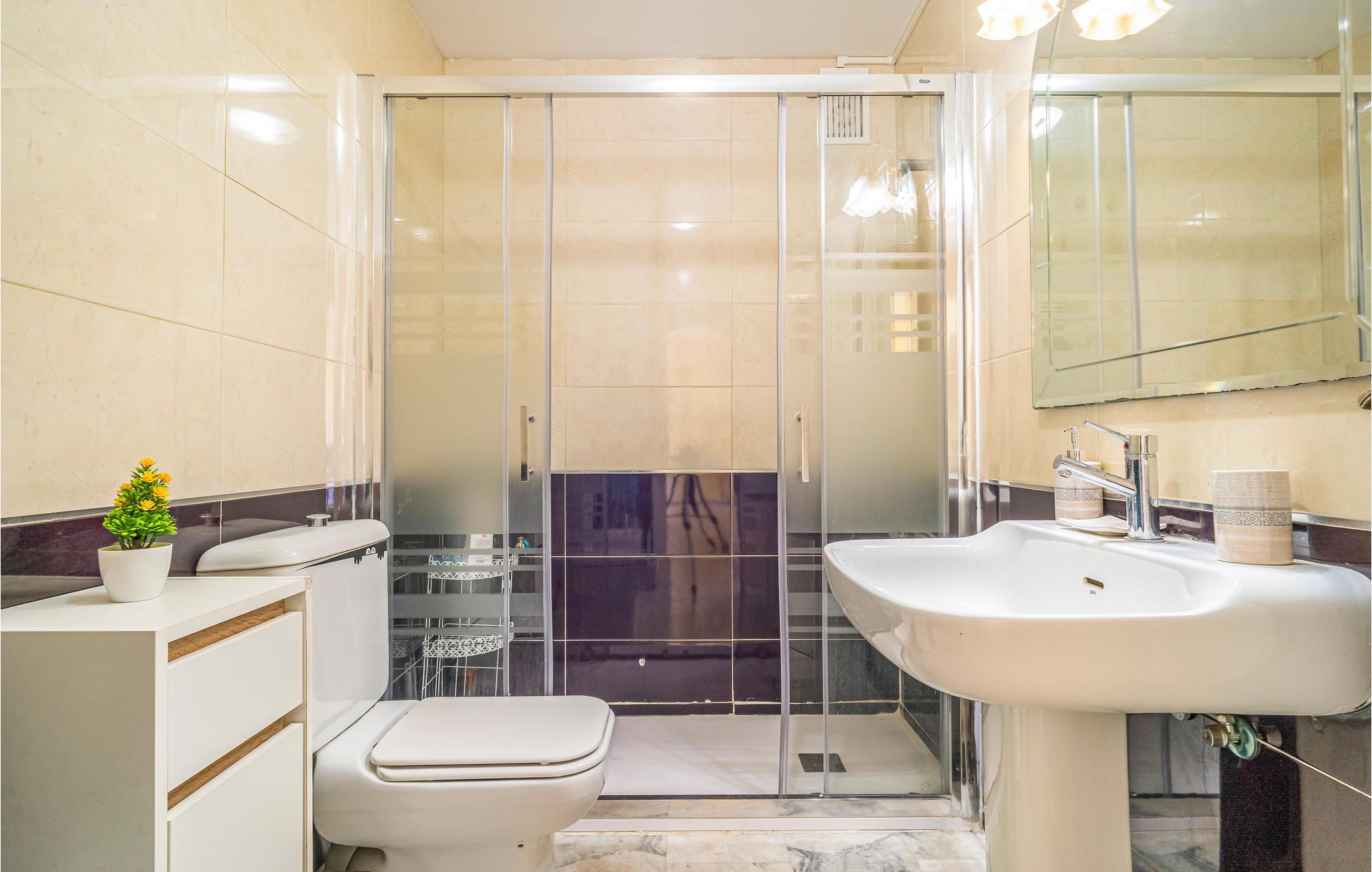 I finder denne lyse ferielejlighed på 2. sal i et lejlighedskompleks, hvor I kan nyde en ubekymret ferie. Her kan I føle jer godt tilpas, for alt, hvad I behøver er tilgængeligt. Nyd jeres morgenmad på balkonen og gå derefter ned til den fælles pool i haven for at få jer en dukkert. Her kan I køle ned først på dagen og plaske rundt i vandet. Efter en kort pause kan I gå de få hundrede meter ned til stranden.