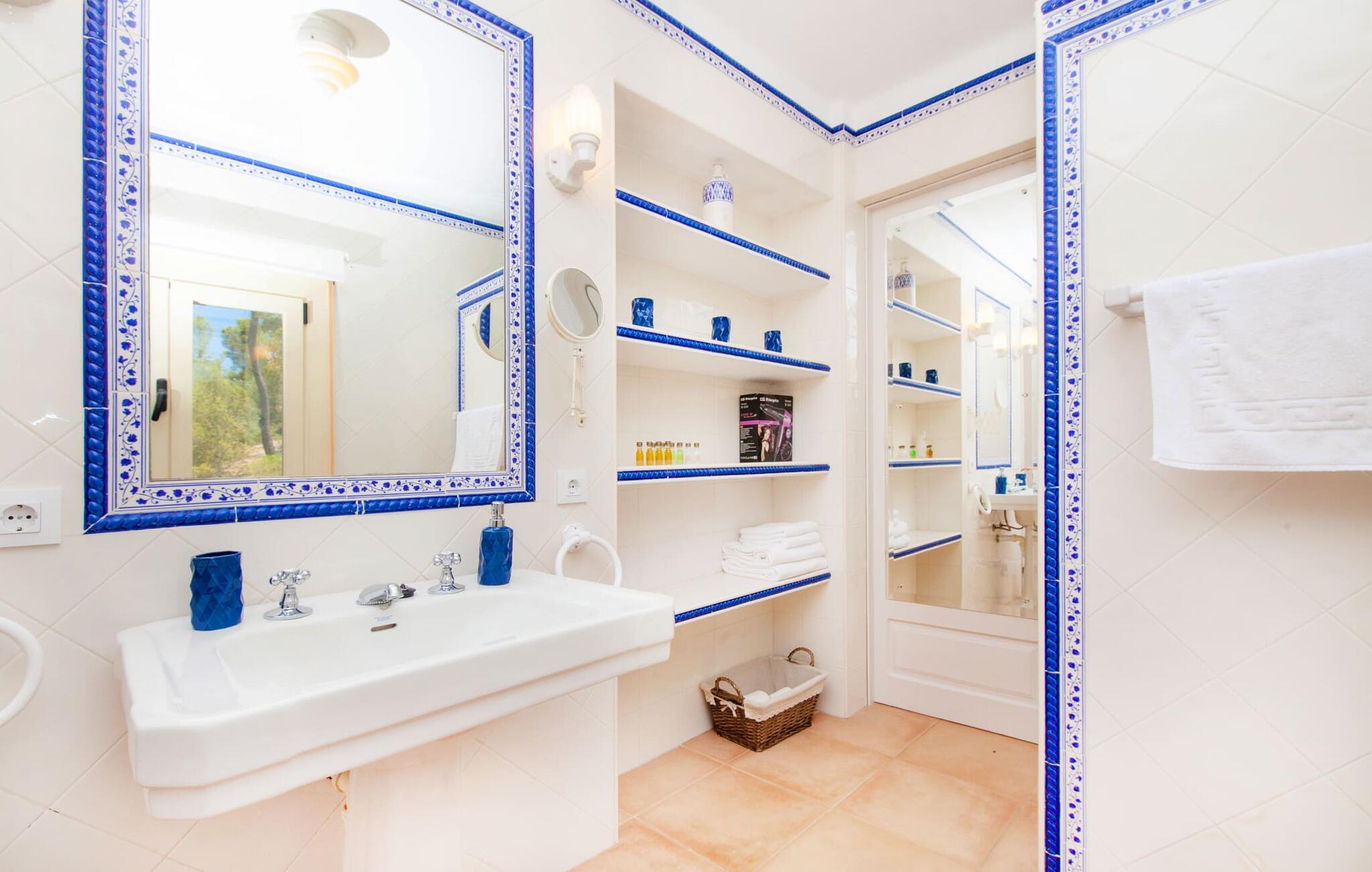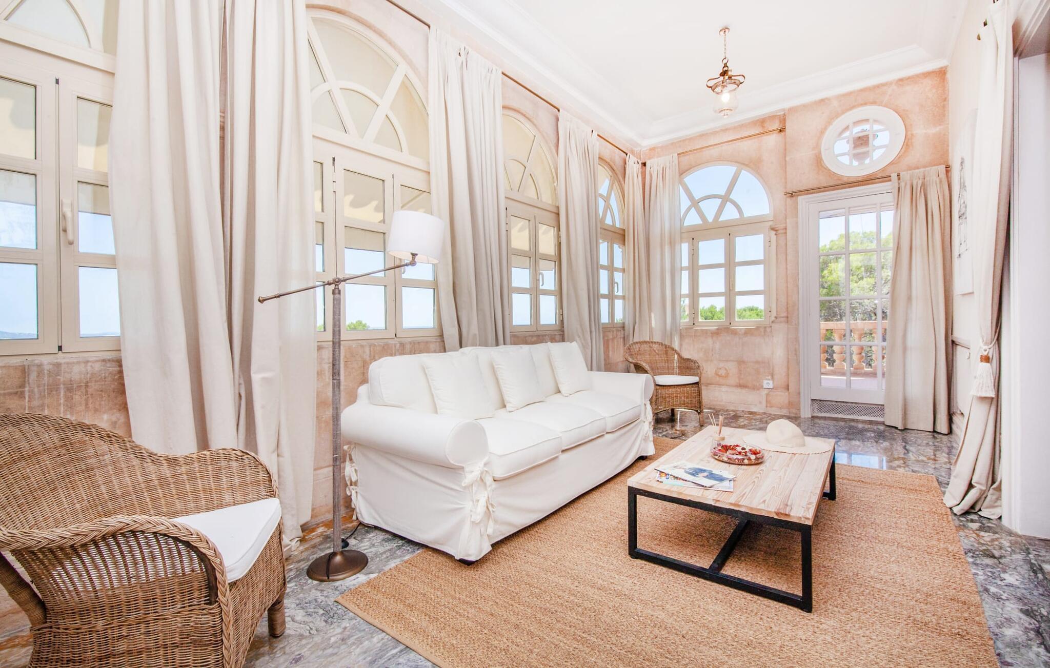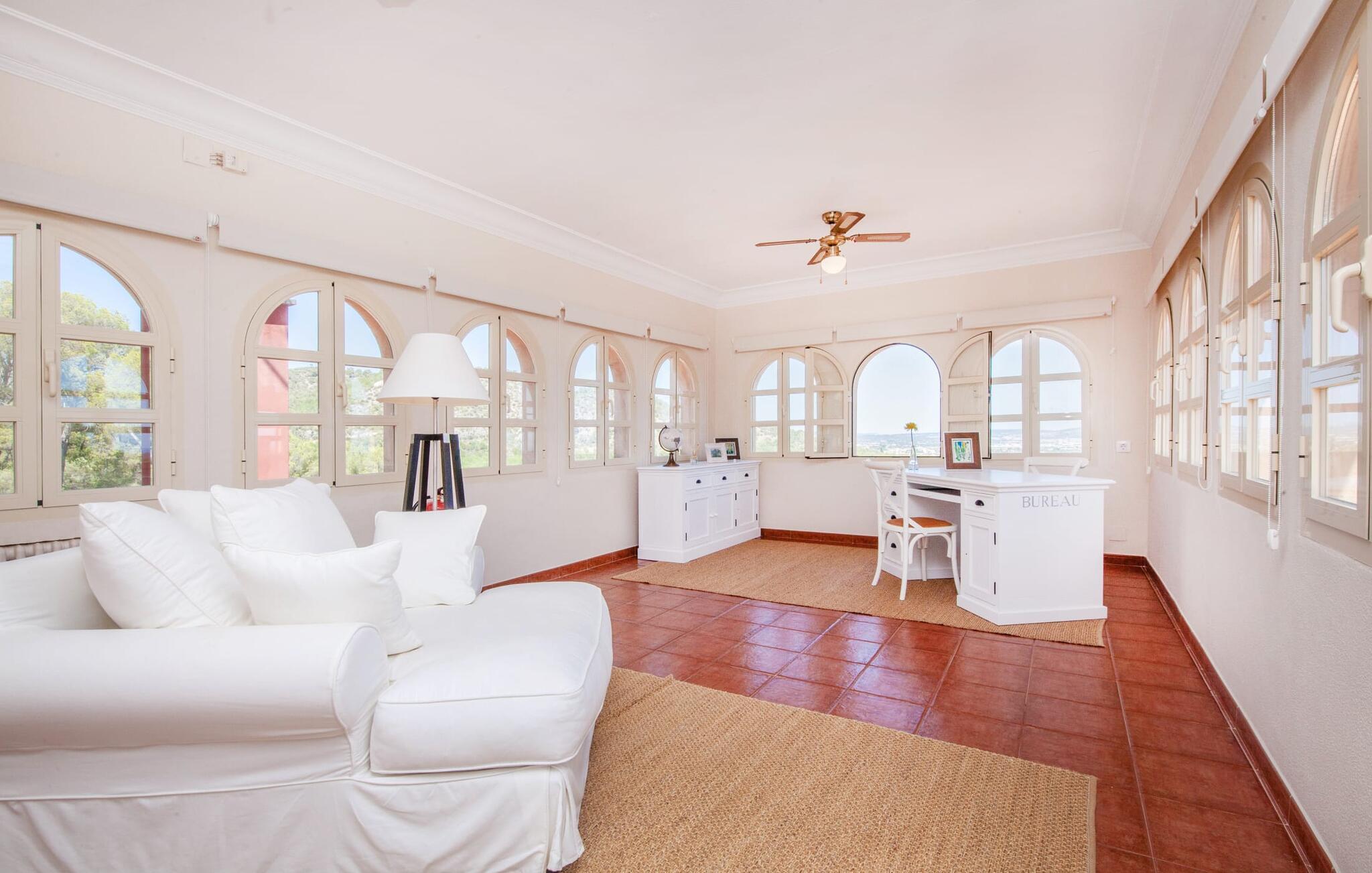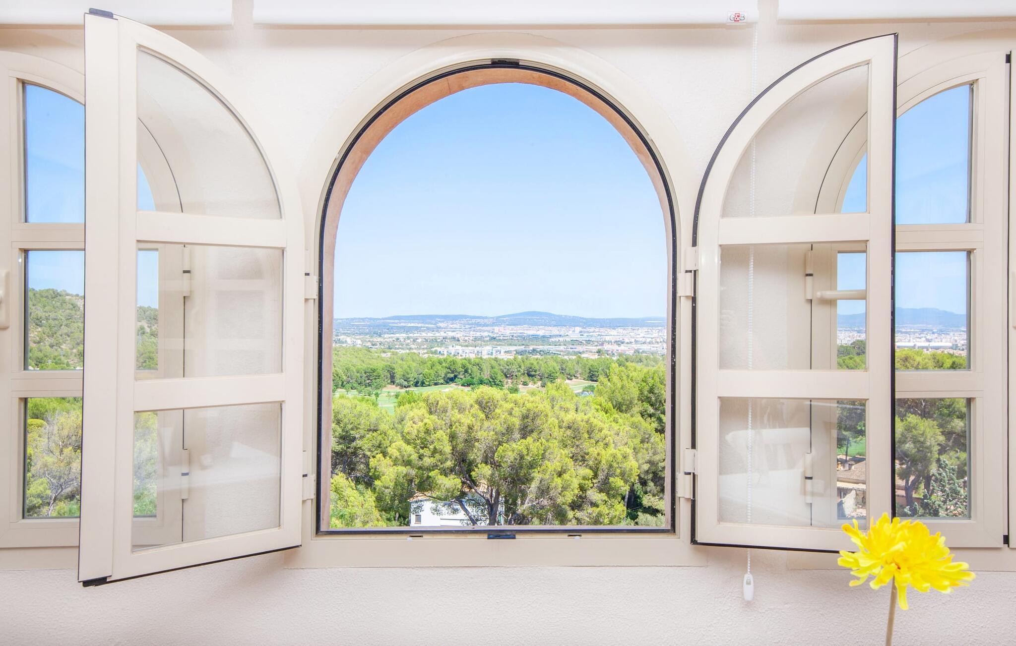 På trods af sin nærhed til øens hovedstad Palma, tilbyder villaen “La casa de las Vistas” jer et vidunderligt naturligt Eldorado lige uden for døren: Det parklignende udendørsområde, som har mange højdepunkter, er et ægte blikfang på 7.000 m². Rejsende med sportslige ambitioner kan slippe dampen af på den interne tennisbane. Eller nyd poolens generøse dimensioner, som på 13 x 6 m er mere end blot et sted at køle af. Uanset hvor I sidder i haven, vil udsigten over Palma-bugten altid bidrage til magien ved denne ejendom. Gå en tur langs dammen, hvil ved foden af et stateligt træ, slap af med en drink i skyggen af pergolaen ved siden af poolen, solbad på terrassen – eller forkæl jer selv med kulinariske lækkerier i den lille grillhytte om aftenen. Fordelt på tre etager udstråler husets indre en vidunderlig flair. Fra entréen med sin dekorative vindeltrappe passerer man gennem gamle romerske søjler, som giver stueetagen en åben, lys karakter i de forskellige områder: Stuen med sine to sofaer, den herskabelige pejs og fladskærms-tv er sikker på at sikre endeløse timers komfort. På den anden side af entréen ligger spisepladsen med et aflangt træbord, hvor det komfortabelt og praktisk indrettede køkken er placeret. Her finder I alt, hvad I skal bruge for at fremtrylle en ægte italiensk espresso eller et friskpresset, opkvikkende glas juice. I stueetagen er der også et af dobbeltværelserne med eget badeværelse. Når I går en etage op, kommer I til yderligere to soveværelser, begge med en-suite badeværelser. Et af værelserne har en dobbeltseng, det andet har to enkeltsenge. Disse værelser tilbyder en betagende udsigt over havets skønhed ud for Palma. Men for den bedste udsigt skal I sørge for at besøge det fyrtårnslignende studieværelse på øverste etage, komplet med sofa, skrivebord og masser af vinduer. Etagerne er forbundet via en elevator. Derudover er der aircondition i alle soveværelser, så I kan vågne op og føle jer frisk og frisk hver morgen. Det er beliggende i det smagfulde Son Xigala-distrikt og kun 6 km fra centrum af den pulserende hovedstad. Der er marked om fredagen, hvor der sælges friske delikatesser, men byen byder også på et omfattende program af aktiviteter og seværdigheder hver anden dag. Med dette i tankerne er det en god ting, at villaen ligger i et vidunderligt roligt område, da det betyder, at jeres bolig står klar til at tilbyde jer noget tiltrængt ro efter en dag i de travle gader. Dette burde bestemt være muligt på en af de fremragende sandstrande. Sant Agusti, 7 km væk, er et vigtigt centrum for sejlere. På et malerisk tog, det legendariske "Red Flash", rejser I langs de smukke landskaber og bjerge til Sóller, hvor spektakulære vandrestier fører jer ud i naturen. Deià, Valldemossa og de mauriske "Jardines de Alfabia" er mulige udflugtsmål at udforske i denne smukke region på Mallorca. Fincaen "La casa de las Vistas" byder på en fantastisk udsigt over det smukke omkringliggende landskab: 6 km til centrum af Palma, 30 km til den idylliske by Sóller i Tramuntana-bjergene. I kan svinge jeres golfkølle direkte på en af de tre golfbaner i umiddelbar nærhed: "Son Quint", "Son Vida" og "Son Muntaner". Eller I kan besøge de lettilgængelige strande som Platja de Can Pere Antoni med sin palmepromenade for en lang dag med svømning.