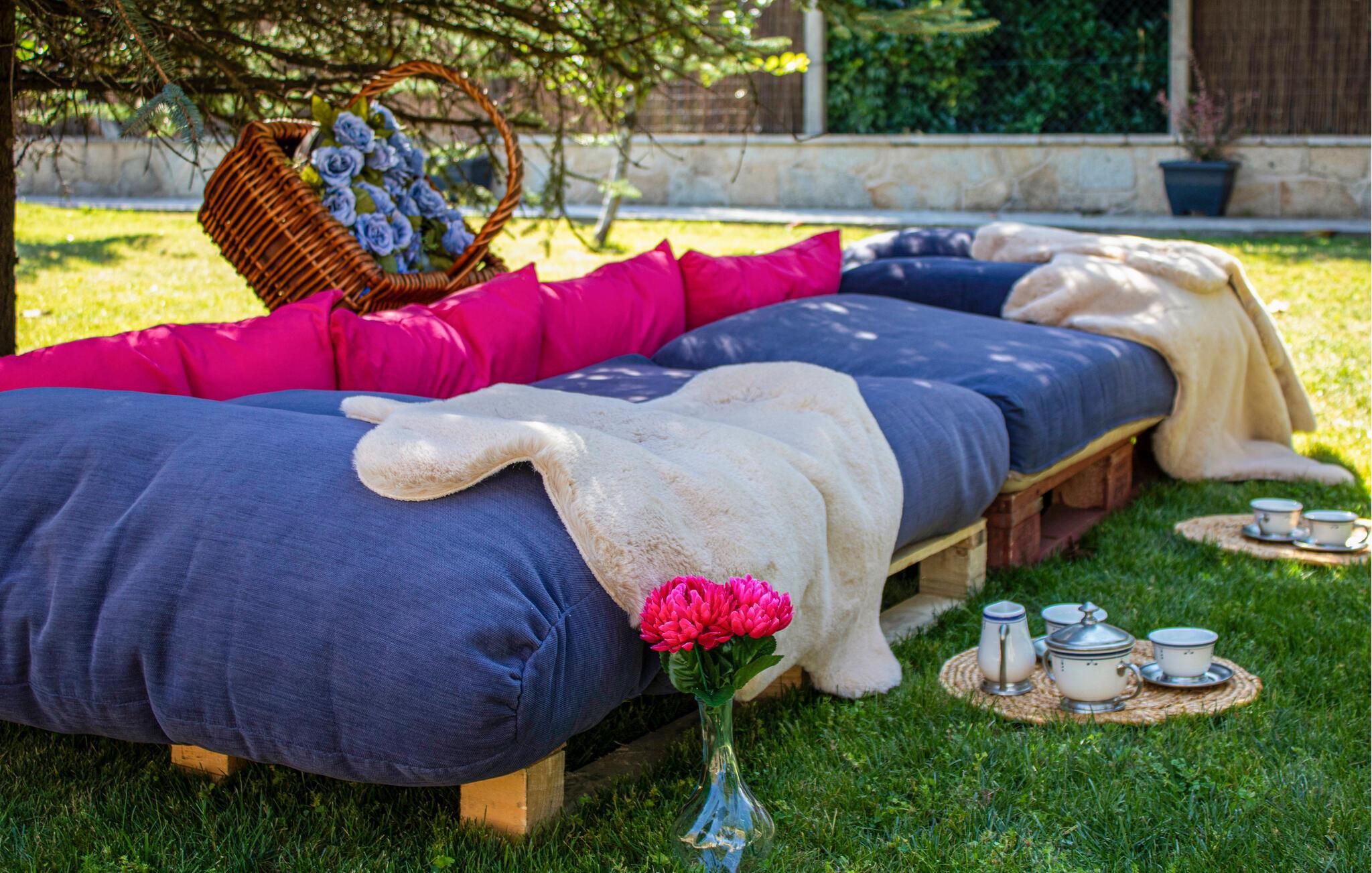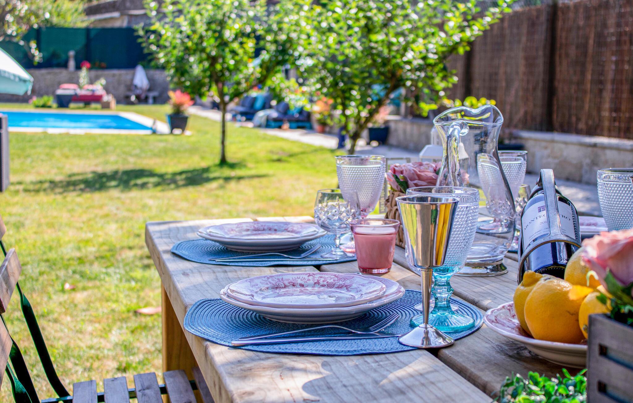 Udenfor er der en romantisk have med hyggelige skyggefulde pletter og en skøn pool. Gå barfodet til jeres yndlingssted, lad børnene organisere en picnic på den rummelige græsplæne og fejr tiden sammen med stemningsfulde måltider i det fri.