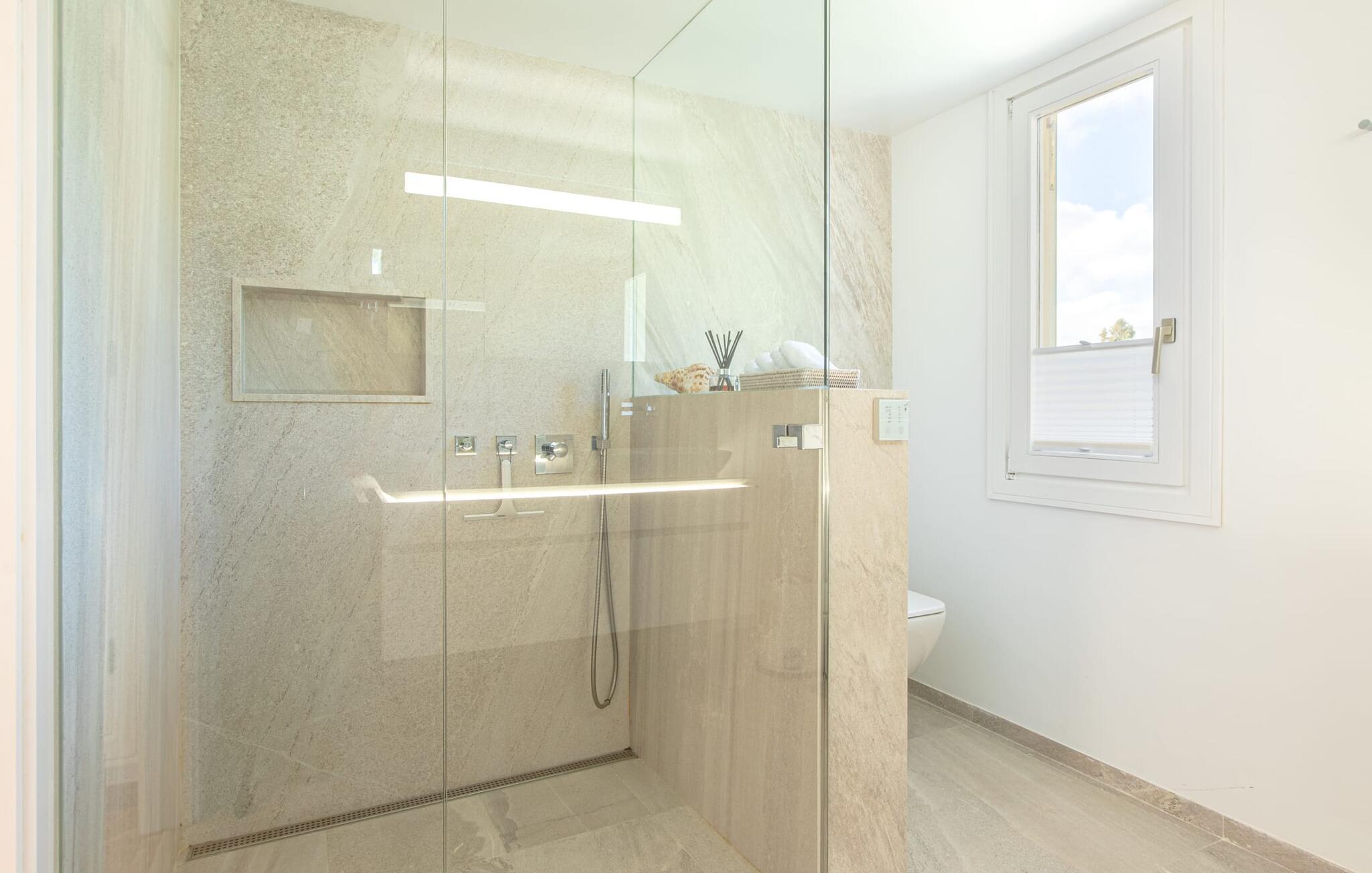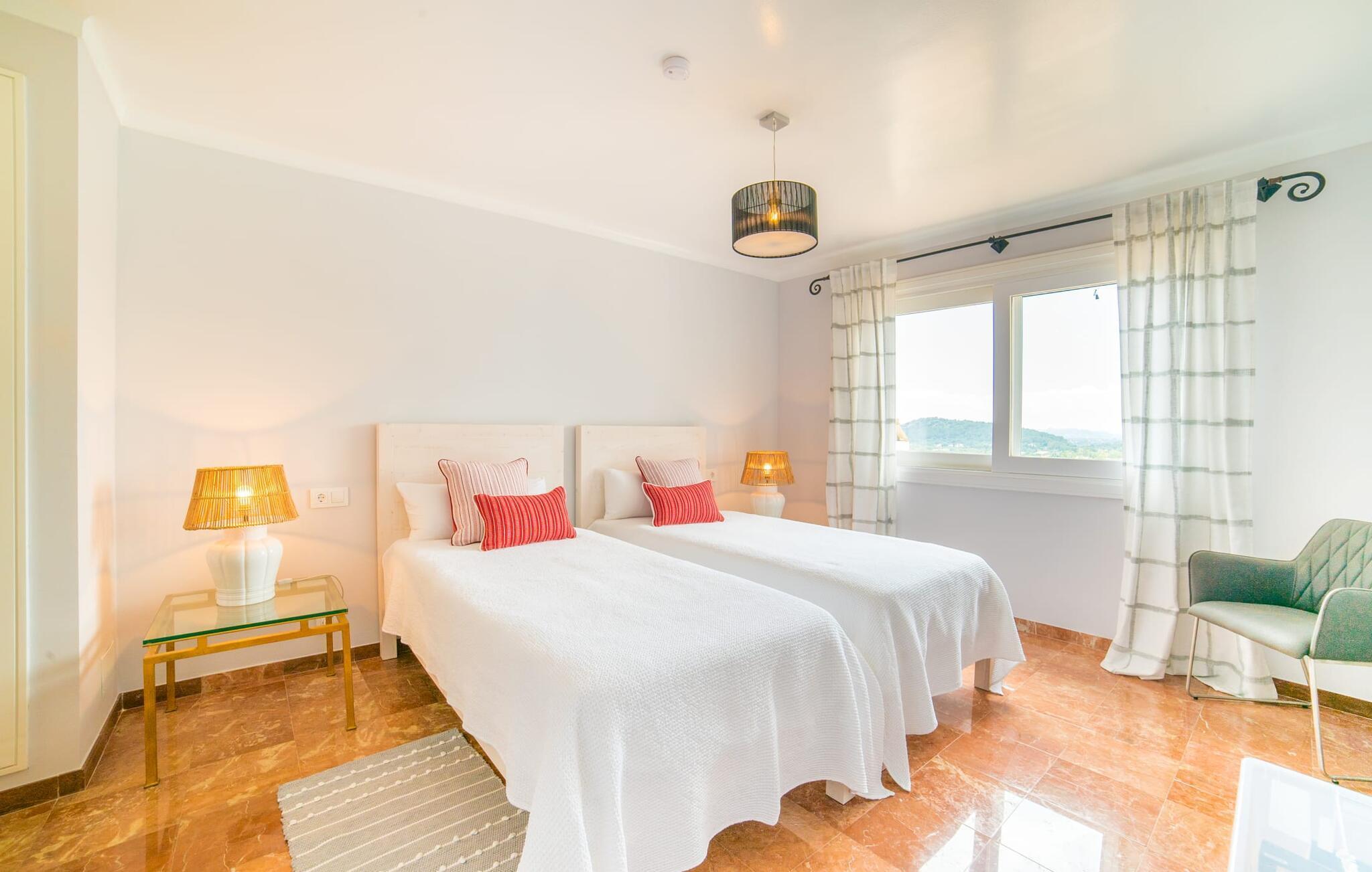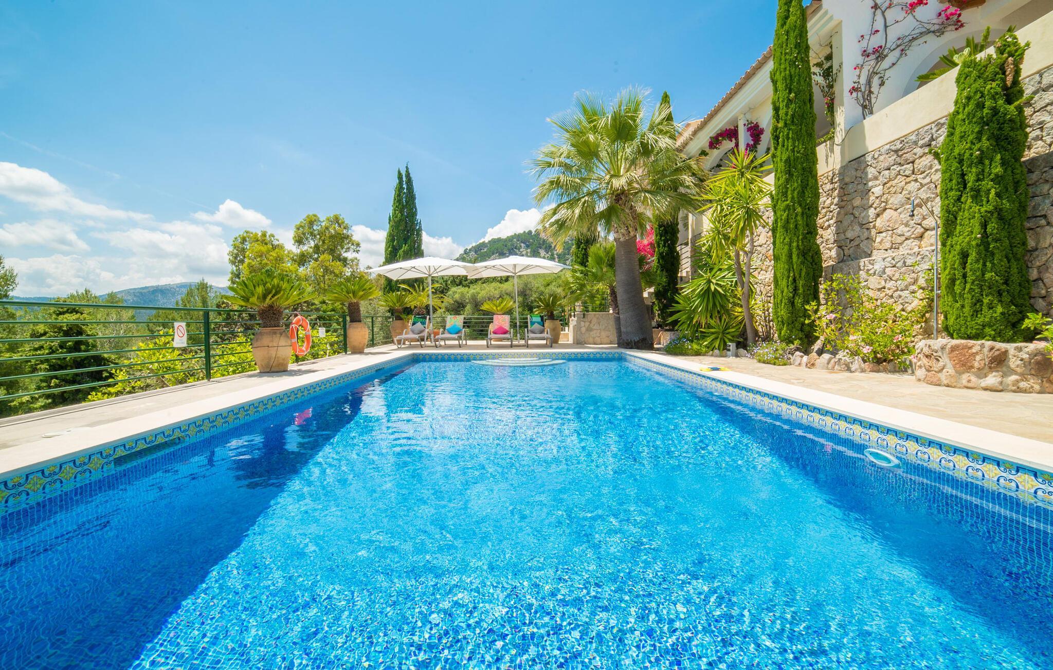 Villaen "La Font de la Liebre", renoveret i 2018, imponerer med sin velholdte atmosfære, førsteklasses indretning og en vidunderlig beliggenhed på en bjergskråning, kun omkring 2,2 km fra Pollença. Fra huset og terrasseområdet nyder du ikke blot en enestående udsigt over det typiske middelhavslandskab, der omgiver ejendommen, men du kan også lade blikket vandre over grønne bakker, byen Pollença og det glitrende turkisblå hav i det fjerne. Med sine mange attraktive buer, store overdækkede og solrige terrasseområder og altaner, der pryder to af de i alt fire soveværelser, tilbyder denne to-etagers ejendom de besøgende masser af plads og mange hyggelige værelser, der kan findes i hele haven i flere niveauer, de forskellige sektioner hvoraf har trin lavet af natursten er forbundet med hinanden. Lige under huset kan du tage en dukkert i poolen, dekoreret med smukke små fliser og omgivet af middelhavsplanter i dekorative terracotta-krukker. Efter dit bad kan du finde dig tilpas på en af de komfortable liggestole med en lækker drink og nyde den vidunderlige udsigt og den søde følelse af at lave ingenting. Meget praktisk: Elevatoren fører direkte fra (dobbelt)garagen til stueetagen. Det ydre på “La Font de la Liebre” er et sandt blikfang – og det gælder også, når du træder ind i huset. Udover den autentiske, stilrene og højkvalitets indretning, en blanding af gammelt og nyt, imponerer huset med sin rummelige planløsning og rummenes rummelige, åbne design. Et storslået stengulv, kombineret med lysegrå vægge og sofistikeret loftsbelysning, bidrager til husets atmosfære. I stueetagen er der ikke kun et badeværelse, men også en kæmpe stue med to lige komfortable sofaer, en smuk pejs og en stenbænk dekoreret med mange typiske mallorcanske hynder - perfekt til lange ferieaftener tilbragt i selskab med venner og familie . Fine tæpper og imponerende malerier på væggene supplerer perfekt den elegante atmosfære. Lige ved siden af, i det store hvide køkken i landlig stil, kan du arbejde efter hjertens lyst - der er mere end nok plads til kulinariske eksperimenter med mange forskellige gryder, pander og andre redskaber. Du kan så servere dine kreationer direkte ved det store spisebord i træ, som også er placeret i køkkenet. For at sove kan du trække dig tilbage til et af de fire soveværelser på første sal, som alle er smagfuldt indrettet med udvalgte pynteting og komfortable senge. For nemheds skyld har alle ulasteligt smarte badeværelser en suite. Dit sommerhus ligger midt i et smukt, typisk middelhavslandskab i det frodige grønne nord på øen - fra din villa kan du ikke bare nyde en fantastisk udsigt, men også udforske den omkringliggende natur, det være sig på vandreture eller lange gåture . Til shopping og lange gåture gennem byen - for det er virkelig det værd - skal du bare køre 2,2 km til Pollença. Den gamle bydel er velsignet med charmerende små sidegader, mange håndværksbutikker, små butikker og indbydende caféer og restauranter. Byen scorer ikke kun med en masse flair, men også med adskillige seværdigheder såsom Pont Roma, byens historiske bro, Puig de Maria-bakken eller Golgata, hvis top kun kan nås ved at bestige et 365-trin trappe overvinder. Men glem ikke de smukke strande, som kun ligger omkring 7 km fra din villa. Eksempler på dette er den rolige strand Cala Clara og den hvide sandstrand Platja de Port de Pollença. En smuk, elegant villa med en guddommelig udsigt til både de grønne bjerge og det forførende flimrende hav i det fjerne - alt dette og mere venter dig på La Font de la Liebre. Det bemærkelsesværdigt velholdte hus ligger 2,2 km fra byen Pollença på en ejendom opdelt i forskellige niveauer. Smukke naturstentrapper med mange hyggelige siddepladser lokker, ligesom den plane pool med solterrasse - og den nærmeste strand ligger kun omkring 6,6 km væk. Dette er et Fincallorca feriehus.