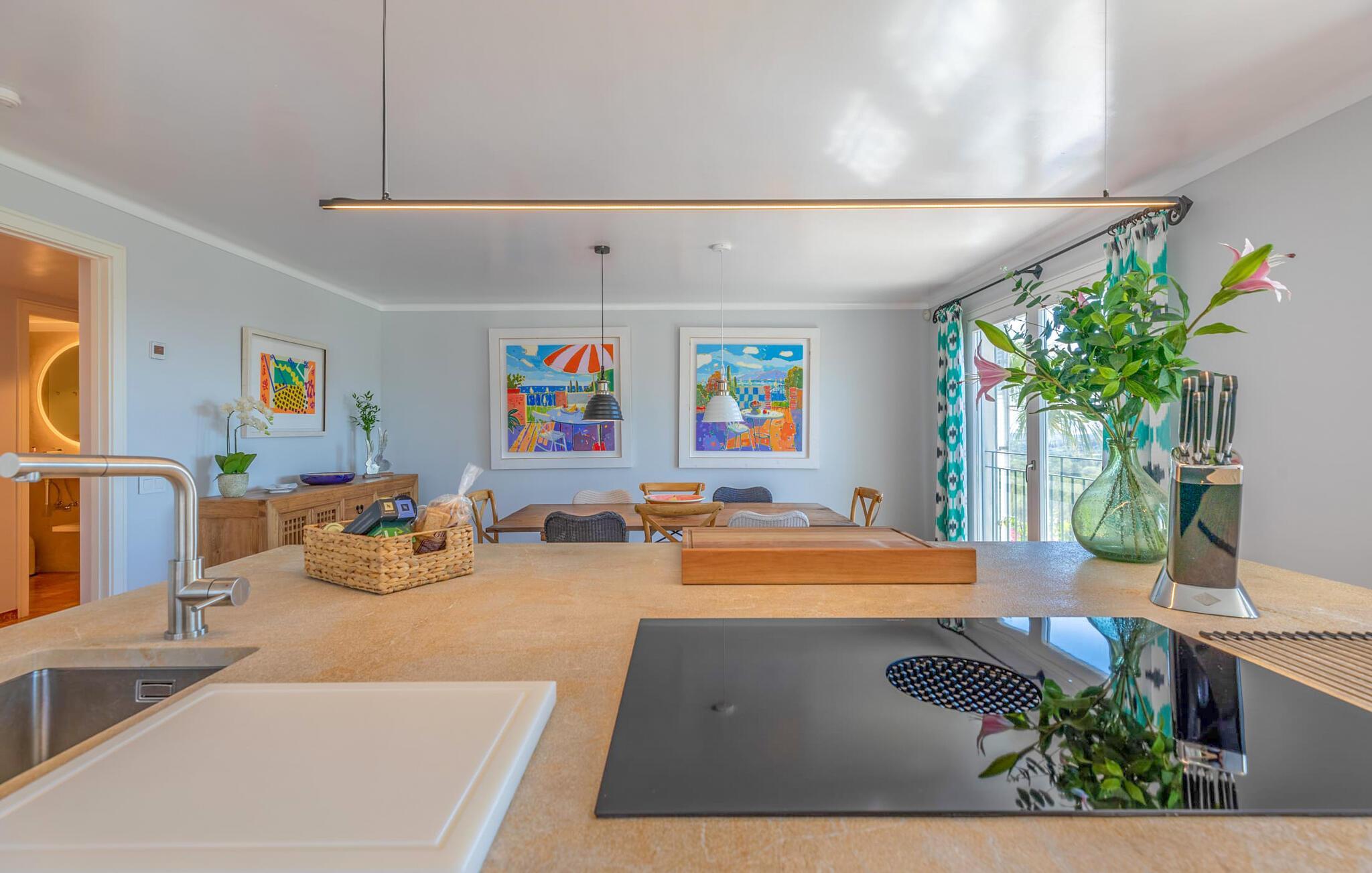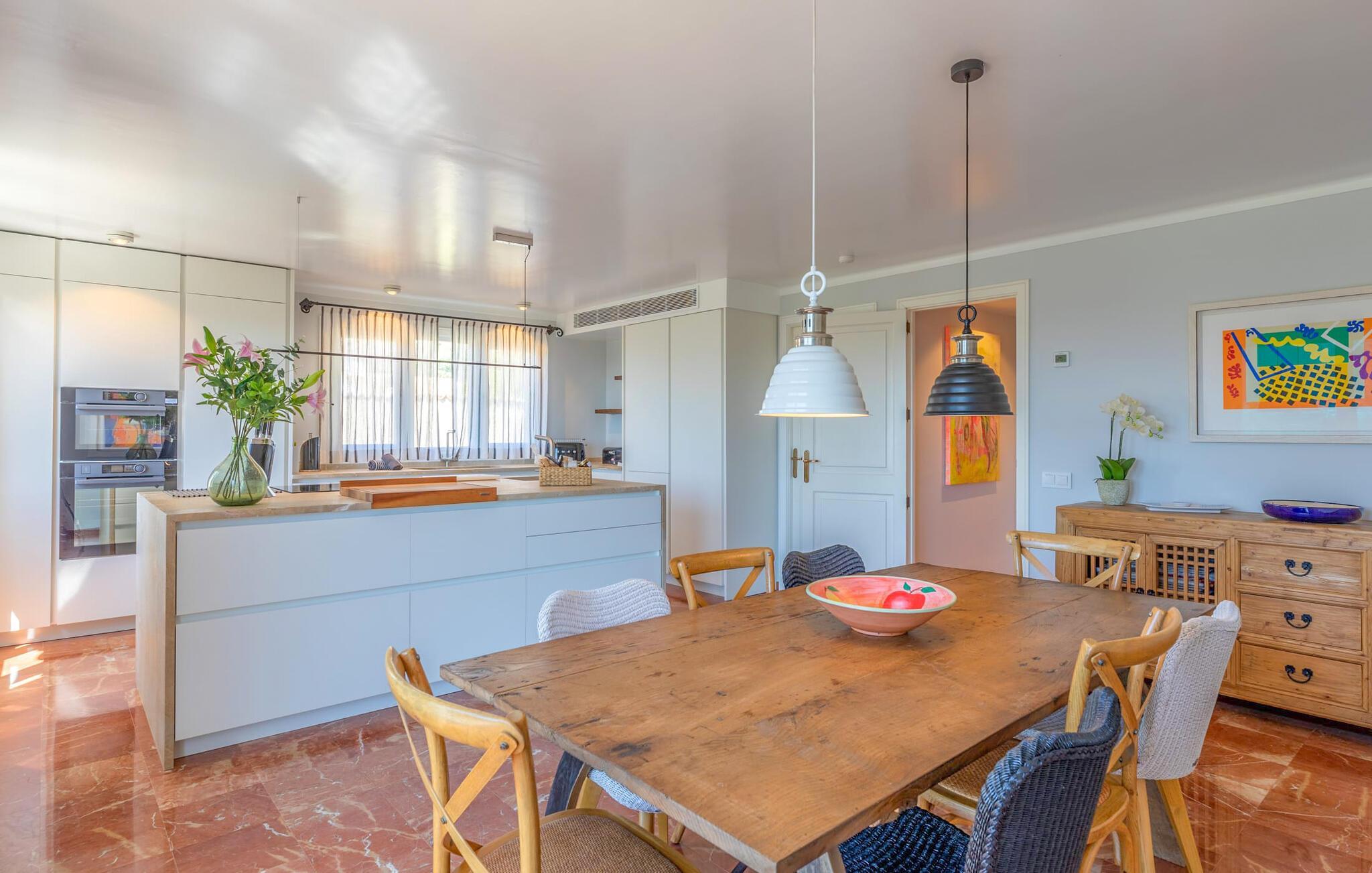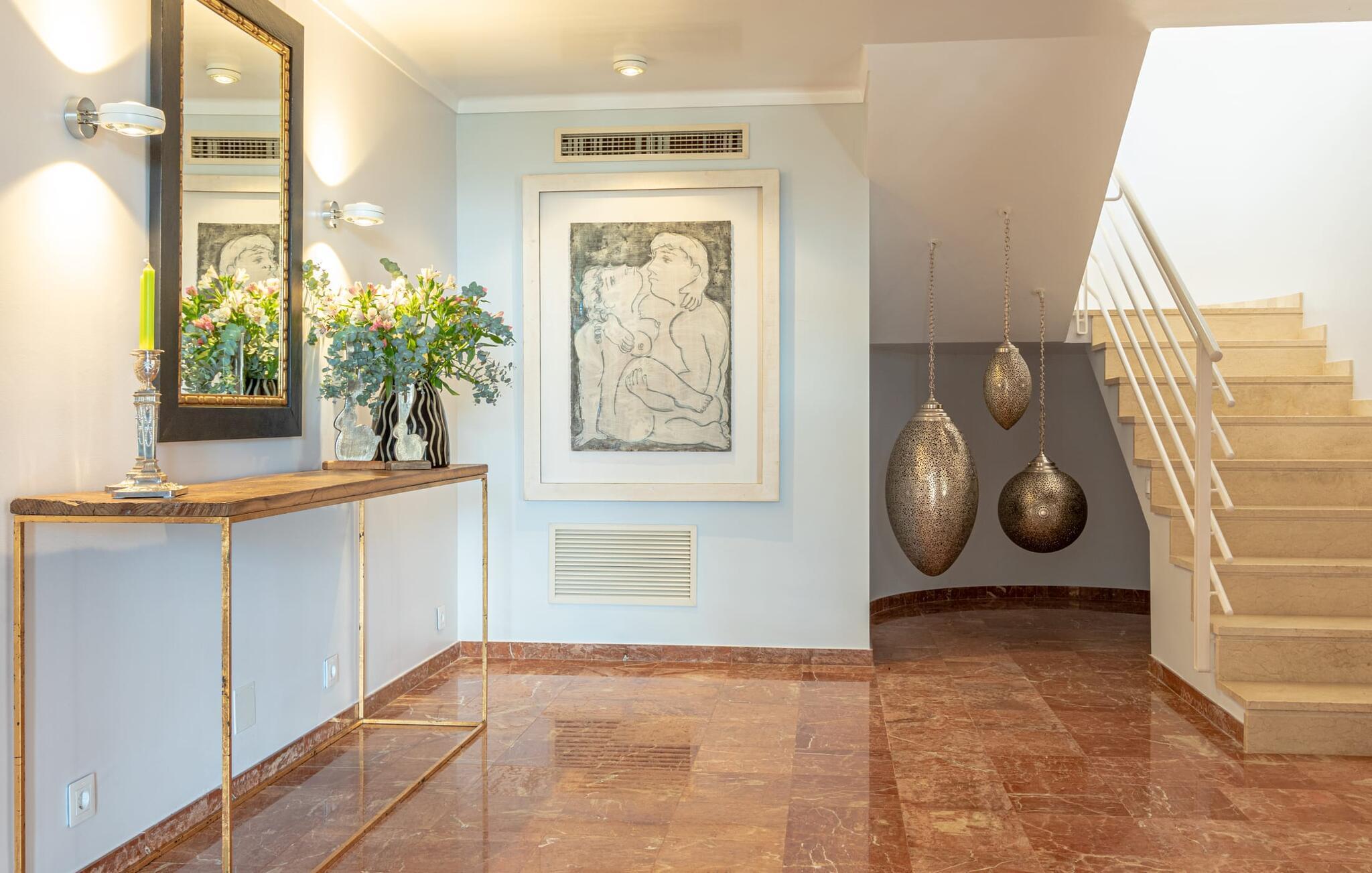 Villaen "La Font de la Liebre", renoveret i 2018, imponerer med sin velholdte atmosfære, førsteklasses indretning og en vidunderlig beliggenhed på en bjergskråning, kun omkring 2,2 km fra Pollença. Fra huset og terrasseområdet nyder du ikke blot en enestående udsigt over det typiske middelhavslandskab, der omgiver ejendommen, men du kan også lade blikket vandre over grønne bakker, byen Pollença og det glitrende turkisblå hav i det fjerne. Med sine mange attraktive buer, store overdækkede og solrige terrasseområder og altaner, der pryder to af de i alt fire soveværelser, tilbyder denne to-etagers ejendom de besøgende masser af plads og mange hyggelige værelser, der kan findes i hele haven i flere niveauer, de forskellige sektioner hvoraf har trin lavet af natursten er forbundet med hinanden. Lige under huset kan du tage en dukkert i poolen, dekoreret med smukke små fliser og omgivet af middelhavsplanter i dekorative terracotta-krukker. Efter dit bad kan du finde dig tilpas på en af de komfortable liggestole med en lækker drink og nyde den vidunderlige udsigt og den søde følelse af at lave ingenting. Meget praktisk: Elevatoren fører direkte fra (dobbelt)garagen til stueetagen. Det ydre på “La Font de la Liebre” er et sandt blikfang – og det gælder også, når du træder ind i huset. Udover den autentiske, stilrene og højkvalitets indretning, en blanding af gammelt og nyt, imponerer huset med sin rummelige planløsning og rummenes rummelige, åbne design. Et storslået stengulv, kombineret med lysegrå vægge og sofistikeret loftsbelysning, bidrager til husets atmosfære. I stueetagen er der ikke kun et badeværelse, men også en kæmpe stue med to lige komfortable sofaer, en smuk pejs og en stenbænk dekoreret med mange typiske mallorcanske hynder - perfekt til lange ferieaftener tilbragt i selskab med venner og familie . Fine tæpper og imponerende malerier på væggene supplerer perfekt den elegante atmosfære. Lige ved siden af, i det store hvide køkken i landlig stil, kan du arbejde efter hjertens lyst - der er mere end nok plads til kulinariske eksperimenter med mange forskellige gryder, pander og andre redskaber. Du kan så servere dine kreationer direkte ved det store spisebord i træ, som også er placeret i køkkenet. For at sove kan du trække dig tilbage til et af de fire soveværelser på første sal, som alle er smagfuldt indrettet med udvalgte pynteting og komfortable senge. For nemheds skyld har alle ulasteligt smarte badeværelser en suite. Dit sommerhus ligger midt i et smukt, typisk middelhavslandskab i det frodige grønne nord på øen - fra din villa kan du ikke bare nyde en fantastisk udsigt, men også udforske den omkringliggende natur, det være sig på vandreture eller lange gåture . Til shopping og lange gåture gennem byen - for det er virkelig det værd - skal du bare køre 2,2 km til Pollença. Den gamle bydel er velsignet med charmerende små sidegader, mange håndværksbutikker, små butikker og indbydende caféer og restauranter. Byen scorer ikke kun med en masse flair, men også med adskillige seværdigheder såsom Pont Roma, byens historiske bro, Puig de Maria-bakken eller Golgata, hvis top kun kan nås ved at bestige et 365-trin trappe overvinder. Men glem ikke de smukke strande, som kun ligger omkring 7 km fra din villa. Eksempler på dette er den rolige strand Cala Clara og den hvide sandstrand Platja de Port de Pollença. En smuk, elegant villa med en guddommelig udsigt til både de grønne bjerge og det forførende flimrende hav i det fjerne - alt dette og mere venter dig på La Font de la Liebre. Det bemærkelsesværdigt velholdte hus ligger 2,2 km fra byen Pollença på en ejendom opdelt i forskellige niveauer. Smukke naturstentrapper med mange hyggelige siddepladser lokker, ligesom den plane pool med solterrasse - og den nærmeste strand ligger kun omkring 6,6 km væk. Dette er et Fincallorca feriehus.