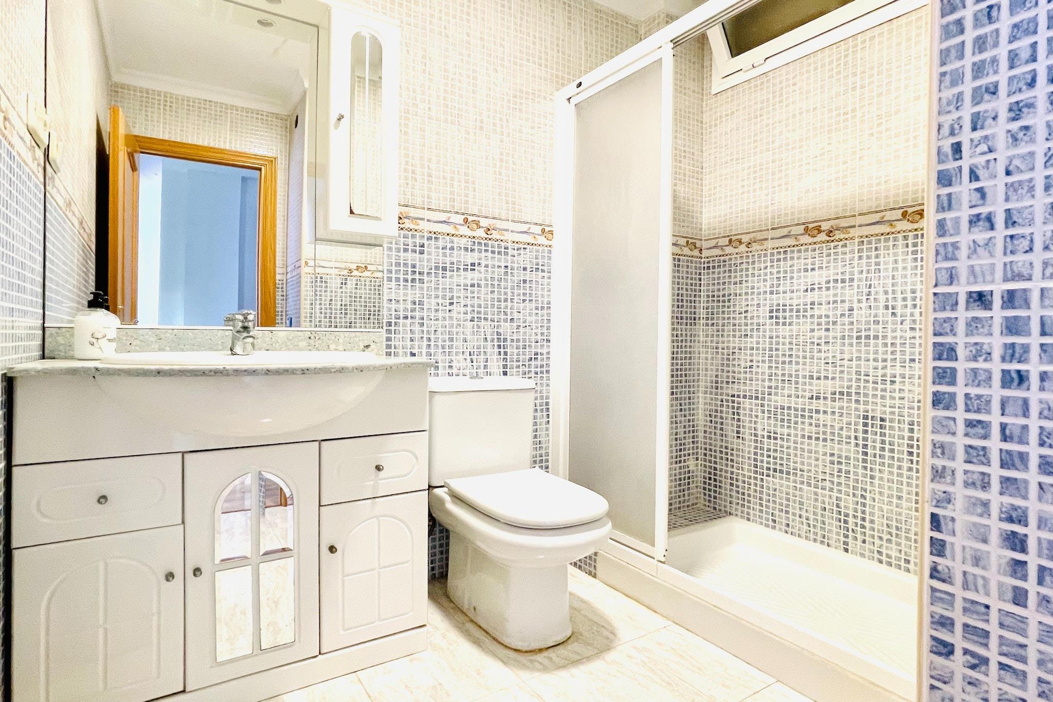 Denne sydvendte lejlighed ligger på La Garrofas klipper og tilbyder en betagende panoramaudsigt over Middelhavet. Beliggende i urbaniseringen Espejo del Mar, kun 10 minutter fra Almería og 5 minutter fra Aguadulce, er det et fredeligt tilflugtssted, der er ideelt for en lille familie. Lejligheden har en privat terrasse, hvor du kan slappe af med en drink, mens du ser havet, og en fælles pool perfekt til at køle af på solrige eftermiddage. Bygningen giver direkte adgang til stranden, hvilket gør det nemt at nyde sandet og surfe når som helst. Inden for urbaniseringen finder du også en social klub, bar-cafeteria, bibliotek og offentlig parkering. Indvendigt er lejligheden udstyret med både varme og aircondition, hvilket sikrer komfort i hver sæson. Opholdsområdet omfatter en hyggelig lounge og et veludstyret køkken, så du kan tilberede måltider i dit eget tempo. Uanset om du slapper af ved poolen, udforsker den nærliggende kystlinje eller nyder en naturskøn cykeltur ind til byen, tilbyder denne lejlighed en perfekt blanding af komfort, bekvemmelighed og kystcharme.