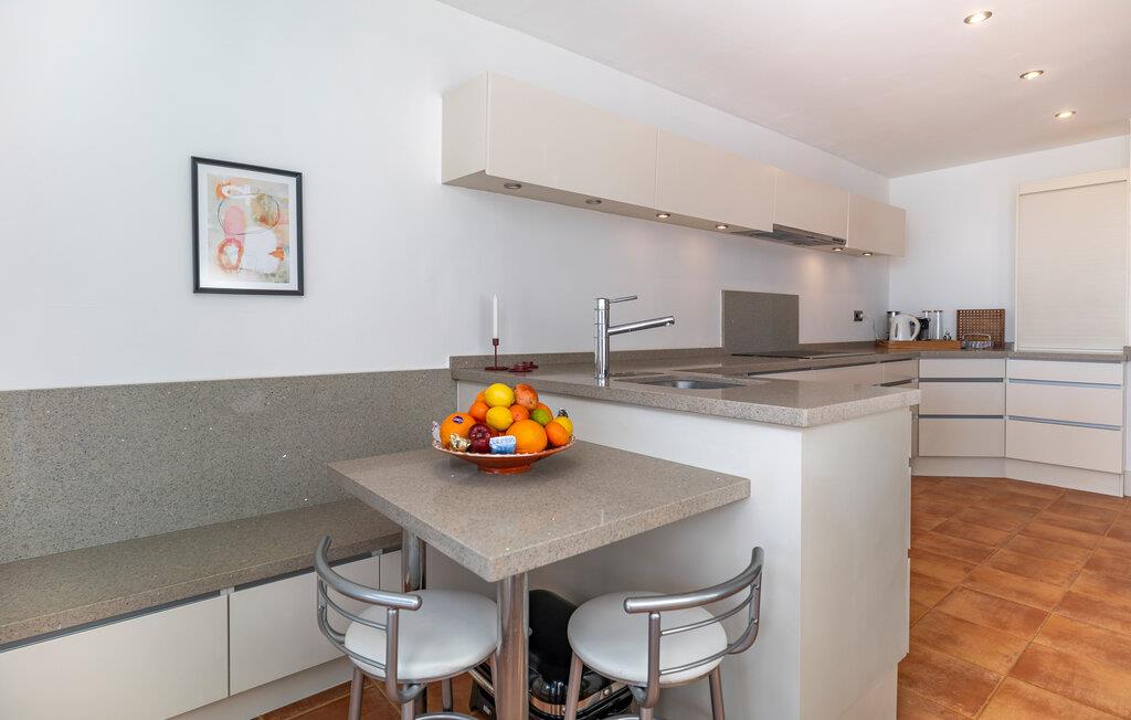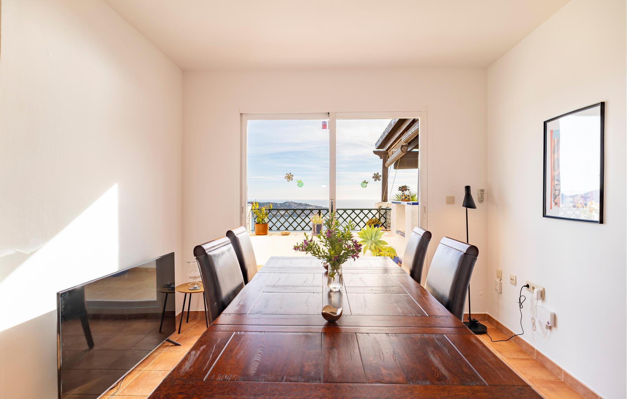 Fordyb jer i middelhavsstilen i dette komfortabelt indrettede feriehus og nyd en afslappende tid i dens lyse og venlige atmosfære. I kan forvente et rummeligt, åbent opholdsområde med havudsigt og et topmoderne, fuldt udstyret køkken. Pisk middelhavsretter op her, og søg derefter i det interne bibliotek for at få noget interessant ferielæsning. Afslut dagen på den behagelige sofa, mens I streamer en spændende serie.