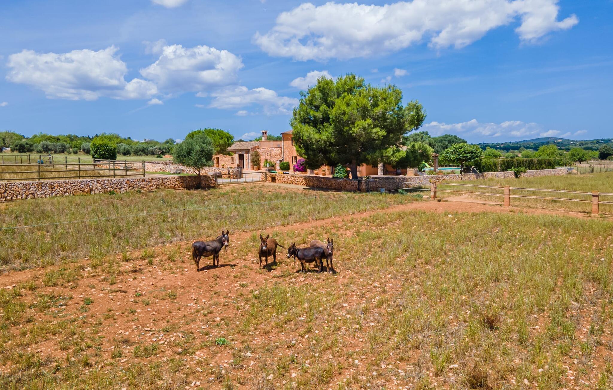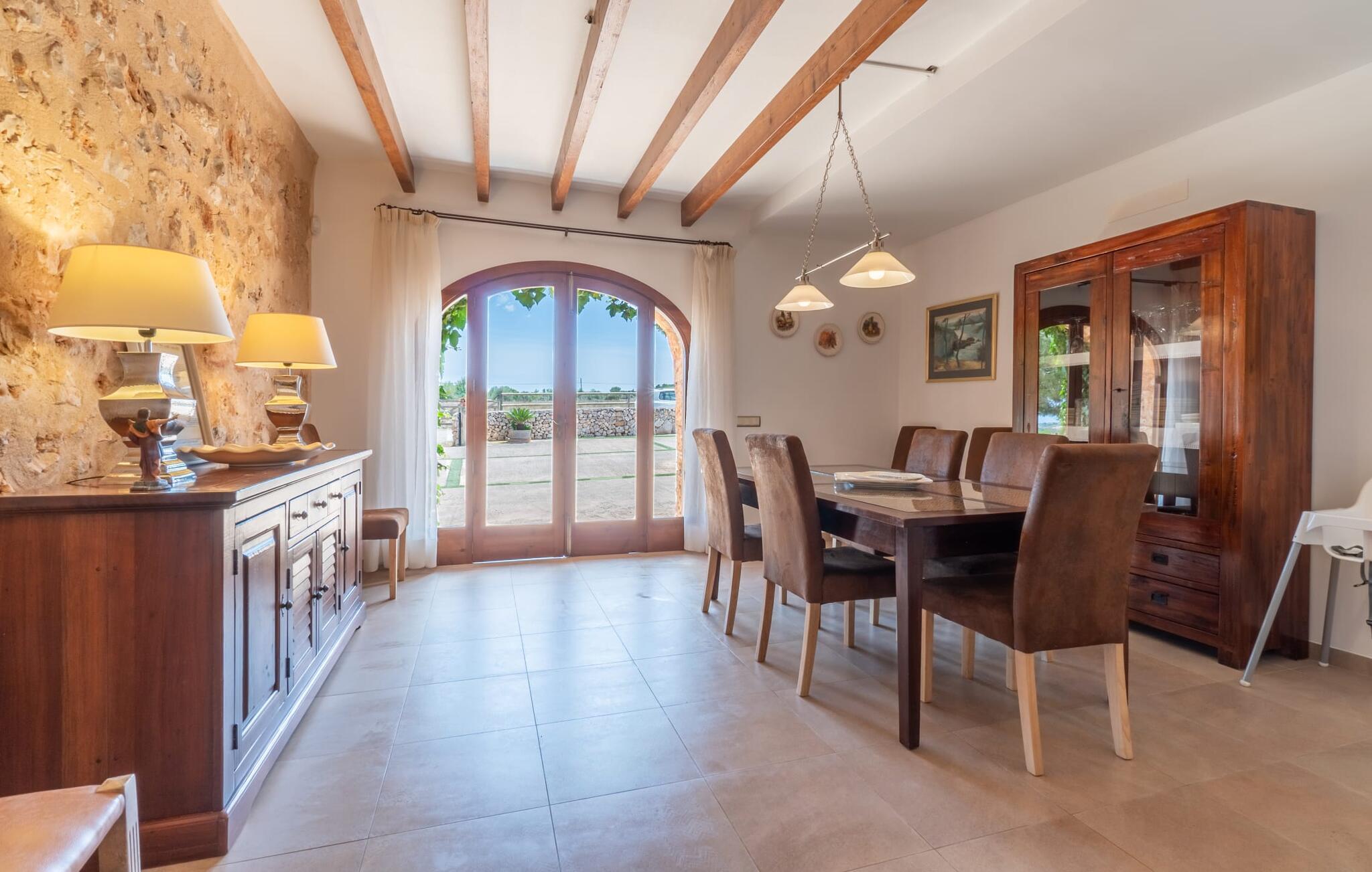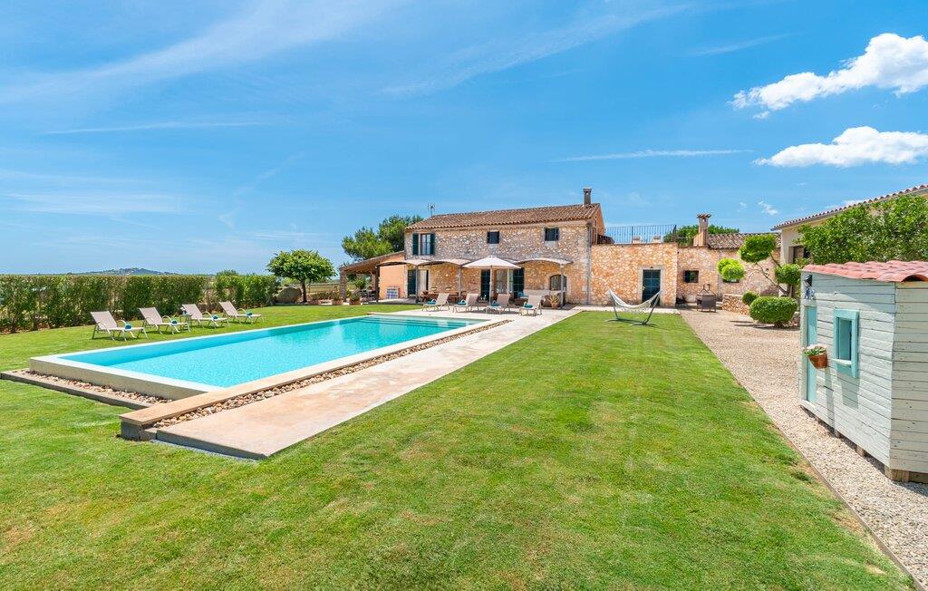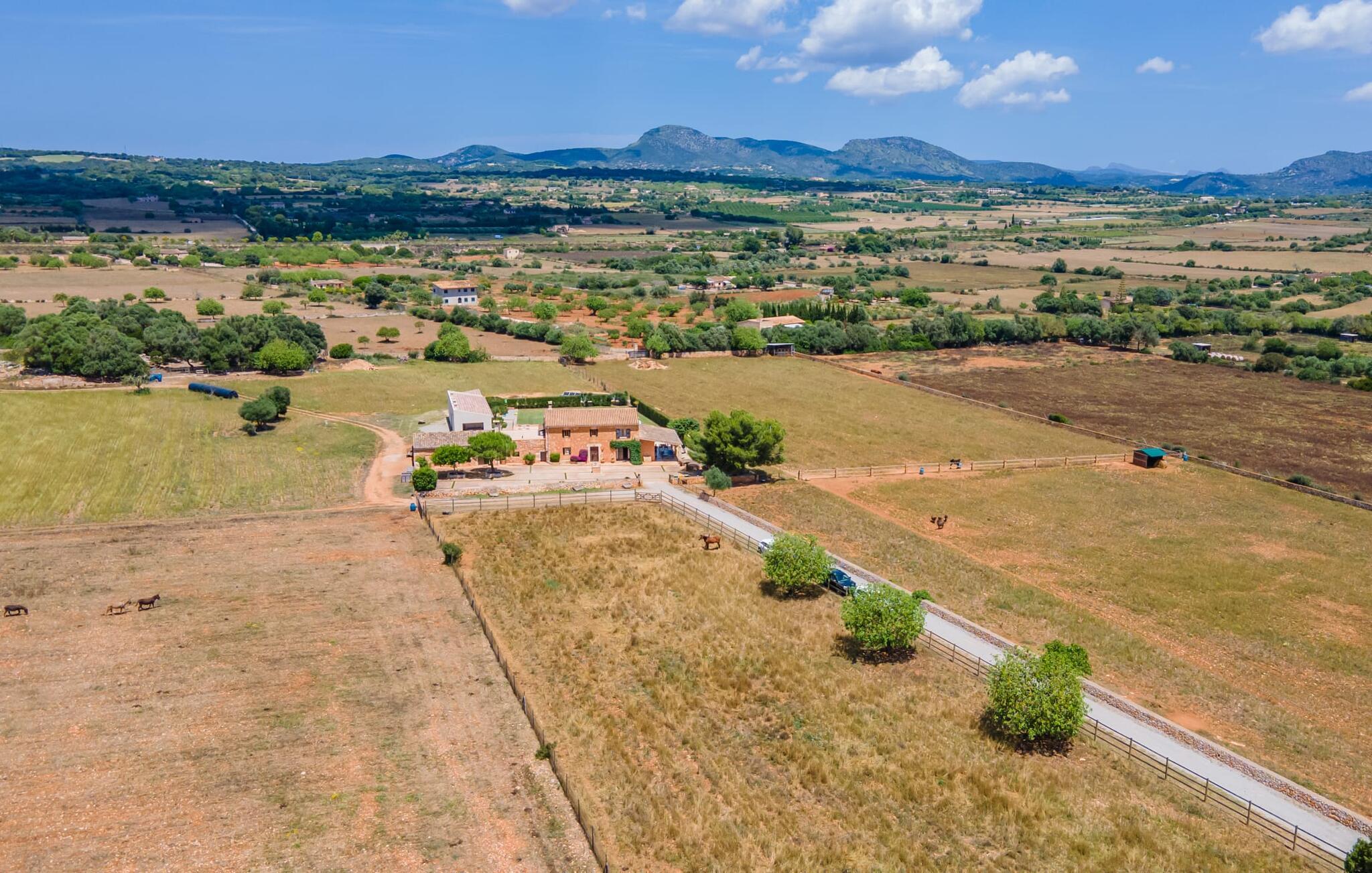 Velkommen til Finca "La Mallorquina", et charmerende feriested i det maleriske østlige Mallorca. Dette smukt restaurerede bondehus er sammen med et moderne pensionat omgivet af et idyllisk lavland. Gæsterne kan nyde en betagende panoramaudsigt over bakkerne i Serra de Levant Udendørsområdet har en lavvandet pool med nem adgang, en velplejet græsplæne og en rummelig skyggefuld terrasse med opholds- og spisepladser og et sommerkøkken. Grillfaciliteterne vil sætte pris på legepladsen med legehus og bordtennisbord. Hovedhuset har en hyggelig stue med pejs, et rummeligt køkken, alt sammen med direkte adgang til det fri er også et stort soveværelse med dobbeltseng med walk-in garderobe et badeværelse Ovenpå er der yderligere tre soveværelser med dobbeltsenge, hver med sit eget badeværelse og en fantastisk udsigt over landskabet. Det moderne gæstehus i stueetagen byder på yderligere to soveværelser med dobbeltsenge, en stue med pejs, et køkken og et stort badeværelse. Alle seks soveværelser er udstyret med aircondition og varme, hvilket sikrer komfort under hele jeres ophold. Tæt på byen og familievenligt, "La Mallorquina" tilbyder panoramaudsigt over Tramuntana. Manacor er det ideelle sted at gøre jeres ugentlige shopping, sightseeing eller nyde en restaurant eller to rolige byer som Son Carrió eller San Lorenzo tilbyder friske produkter på landmændenes markeder Østkysten med sine utallige strande, fortryllende havnepromenader, hulelabyrinter og havet er lige. 12 km væk.