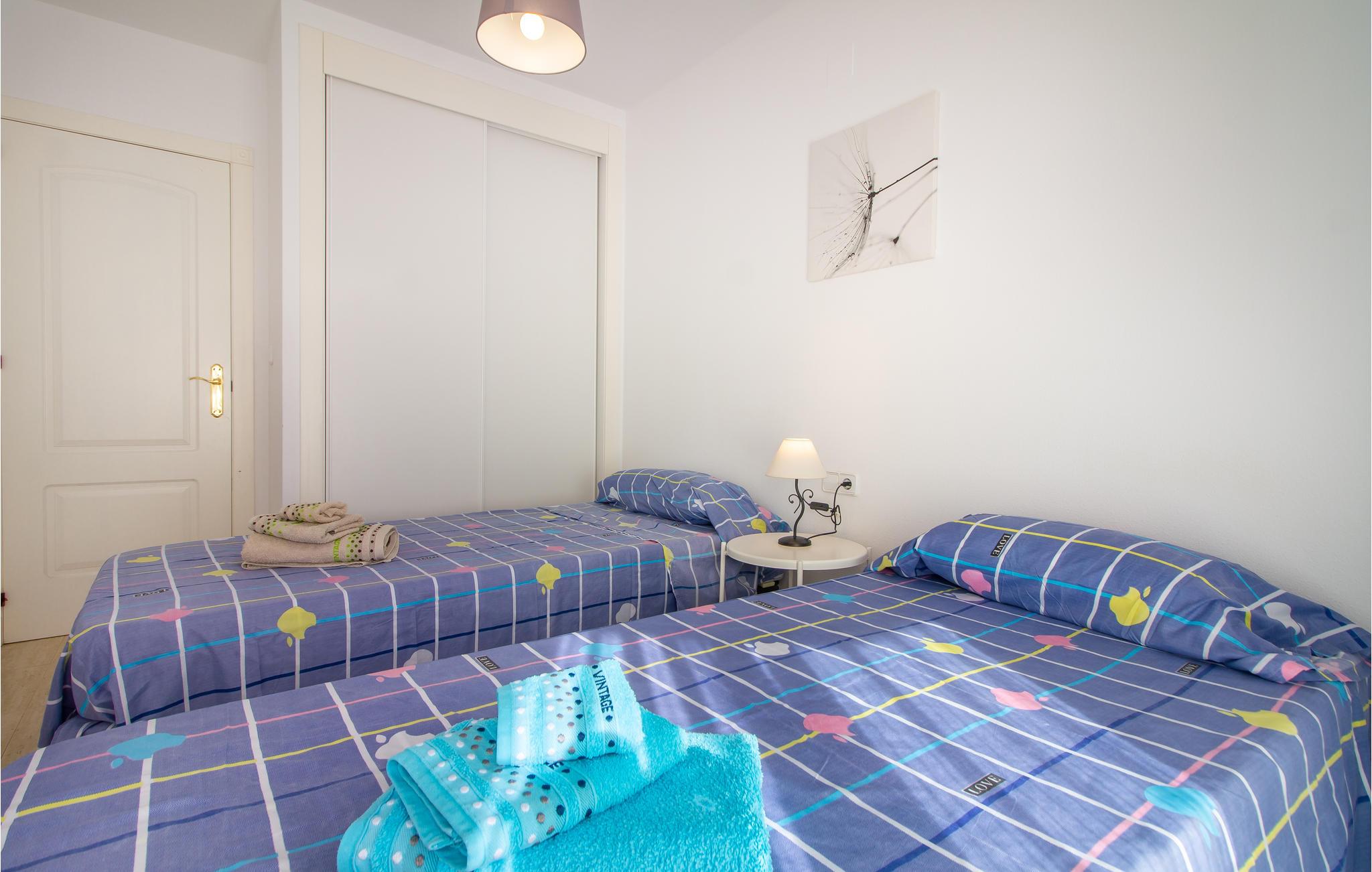 Skøn ferielejlighed direkte ved stranden. Lejligheden ligger i boliganlægget Las Palmeras i La Manga del Mar Menor, som ligger i et af de bedste kvarterer i dette populære ferieområde. Lejligheden består af to skønne soveværelser, en hyggeligt opholdsstue med spiseafdeling, et rummeligt køkken, et badeværelse og en fantastisk terrasse hvorfra der er en skøn udsigt til havet. Det er skønt at kaste sig ud i Middelhavets bølger, men også anlæggets fælles pool står til rådighed med en frisk dukkert. Her er ligeledes en Paddle tennisbane hvis I har brug for lidt afveksling. Her kan I tilbringene en rolig ferie ved stranden i central beliggenhed.