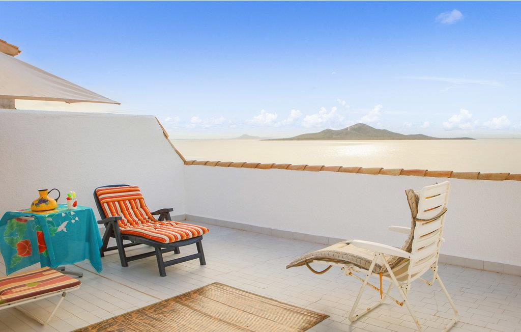 Ellers ligger den klippefyldte kystlinje med sandstrande lige foran huset, perfekt til solbadning. Den unikke Mar Menor-lagune er et paradis for vandsportsentusiaster. Nyd den smukke udsigt over den blå himmel, det lige så blå hav og de tårnhøje bjerge i baggrunden. En udendørs biograf, der viser aktuelle film i sommermånederne, ligger inden for gåafstand. For længere udflugter er havnebyen Cartagena eller provinshovedstaden Murcia med sin maleriske gamle bydel og gamle katedral ideelle.