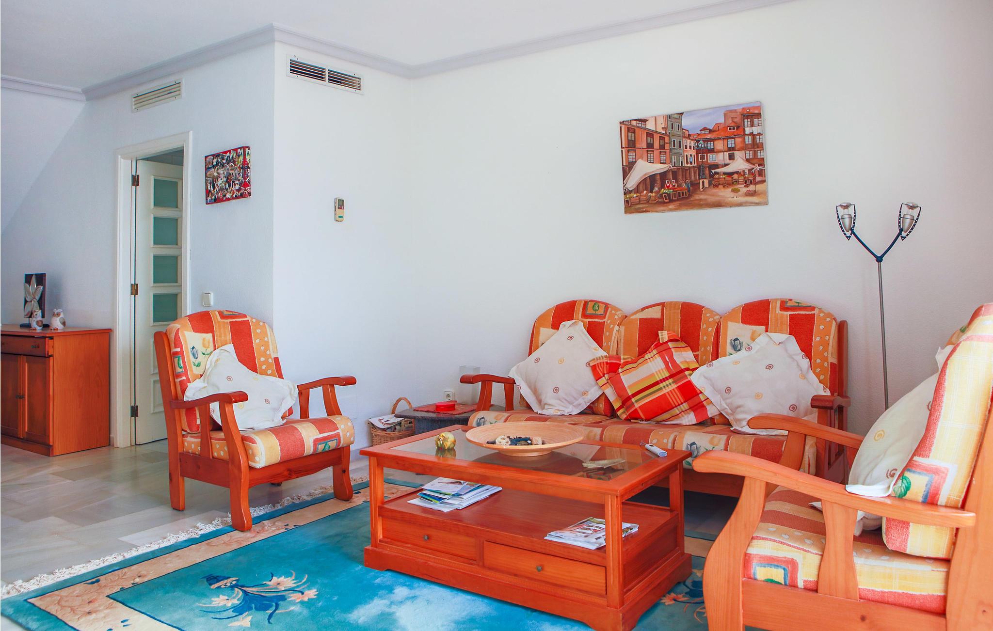 Velkommen til dette farverige og indbydende rækkehus i La Manga del Mar Menor. I kunne ikke ønske jer en bedre beliggenhed, da jeres hus grænser op til strandpromenaden. Nyd sociale sammenkomster på husets to etager, hvor I kan slappe af, spille spil sammen og nyde udsigten fra balkonen eller terrassen. Hvis I foretrækker poolen frem for havet, finder I en fantastisk fælles pool med en fantastisk beliggenhed.
