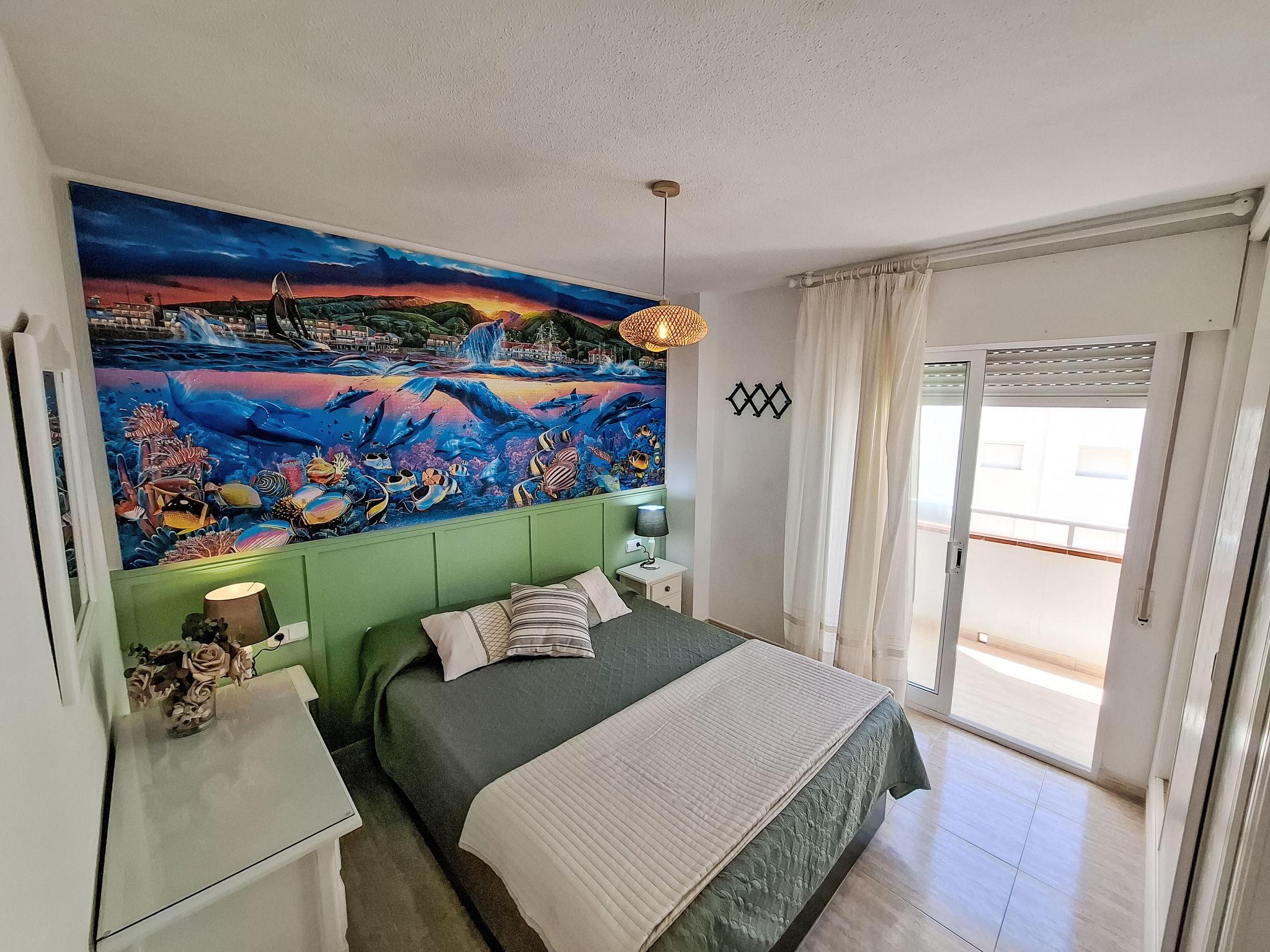 "Los Ibicencos", 3-room apartment 90 m2 on 5th floor. Practical and comfortable furnishings: living/dining room with dining table, digital TV, flat screen and fan. Exit to the terrace. 1 room with 1 french bed (150 cm, length 190 cm), fan. Exit to the terrace. 1 room with 1 bed (90 cm, length 190 cm), 1 french bed (150 cm, length 190 cm), fan. Kitchen (oven, dishwasher, 3 ceramic glass hob hotplates, toaster, kettle, microwave, freezer, electric coffee machine). Shower/bidet/WC. 2 terraces. Terrace furniture. View of the sea. Facilities: washing machine, iron, children's high chair, baby cot for up to 2 year olds, hair dryer. Internet (WiFi, free). Please note: suitable for families. Non-smokers only. VV.MU.2822-1 // Reg. Nr.: ESFCTU000030032000319821000000000000000000VV.MU.28222