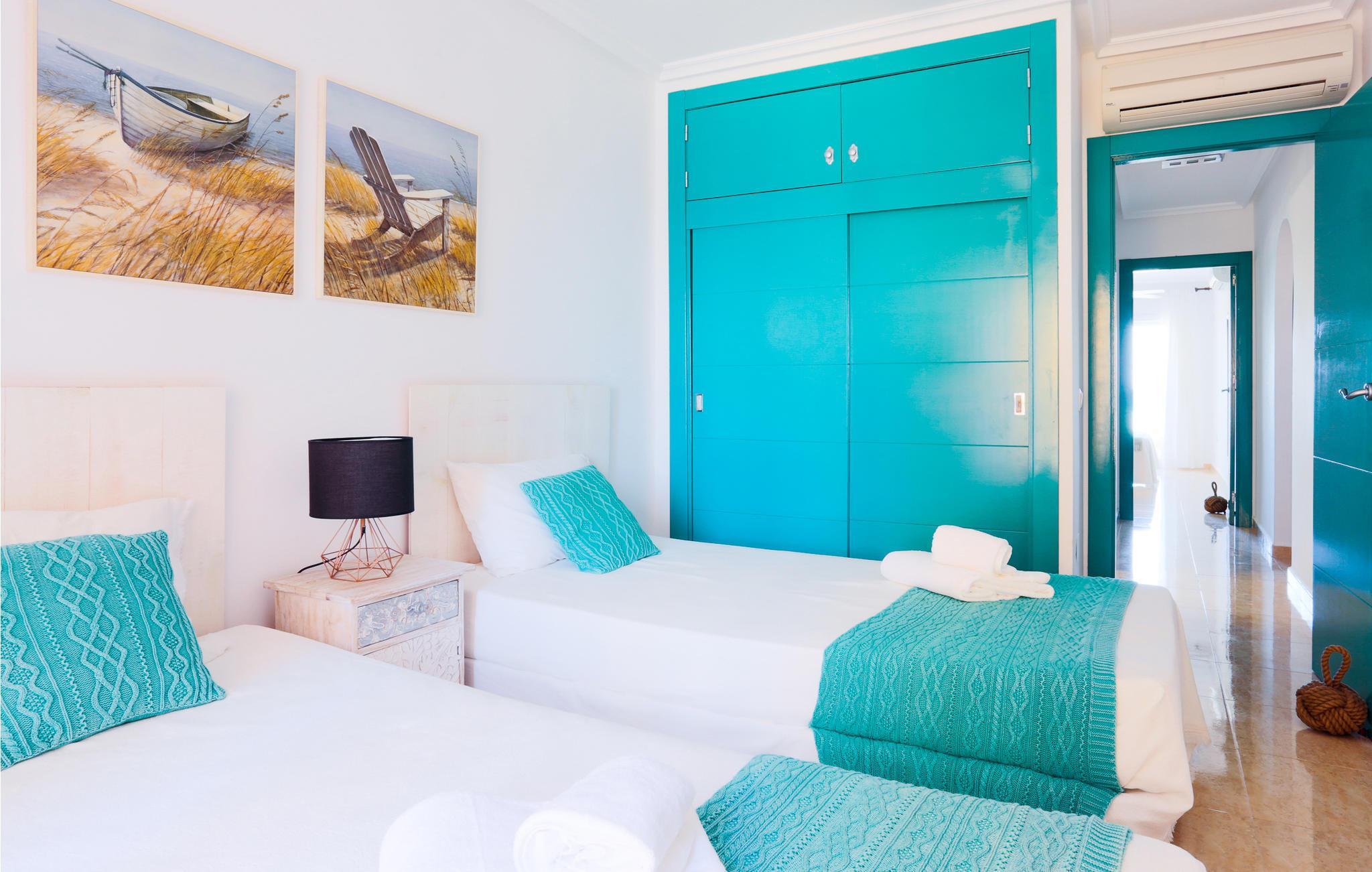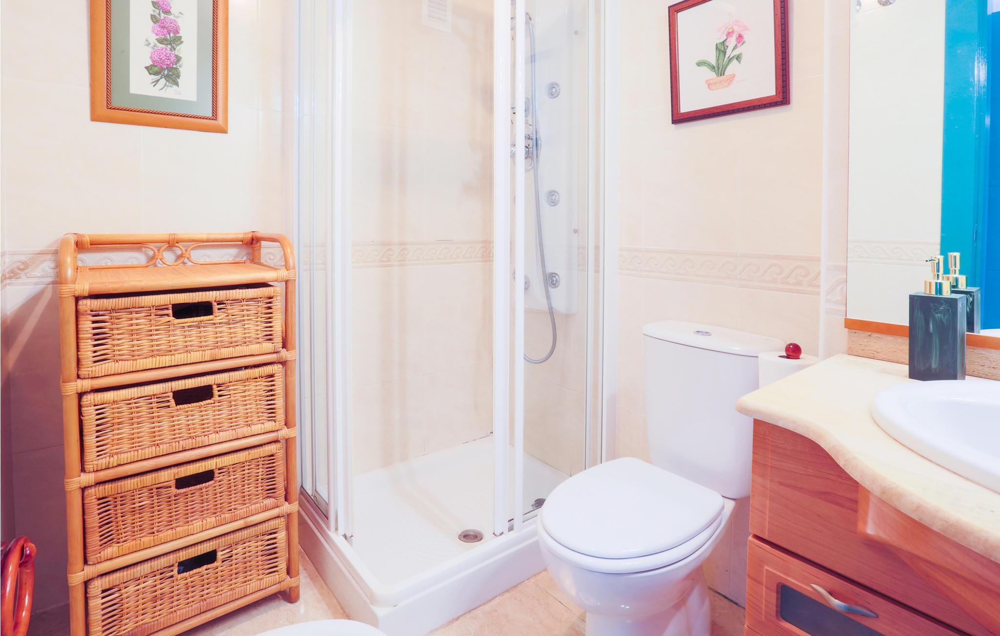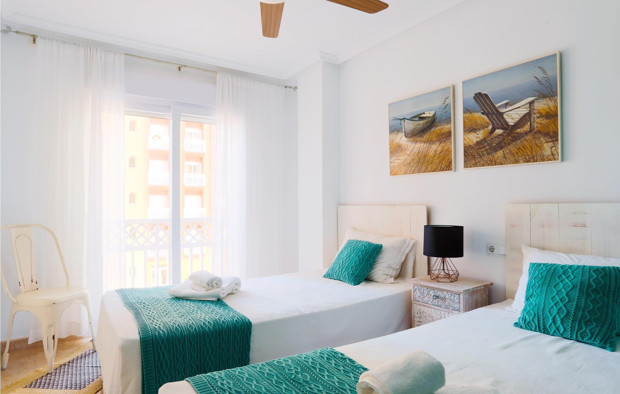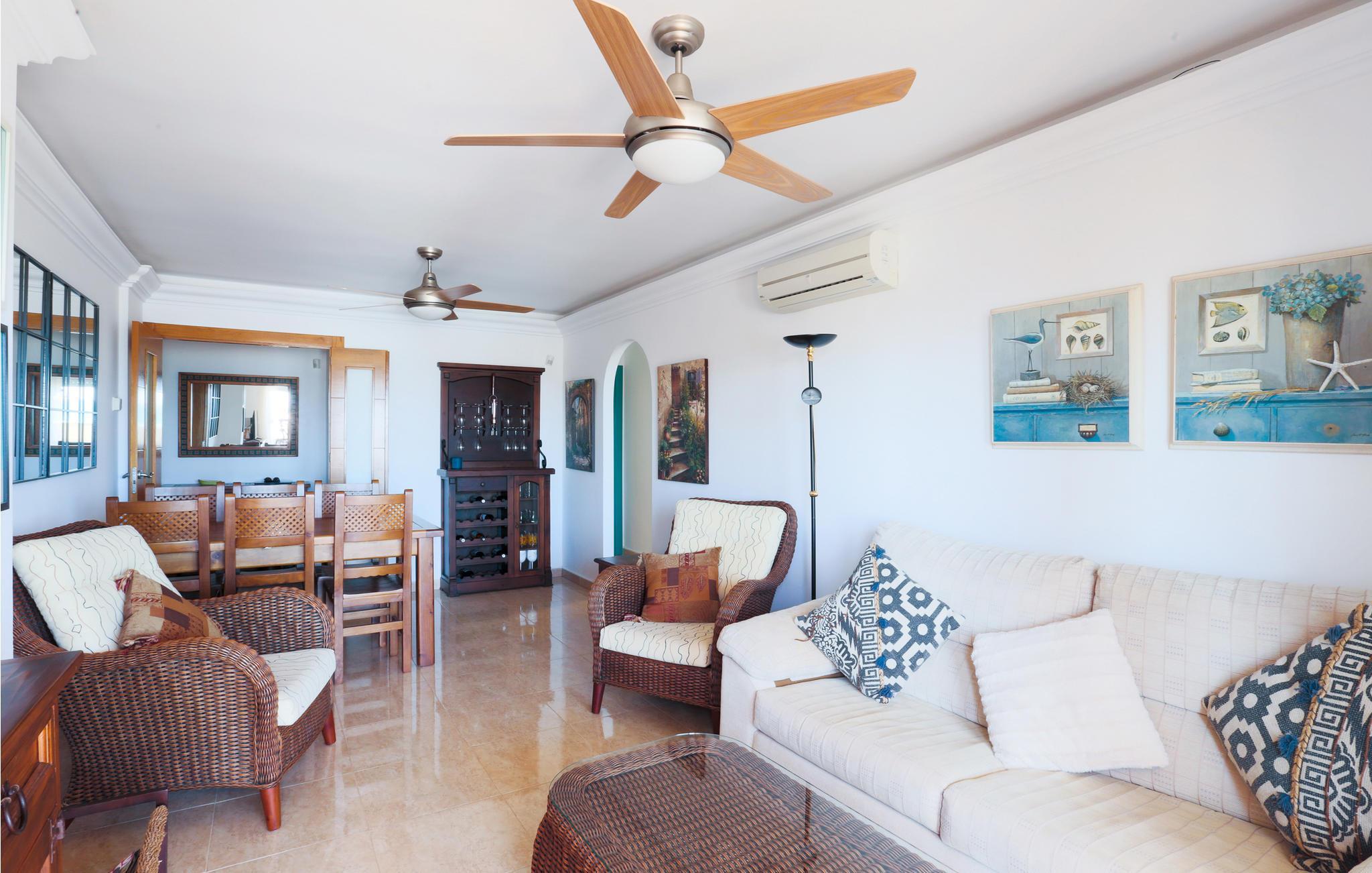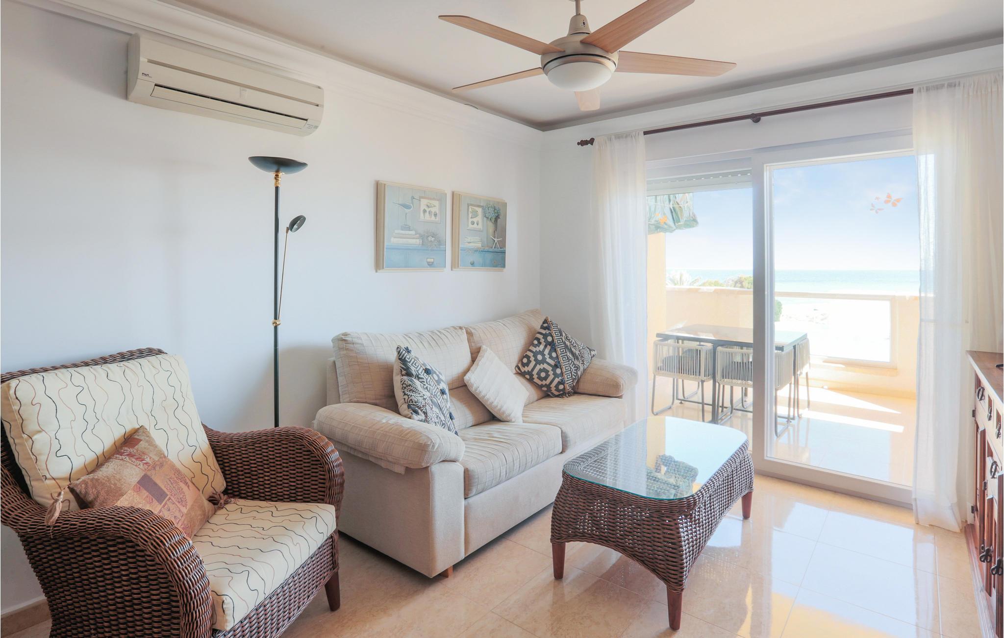 Denne lejlighed byder jer velkommen på en unik beliggenhed, for her bor I tæt på stranden i La Manga, en 21 km lang kyststrækning af Mar Menor, som adskiller Middelhavet fra Mar Menor-lagunen. I den lyse ferielejlighed med komfortable træmøbler vil I mærke en varm feel-good atmosfære. I sofaområdet kan I planlægge dagens golftur. Alle amatørkokke kan gøre magi i det store, veludstyrede køkken. Nyd jeres hjemmelavede måltid ved spisebordet eller på balkonen med en smuk udsigt over havet. Hop ind i den fælles pool eller tag ned til stranden for en svømmetur i det herlige Middelhav. Køb frisk frugt og kolde drikkevarer på vejen tilbage.