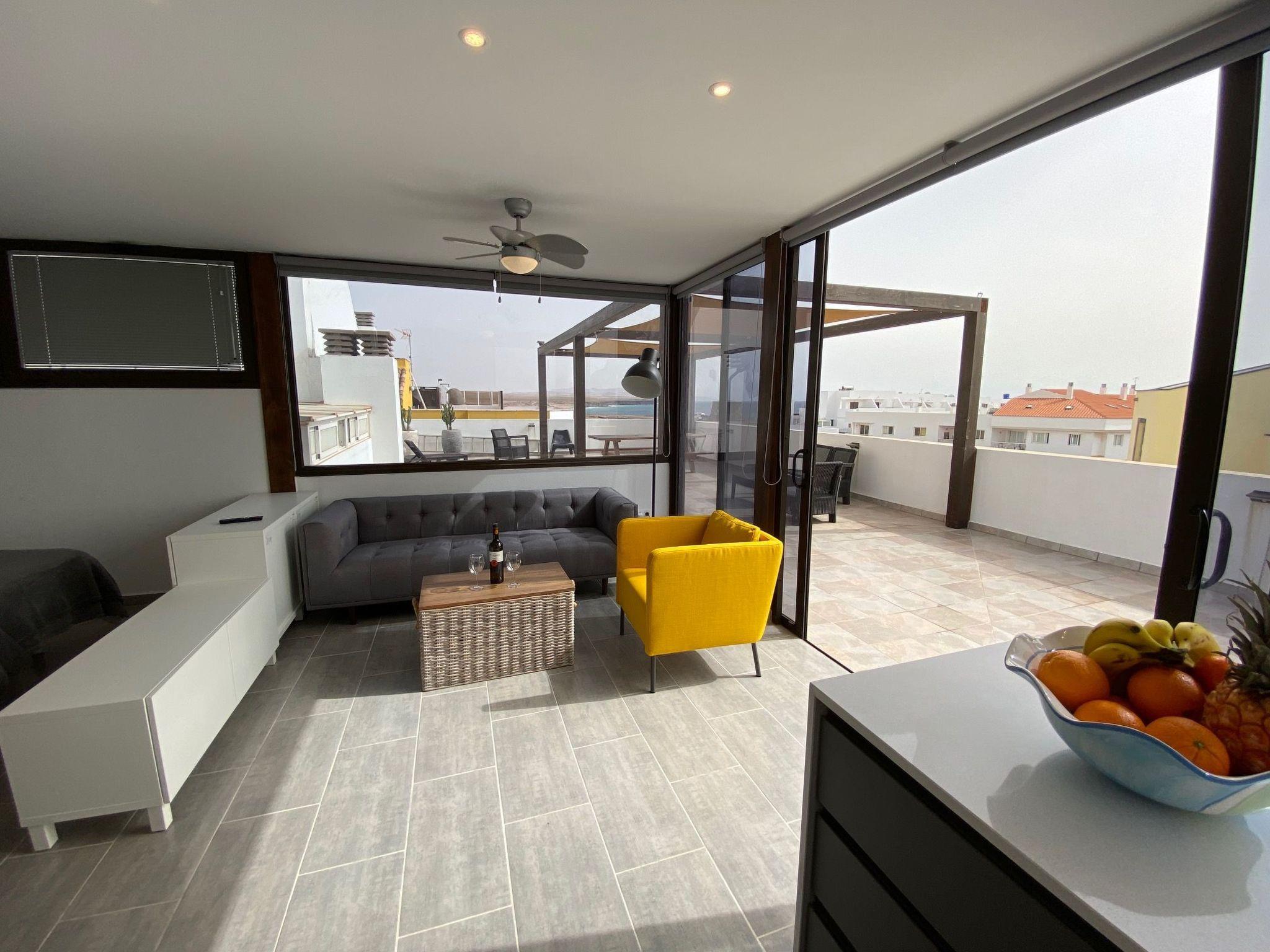 The penthouse was completed in June 2021 and is located directly on the north-west coast of the fishing village of "El Cotillo" in the north of Fuerteventura.
