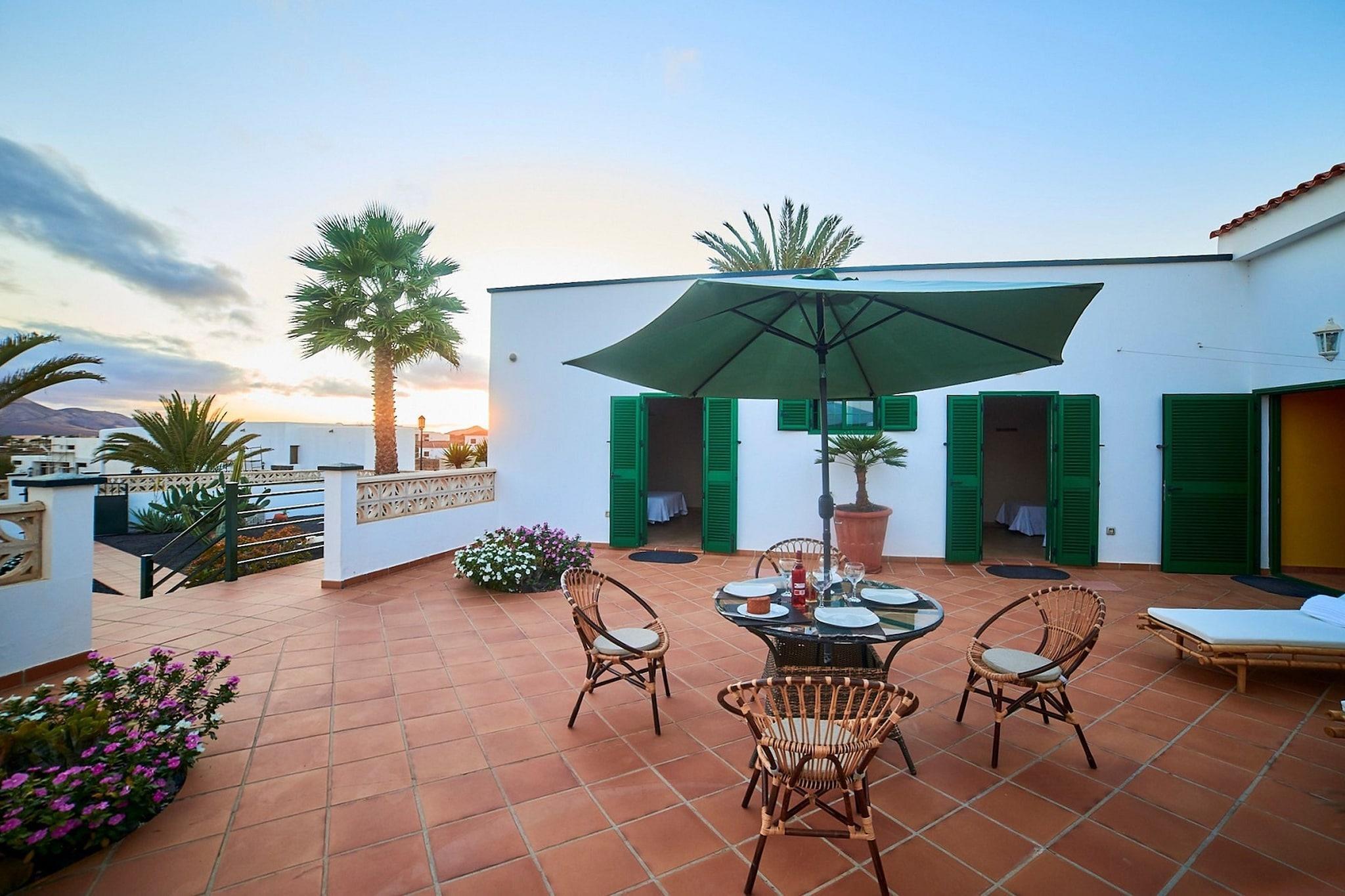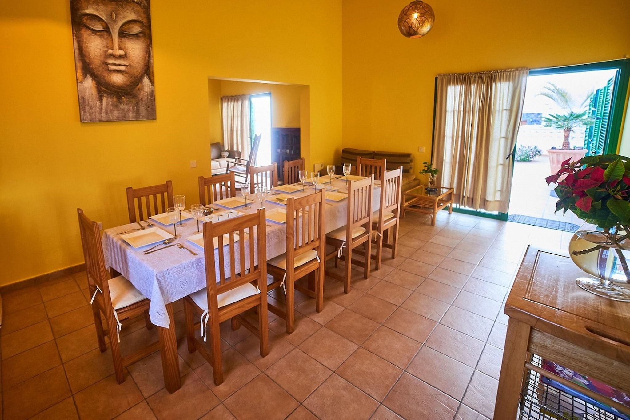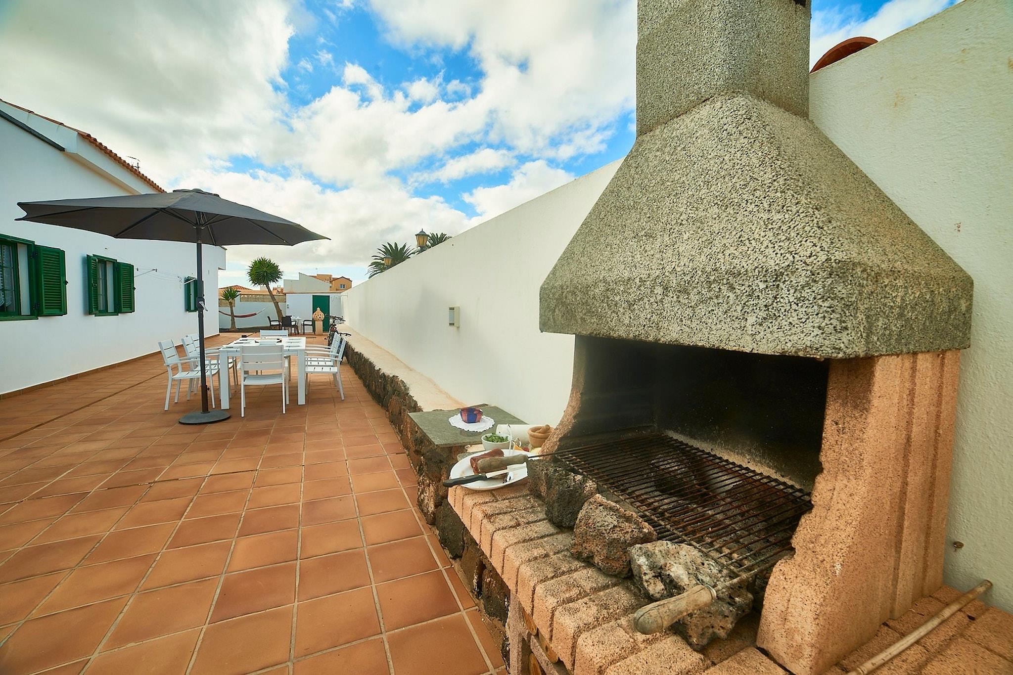 Dette rummelige hus inviterer dig til at nyde en dejlig ferie i Fuerteventura. Det gode vejr hele året og den rolige beliggenhed væk fra travlhed med turistattraktioner er blot nogle af fordelene ved dette vidunderlige sted. Huset er bygget i en U-form med to terrasser i midten; ideel til morgenmad eller middag med udsigt over vulkanen. Den storslåede saltvandspool har et termisk system, der gør den halvopvarmet, så du kan nyde det hele året rundt. La Oliva ligger 1 km væk, det er en lille by nord for Fuerteventura. Når du besøger området, kan du nyde den smukke udsigt over det ekstraordinære vulkanske landskab. Den nærmeste strand er mod øst i Barranco de Tinojay (13,5 km). For en smuk solnedgang skal du uden tvivl gå vestpå; stærkt anbefalet El Cotillo (16 km) med en smuk robust kystlinje med skjulte strande, hvor du kan se solen gemme sig i havet. I byen er der flere restauranter, der afslutter dagen med en lækker tallerken med frisk fisk. For mere underholdning, besøg den berømte kystby Corralejo, 15 km væk. Turist, ja, men øens paradis for surfere. For mere erfarne surfere er der i nord mange andre steder at erobre bølgerne.
