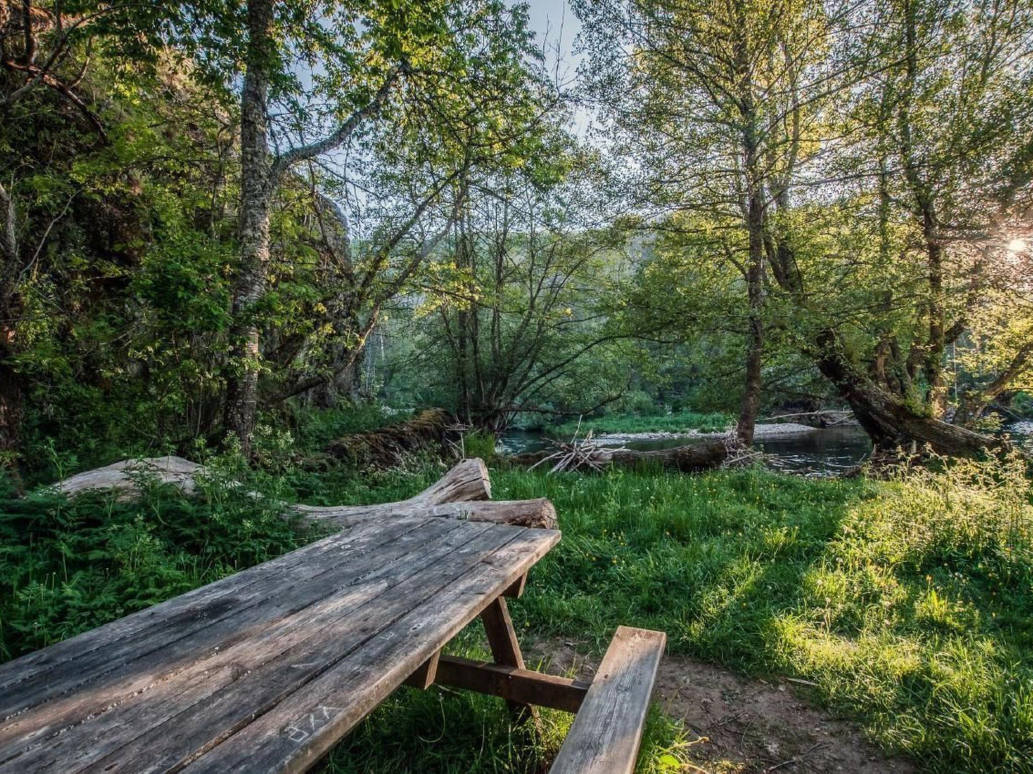 The terrace - viewpoint, giving access to housing allows us to enjoy a pleasant view over the roofs of the village, the river and the lush forest of beech and oak trees across the valley.