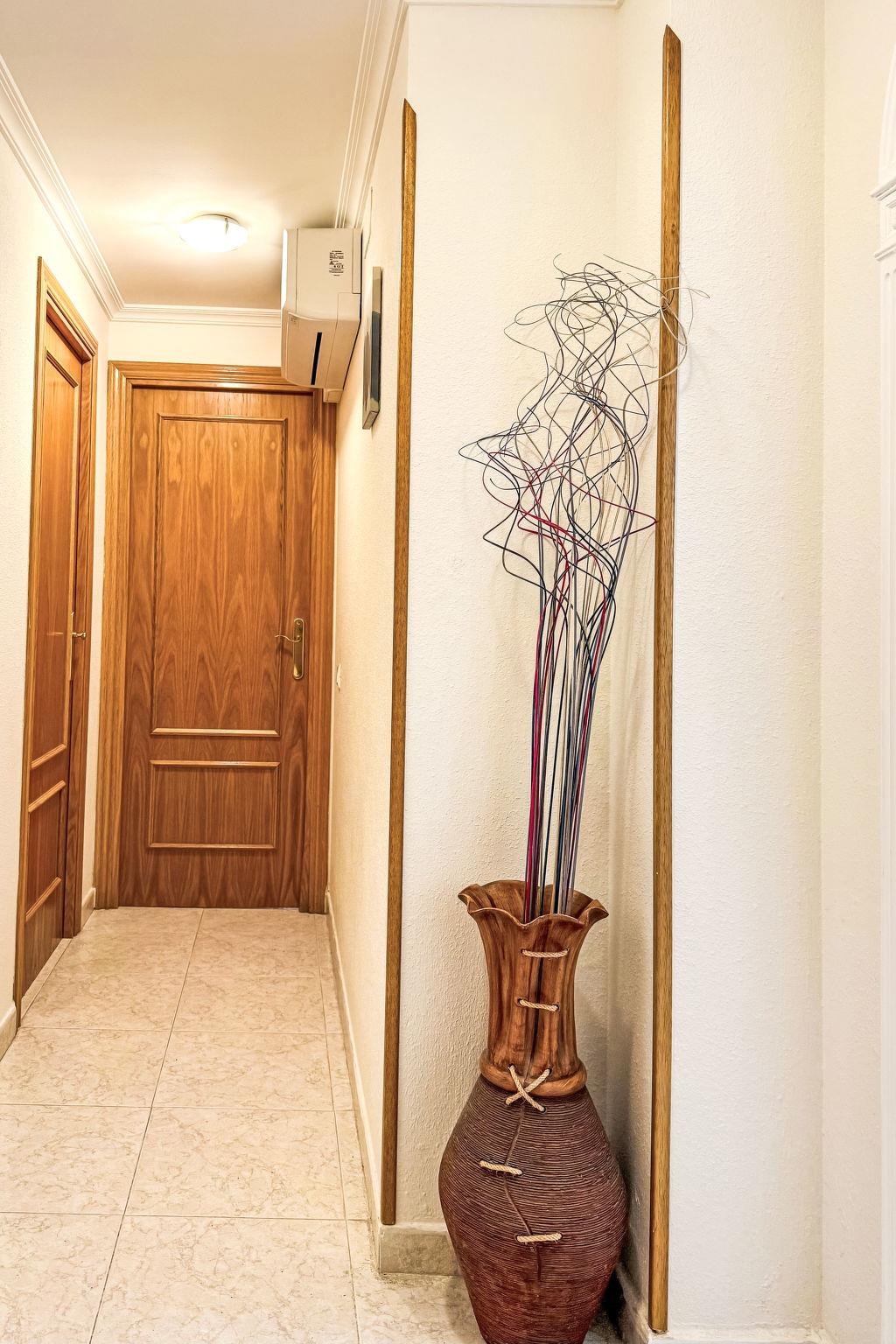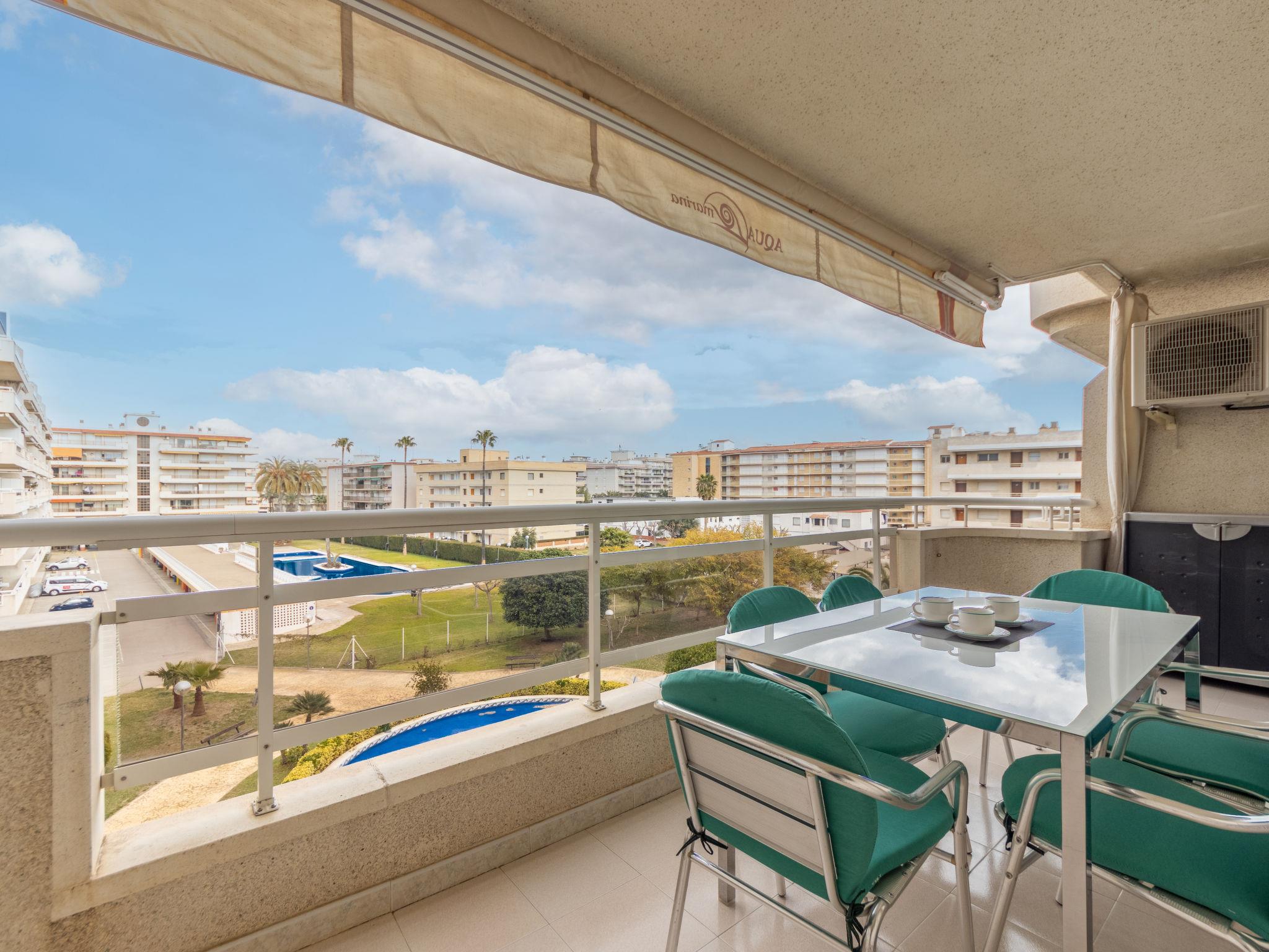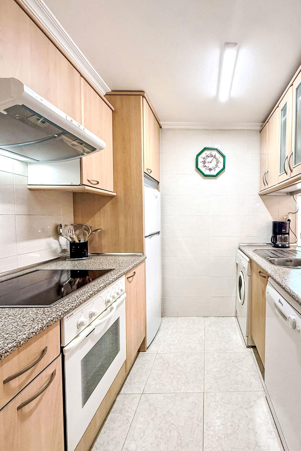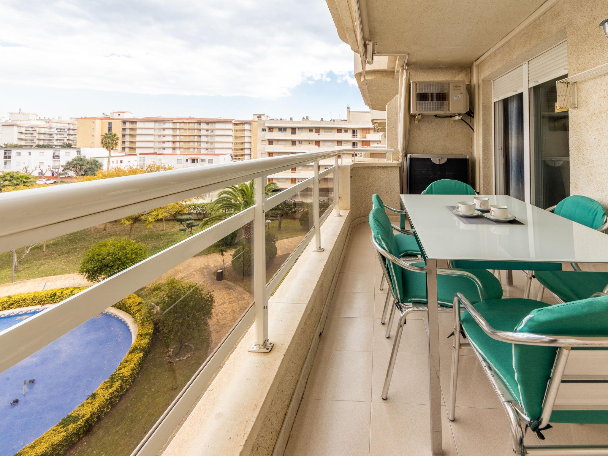 "Aguamarina 7", 3-room apartment 68 m2 on 3rd floor. Simple and practical furnishings: living/dining room with 1 sofabed (135 cm, length 190 cm), digital TV and air conditioning. Exit to the terrace. 1 room with 1 french bed (140 cm, length 200 cm). 1 room with 2 beds (90 cm, length 190 cm). Open kitchen (oven, dishwasher, 1 ceramic glass hob hotplate, 4 gas rings, toaster, kettle, microwave, electric coffee machine). Shower/WC. Heating not available in all rooms. Terrace. Terrace furniture. View of the swimming pool and the garden. Facilities: washing machine, iron, baby cot, hair dryer. Internet (WiFi, free). Parking space n 59 por Pep Ventura (roofed). Please note: non-smoking house. HUTT-062773 // Reg. Nr.: ESFCTU00004302400060773600000000000000000HUTT-0627739