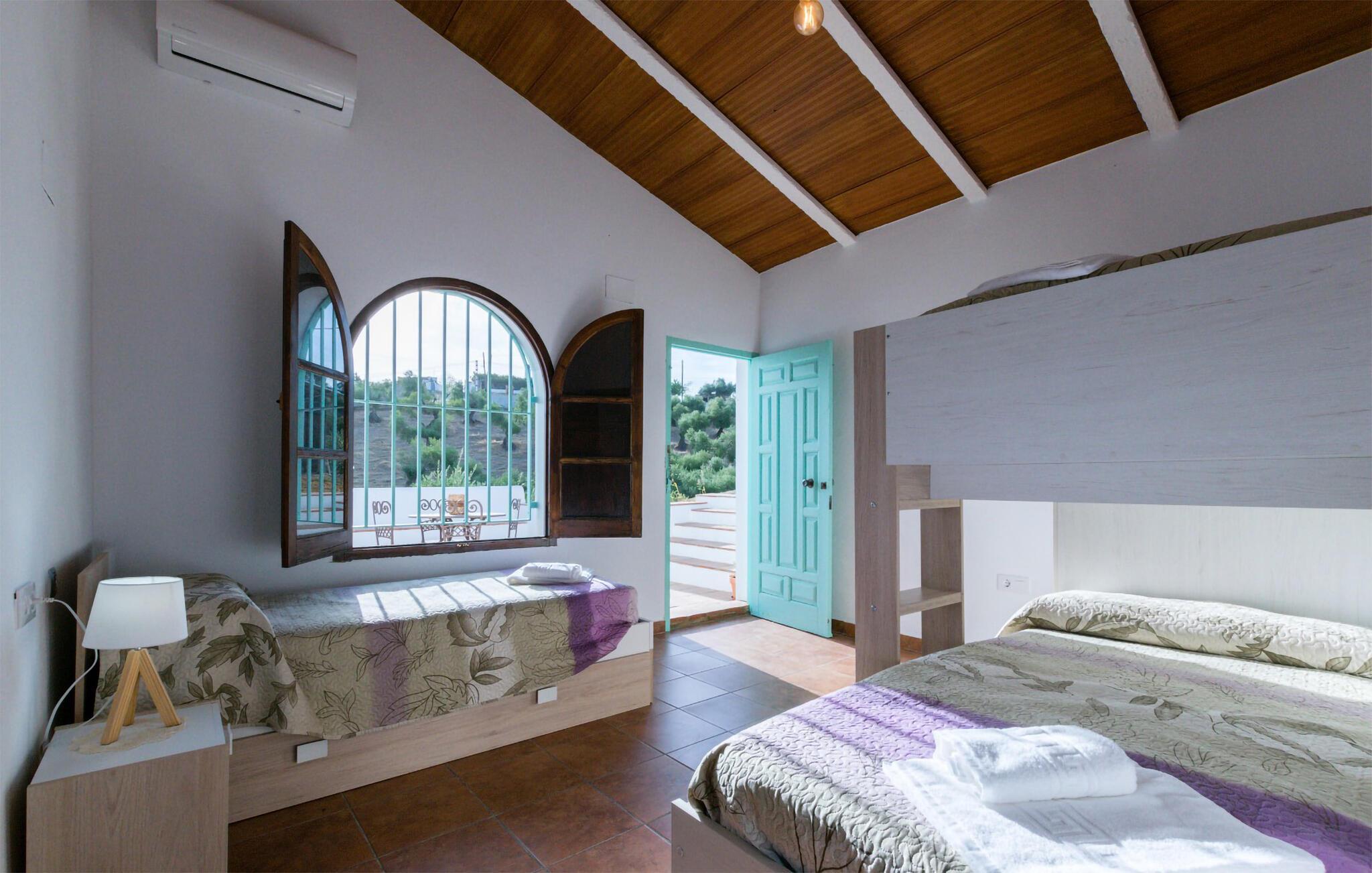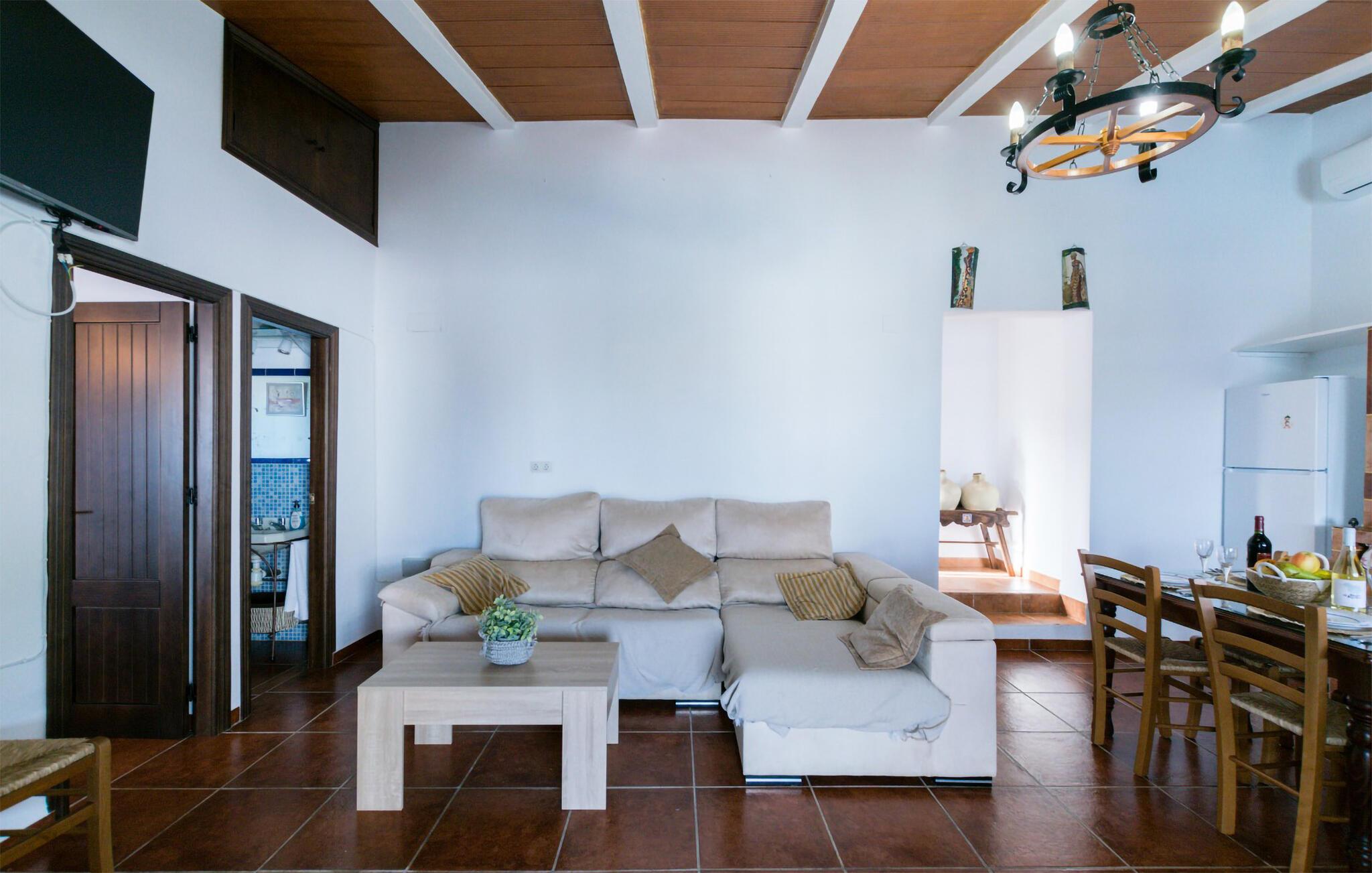 Takket være sin høje beliggenhed tilbyder dette velholdte og charmerende feriehus en sensationel udsigt over landsbyen og det maleriske omkringliggende landskab. Fordyb jer i den autentiske atmosfære med afslappede måltider omkring det indbydende spisebord, mens I mindes svundne dage over et glas vin og lækre tapas. Efter en lang dag kan I slappe af med et brætspil eller streame en spændende film, som alle vil nyde.