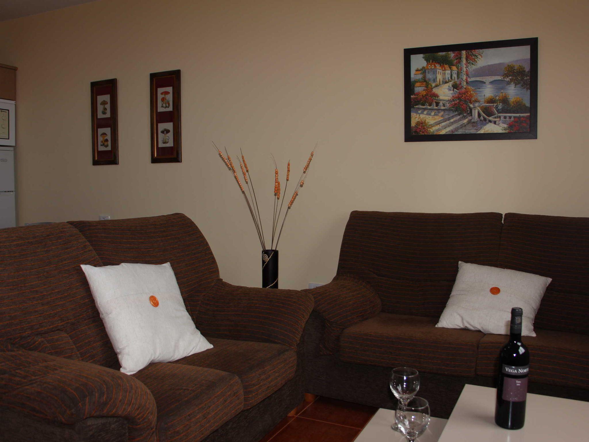 Casa Luque bietet auf 70qm Wohnfläche Platz für 4 Personen und ein Baby. Das größte Zimmer unterteilt sich in einen Wohnbereich mit zwei Sofas und gegenüberliegenden Einbauwand inklusive Flatscreen-TV und den Koch-/Essbereich mit einer kleinen, aber gut ausgestatteten Einbauküche sowie Esstisch mit 4 Stühlen. Vom Wohnzimmer blickt man in den schön angelegten Garten und aufs Meer.